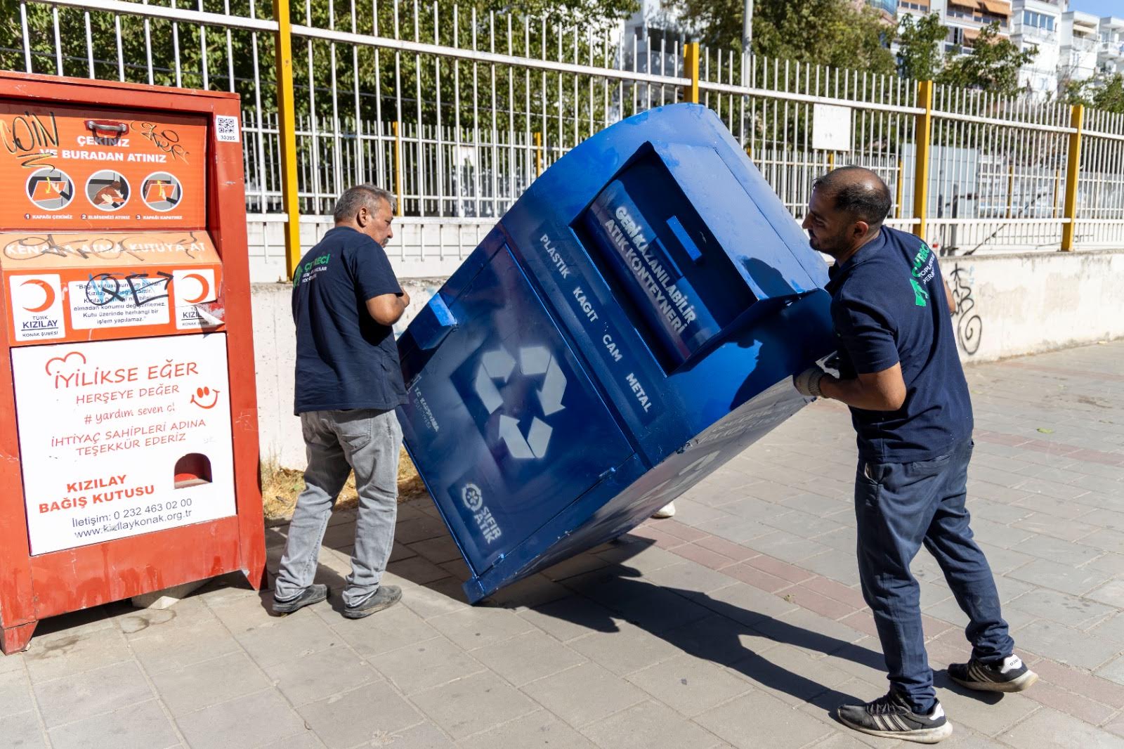 EGEMENLİK - Çevreyi korumak ve geri dönüşüm kültürünü güçlendirmek amacıyla çeşitli çalışmalar gerçekleştiren Karşıyaka Belediyesi, ilçe genelinde belirlenen noktalara, metal, plastik, cam, kâğıt ve karton gibi geri kazanılabilir atıkların birlikte atılabileceği mavi renkli konteynerler yerleştirilmeye başladı. Konteynerlerde biriken geri kazanılabilir atıklar, lisanslı firma tarafından düzenli olarak toplanacak. Yerleştirme çalışmaları tamamlandığında tüm konteynerlerin konum bilgileri, https://www.karsiyaka.bel.tr adresinde yer alan Sıfır Atık Yönetimi ekranındaki “Geri Dönüşüm Haritası” üzerinden vatandaşlarla paylaşılacak.