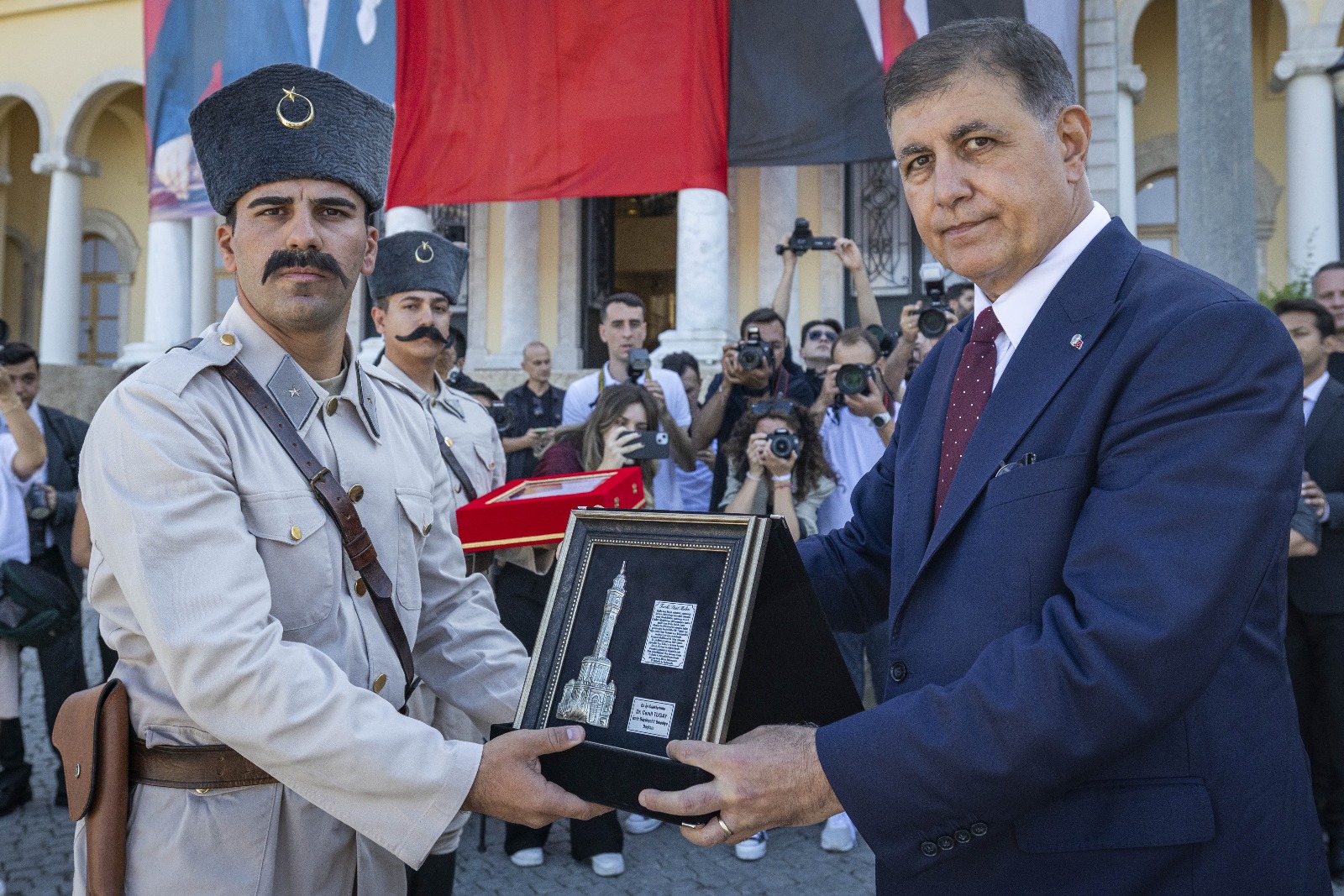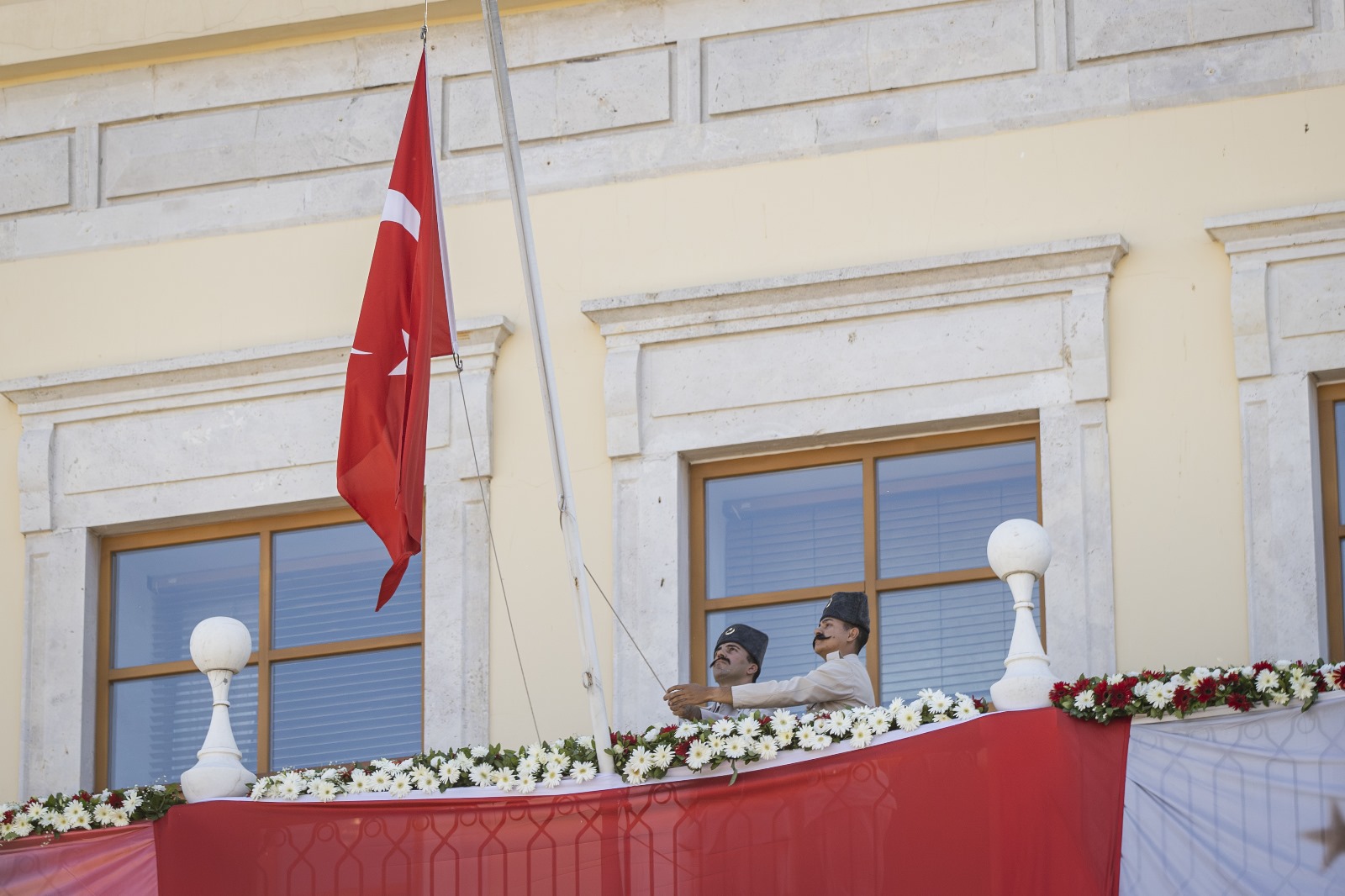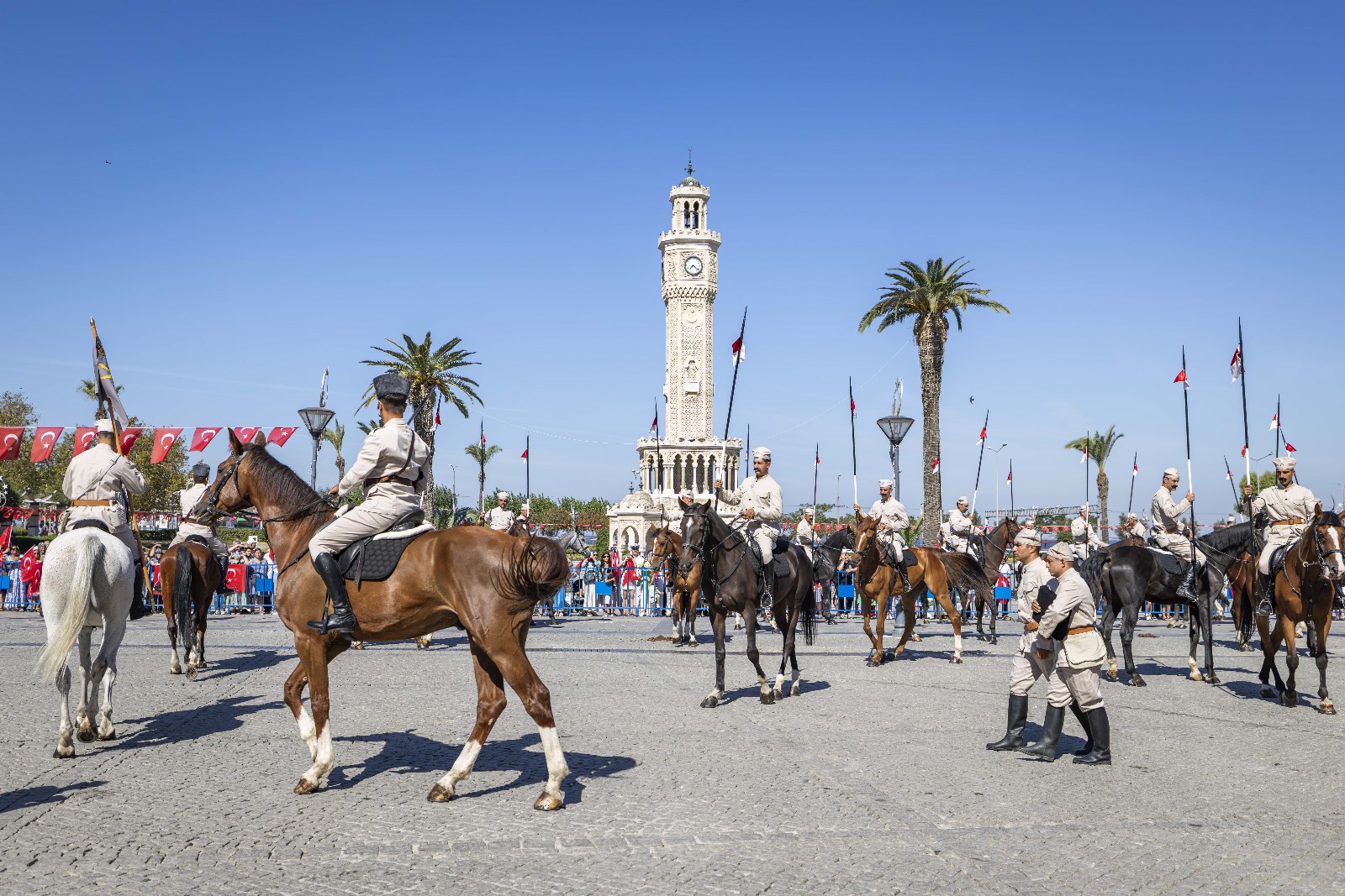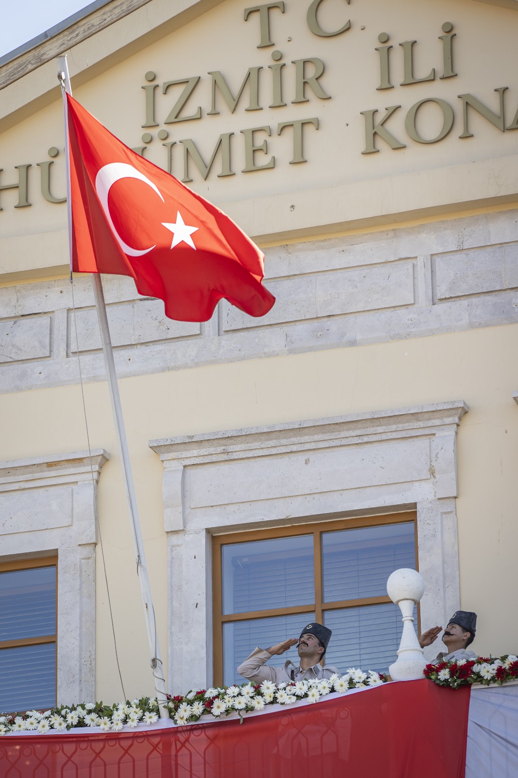 İzmir’in işgalden kurtuluşunun 103. yıl dönümü kutlamaları kapsamında Konak Atatürk Meydanı’nda temsili bayrak töreni yapıldı. Törende İzmir’in kurtuluşunu canlandıran süvari birlikleri Hükümet Konağı’nın önüne geldi ve Yüzbaşı Şerafettin’i temsil eden bir asker göndere Türk bayrağı çekti. O anlar izleyenlere büyük bir heyecan ve gurur yaşattı.