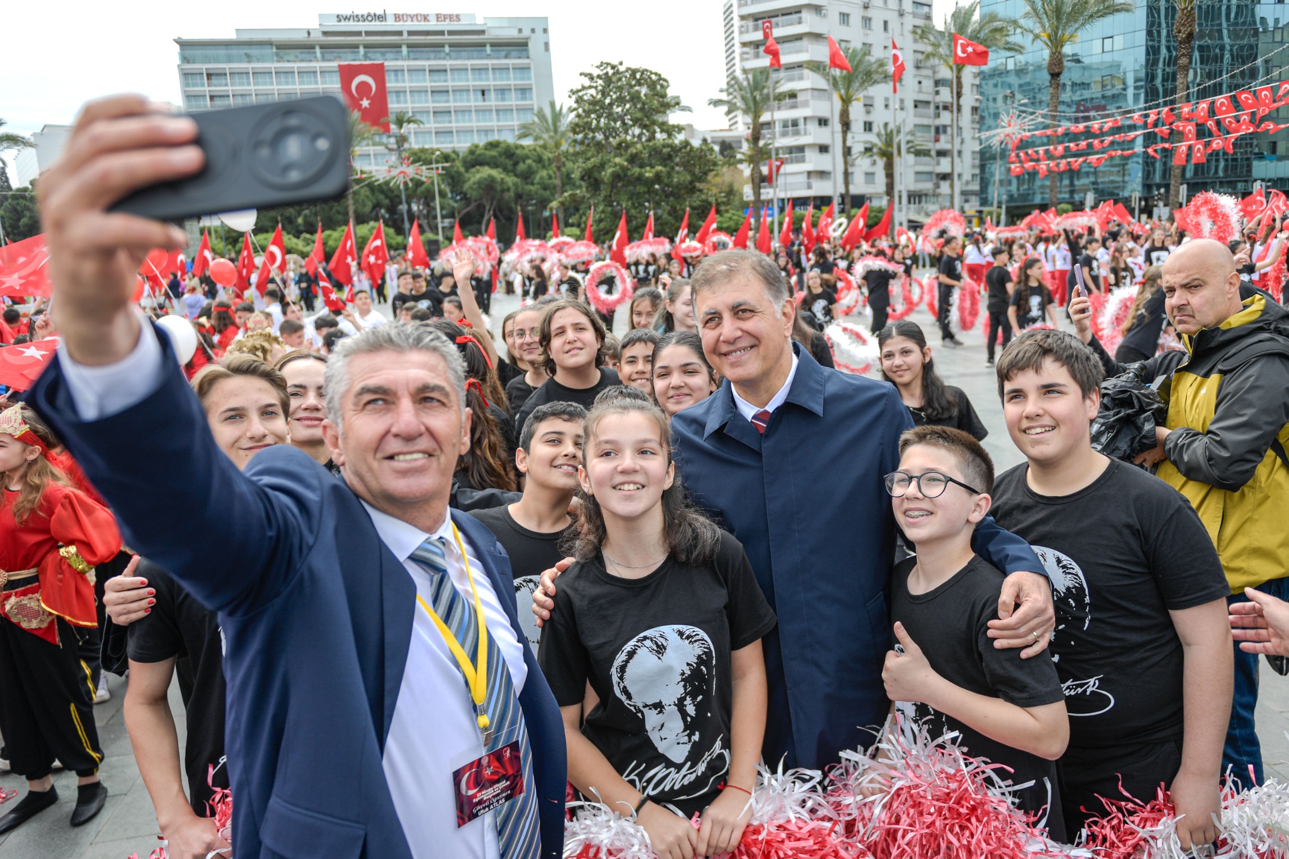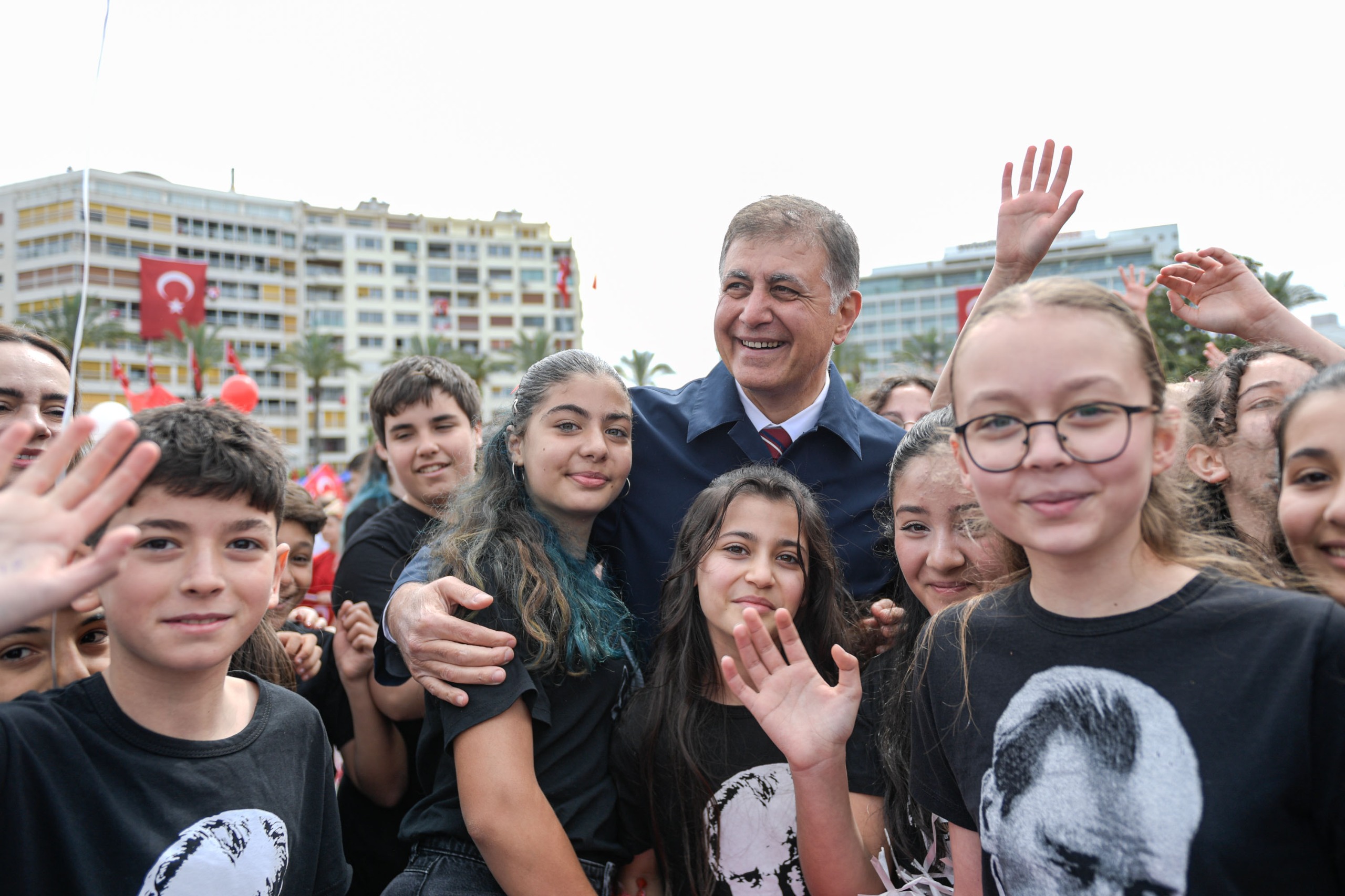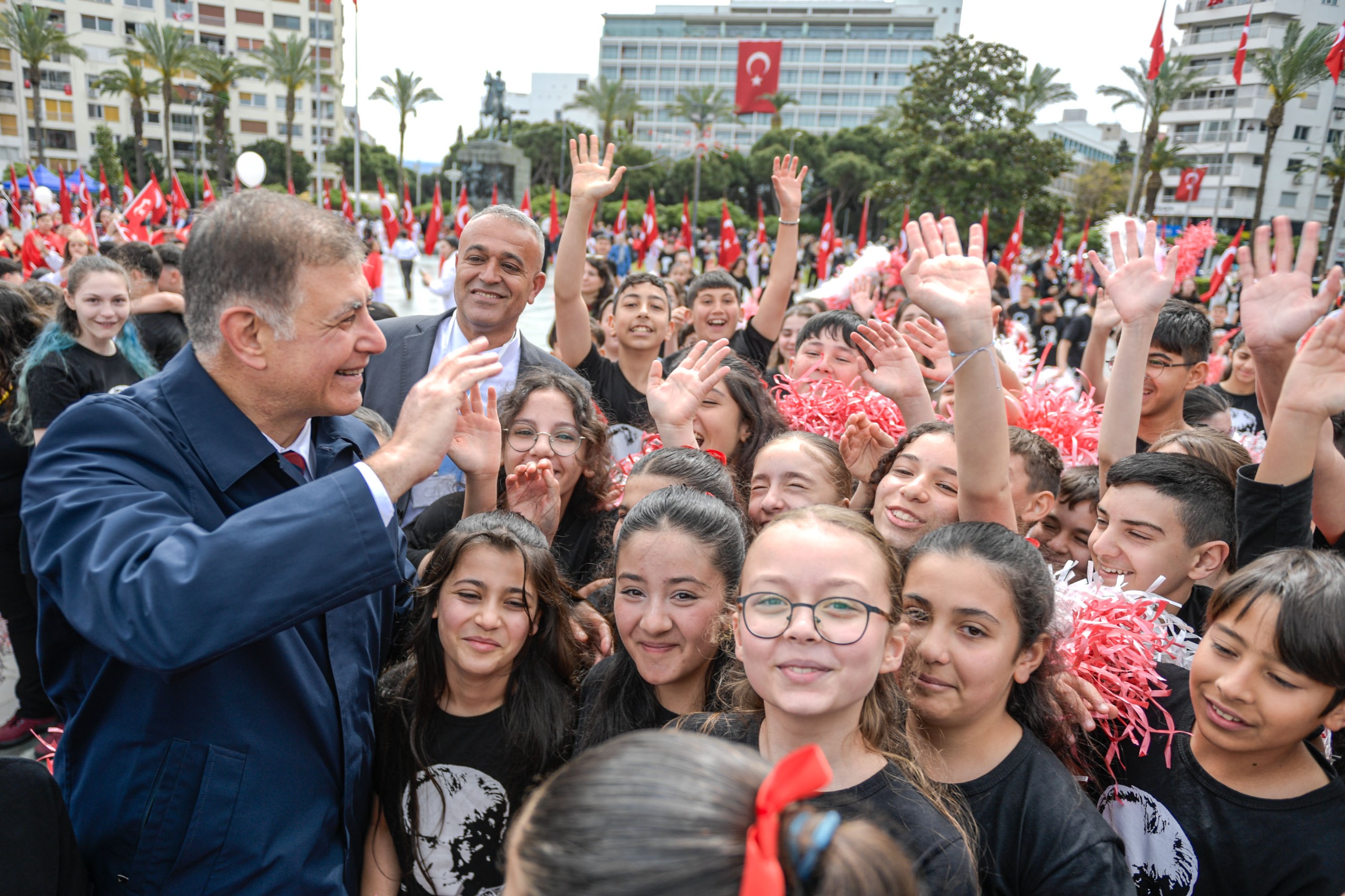 23 Nisan Ulusal Egemenlik ve Çocuk Bayramı nedeniyle İzmir’de Cumhuriyet Meydanı’nda tören düzenlendi. Törende Kahramanmaraş’ta meydana gelen okul saldırılarında hayatını kaybeden öğretmen ve öğrenciler anısına saygı duruşunda bulunuldu.