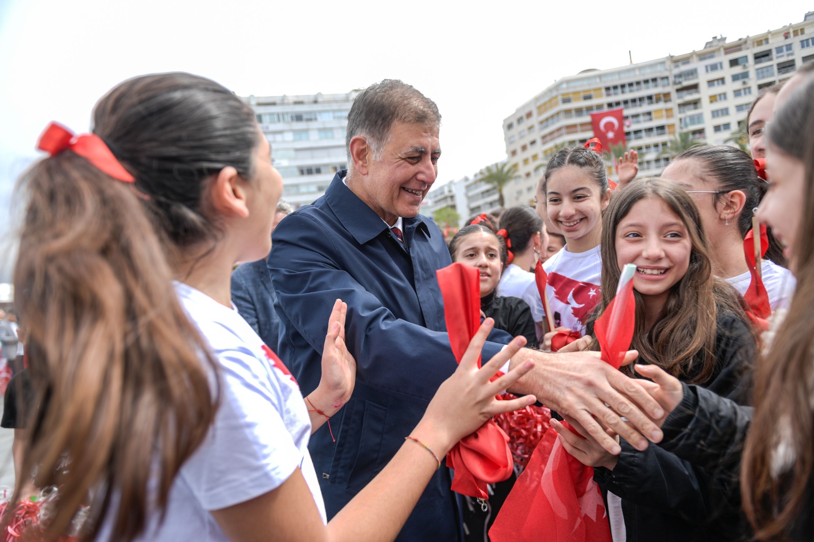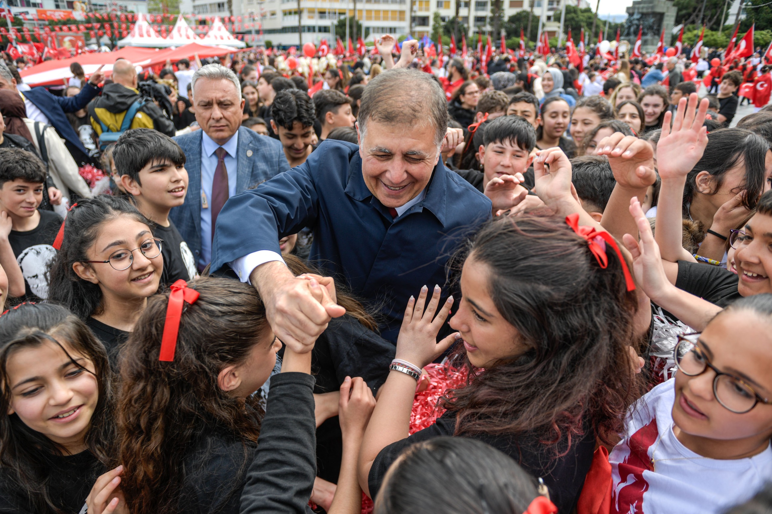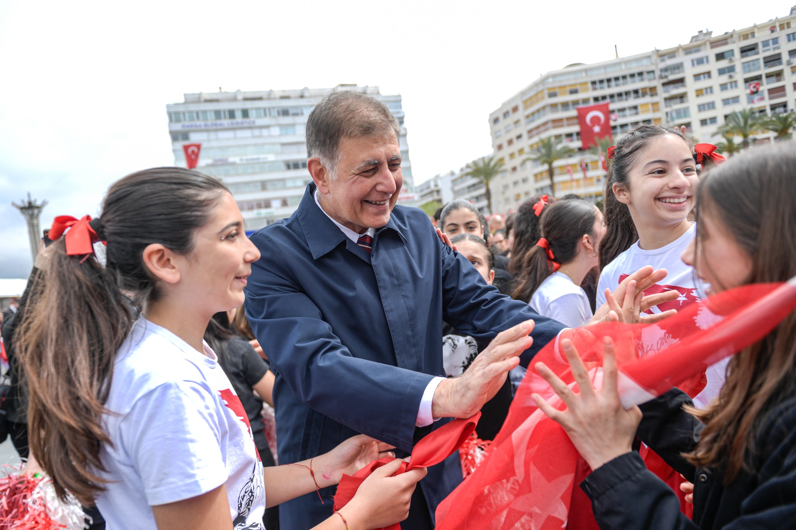 23 Nisan Ulusal Egemenlik ve Çocuk Bayramı nedeniyle İzmir’de Cumhuriyet Meydanı’nda tören düzenlendi. Törende Kahramanmaraş’ta meydana gelen okul saldırılarında hayatını kaybeden öğretmen ve öğrenciler anısına saygı duruşunda bulunuldu.