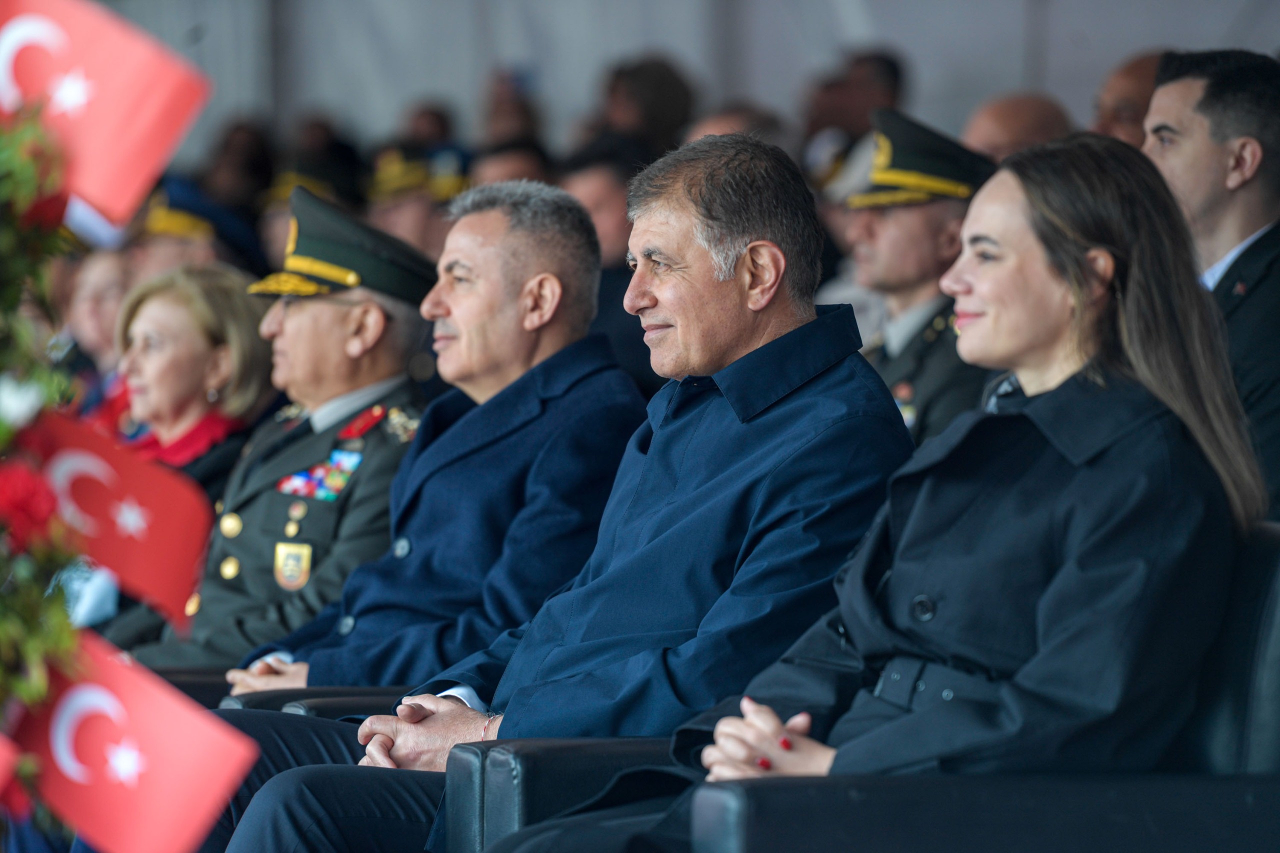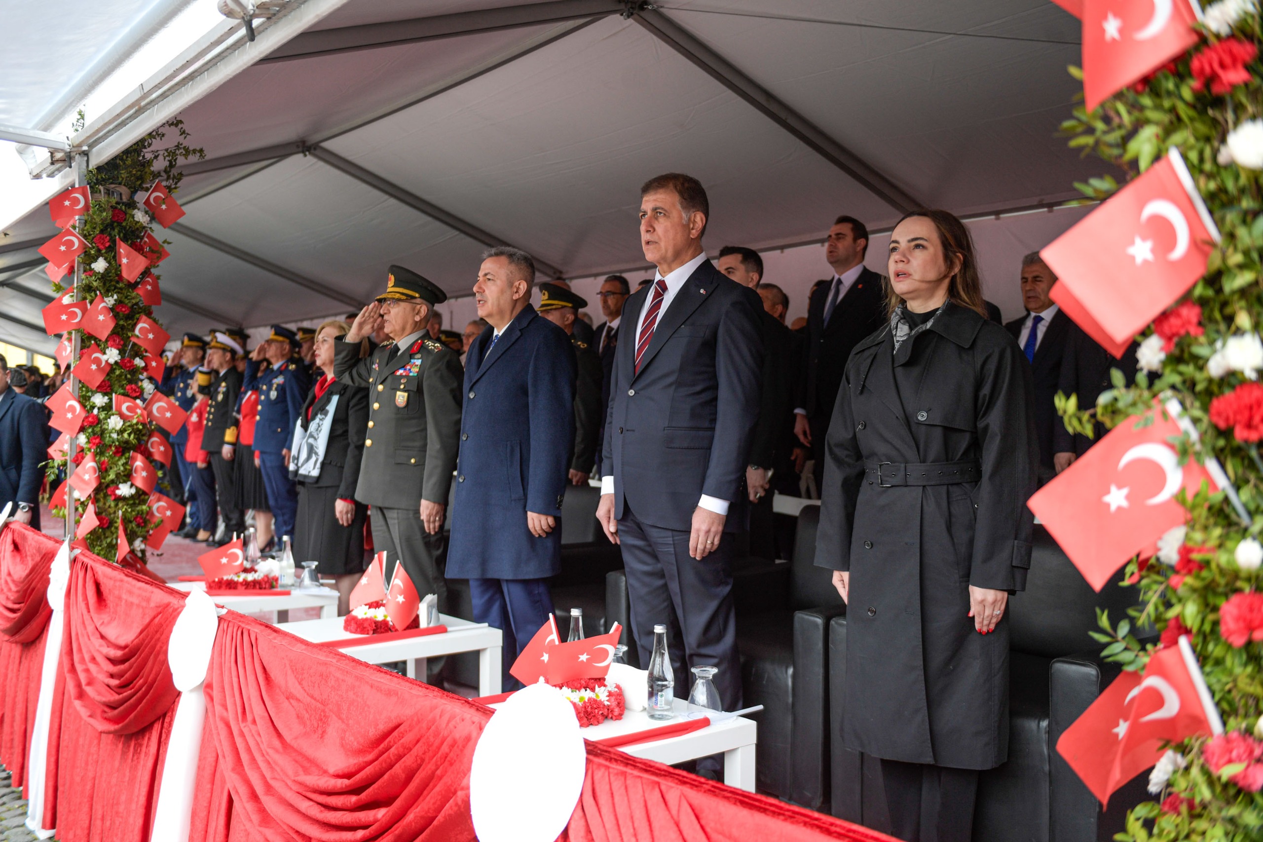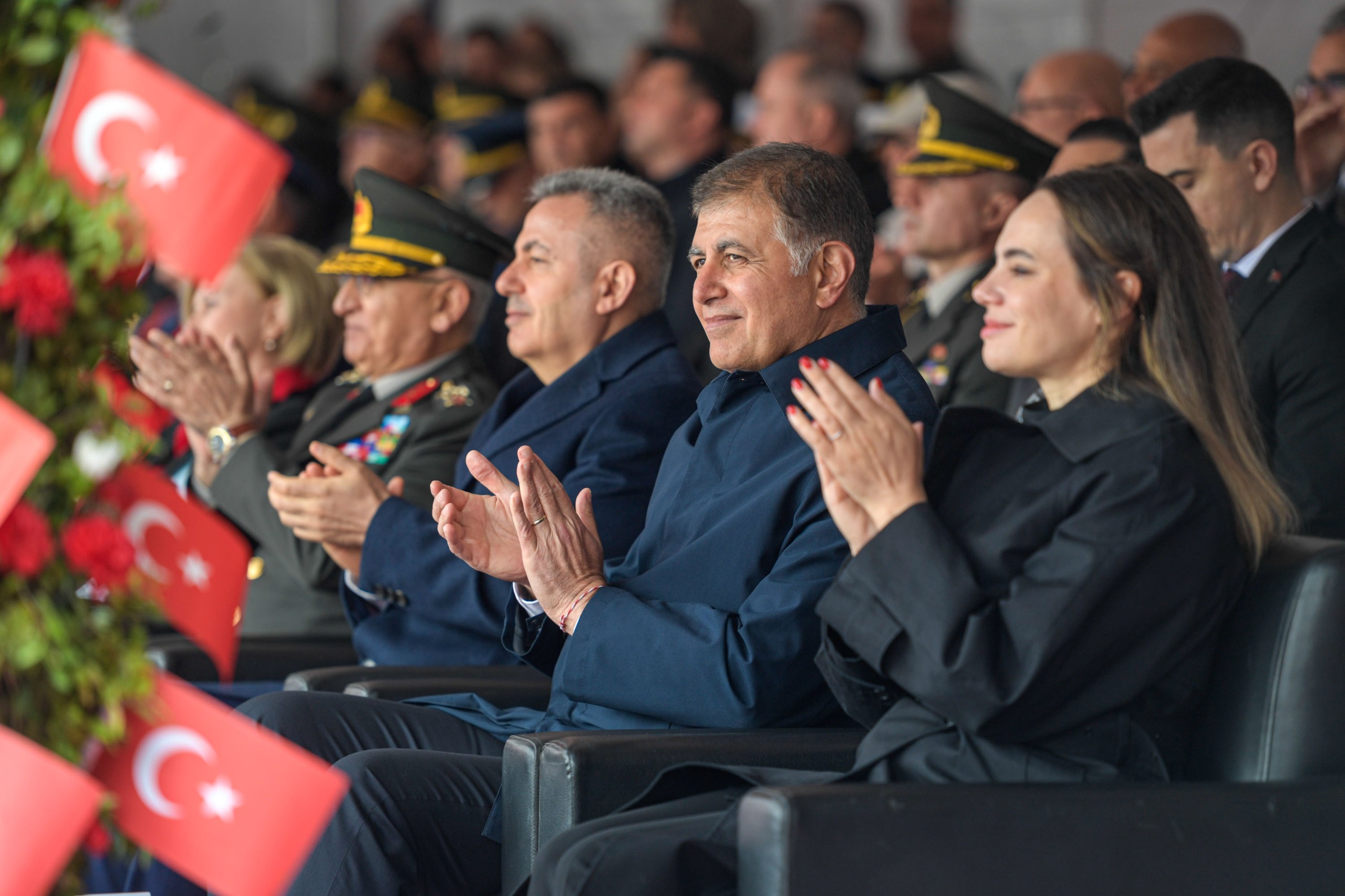 EGEMENLİK - İzmir Büyükşehir Belediye Başkanı Dr. Cemil Tugay ve eşi Öznur Tugay, Cumhuriyet Meydanı’nda düzenlenen 23 Nisan Ulusal Egemenlik ve Çocuk Bayramı törenlerine katıldı. İzmir Valisi Süleyman Elban, Ege Ordusu Komutanı Orgeneral İrfan Özsert, Cumhuriyet Halk Partisi (CHP) İzmir İl Başkanı Çağatay Güç, kent protokolü ve İzmirli vatandaşların katıldığı törende, İstiklal Marşı okunarak Türk bayrağı göndere çekildi. Törende ayrıca, Kahramanmaraş’ta yaşanan okul saldırılarında hayatını kaybeden öğretmen ve öğrenciler anısına saygı duruşunda bulunuldu. Öğrencilerin hazırladığı gösterileri izleyen Başkan Tugay, daha sonra alandaki çocuklarla bir araya gelerek bayramlarını kutladı. Çocukların sevgi gösterileri ile karşılanan Başkan Tugay, onlarla hatıra fotoğrafı çektirdi. Yer gök kırmızı beyazKutlama programı kapsamında İzmir İl Milli Eğitim Müdürü Ömer Yahşi bir konuşma yaptı. Ardından Milli Eğitim Bakanı Yusuf Tekin’in bayrama ilişkin mesajı okundu. Programda öğrenciler, 23 Nisan Ulusal Egemenlik ve Çocuk Bayramı temalı şiirler seslendirdi. İlkokul öğrencileri Türkiye’m adlı gösteriyi sunarken, ilkokul ve ortaokul öğrencileri “Anadolu’nun Renkleri” adlı halk oyunu gösterisi gerçekleştirdi. Kutlamalar kapsamında ayrıca “Atatürk’ün Yıldızları” ve “Egemenlik Bandosu” gösterileri sahnelendi. Finalde 2 bin öğrenci, ellerindeki Türk bayraklarıyla kırmızı ve beyaz balonları gökyüzüne bırakarak kutlamalara renk kattı.