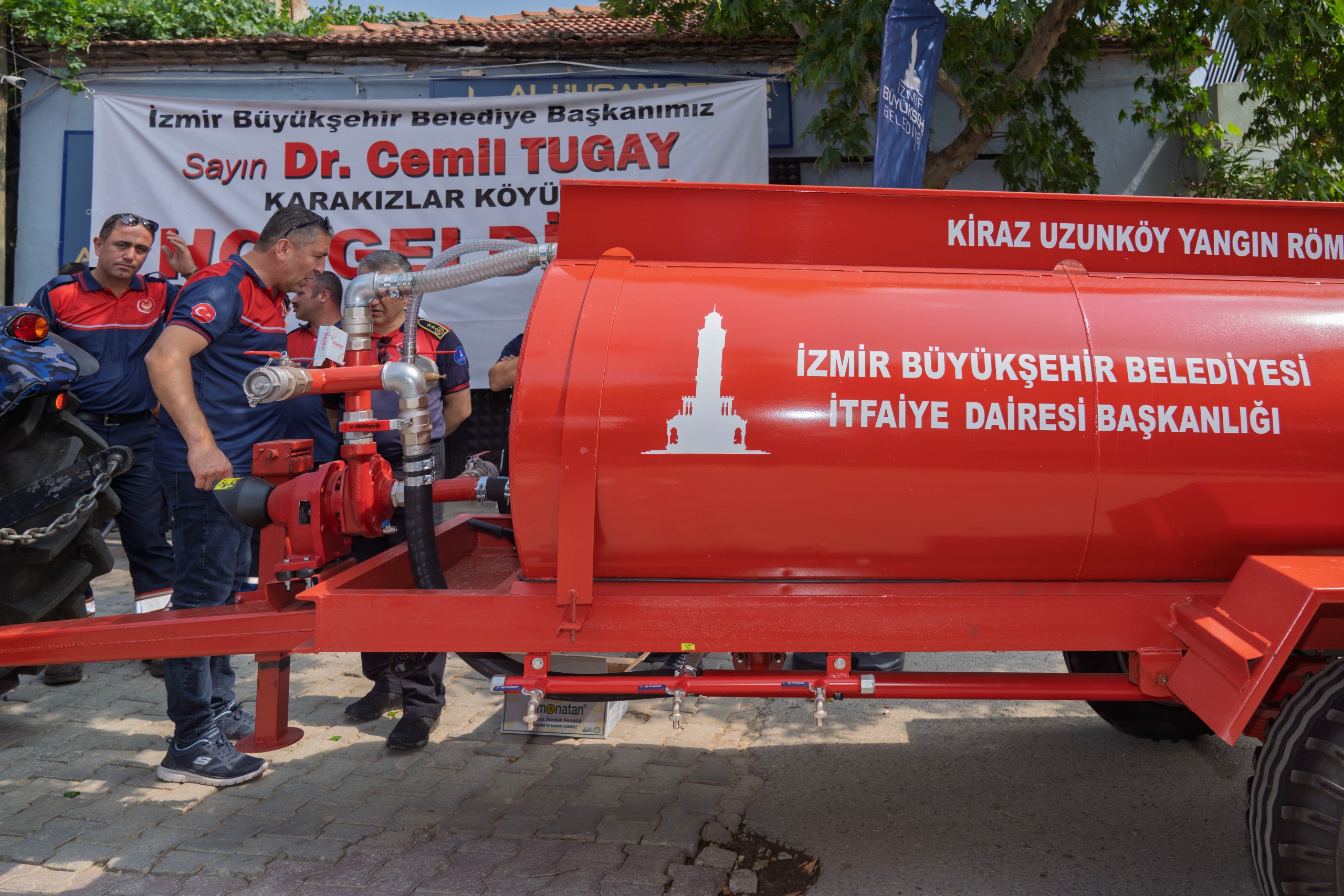 “Yangına köylerimizin hazırlıklı olması önemli”Torbalı Karakızlar Mahalle Muhtarı Niyazi Soytürk, dağıtılan tankerlerin köyler için önemine değinerek, şunları söyledi: “Yaz aylarında artan orman ve arazi yangınlarına karşı, köylerimizin hazırlıklı olması, vatandaşlarımızın can ve mal güvenliği açısından bu tankerler önemli. Dün komşu mahallemiz Karaot'ta, kaynak makinesinden dolayı yangın çıktı. İki evimiz, 50 dönümün üzerinde de zeytinlik alan yandı. Bu yangına ilk müdahaleyi yangın tankerleri ile yaptık. Daha sonra itfaiye ekipleri yangını söndürdü.”17 ilçede 85 muhatara tanker verildiProgramın ardından 17 ilçeden 85 köy muhtarı, tankerleri teslim aldı. Böylece 30 ilçedeki 600 kırsal mahalleden toplam 587’sine, römork tipi yangın tankeri ulaştırılmış oldu. İzmir Büyükşehir Belediyesi İtfaiye Dairesi Başkanlığı, 30 ilçede bulunan 62 istasyonda, 7 gün 24 saat görev yapıyor. Büyükşehir, bin 761 yangın gönüllüsü ile yangınlara karşı mücadelesini güçlendiriyor. Çevre dostu tankerlerle etkili müdahale Yeni alınan römork tipi yangın tankerleri, çevre dostu özellikleriyle de dikkat çekiyor. Sıvı yangın söndürme maddeleri kullanılarak yangınların daha etkin bir şekilde söndürülmesi sağlanacak, çevresel zararlar en aza indirgenecek. Ayrıca tankerlerin hızlı mobilizasyonu sayesinde İzmir’in dört bir yanında meydana gelebilecek yangınlara daha kısa sürede müdahale edilebilecek.
