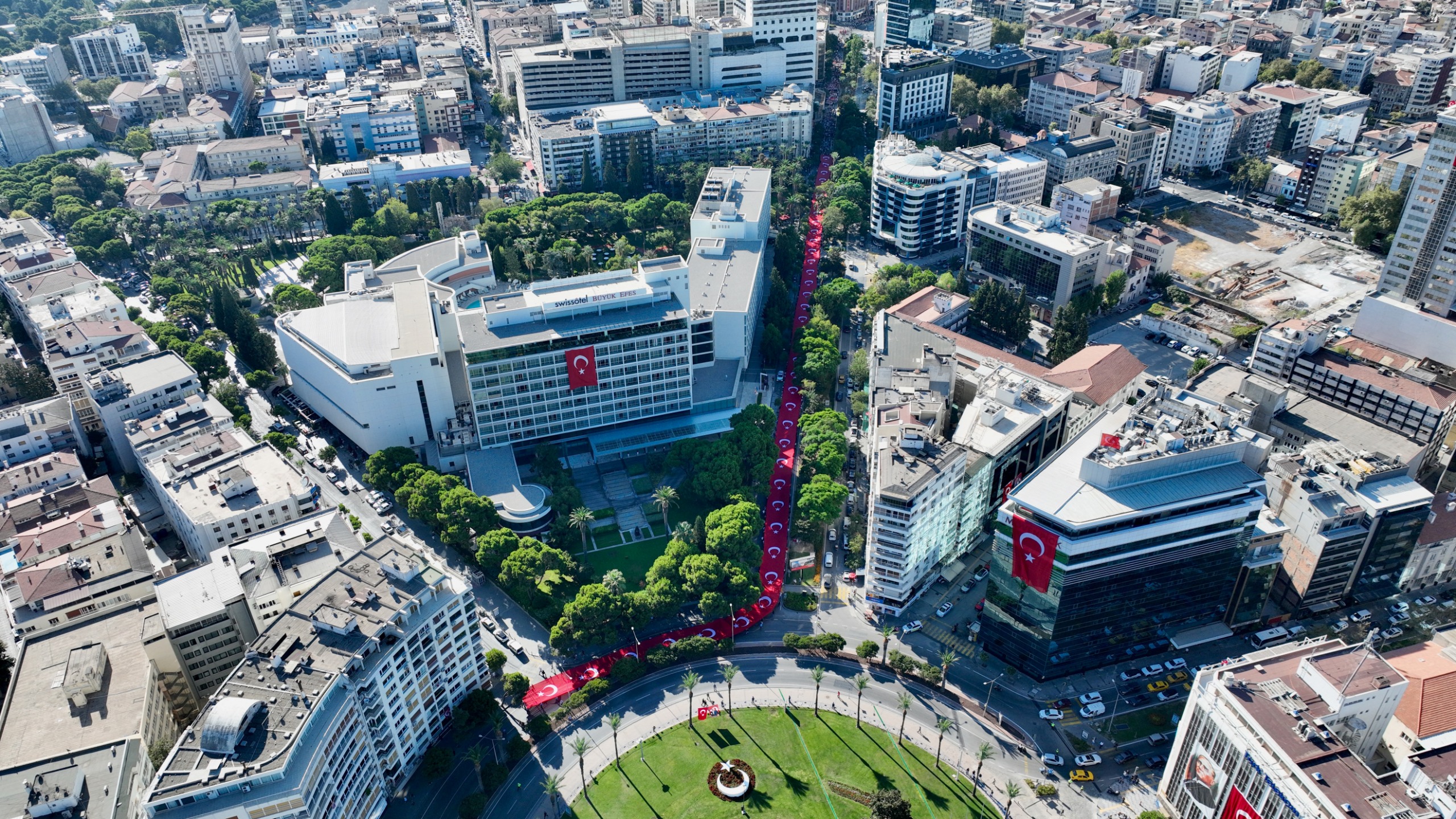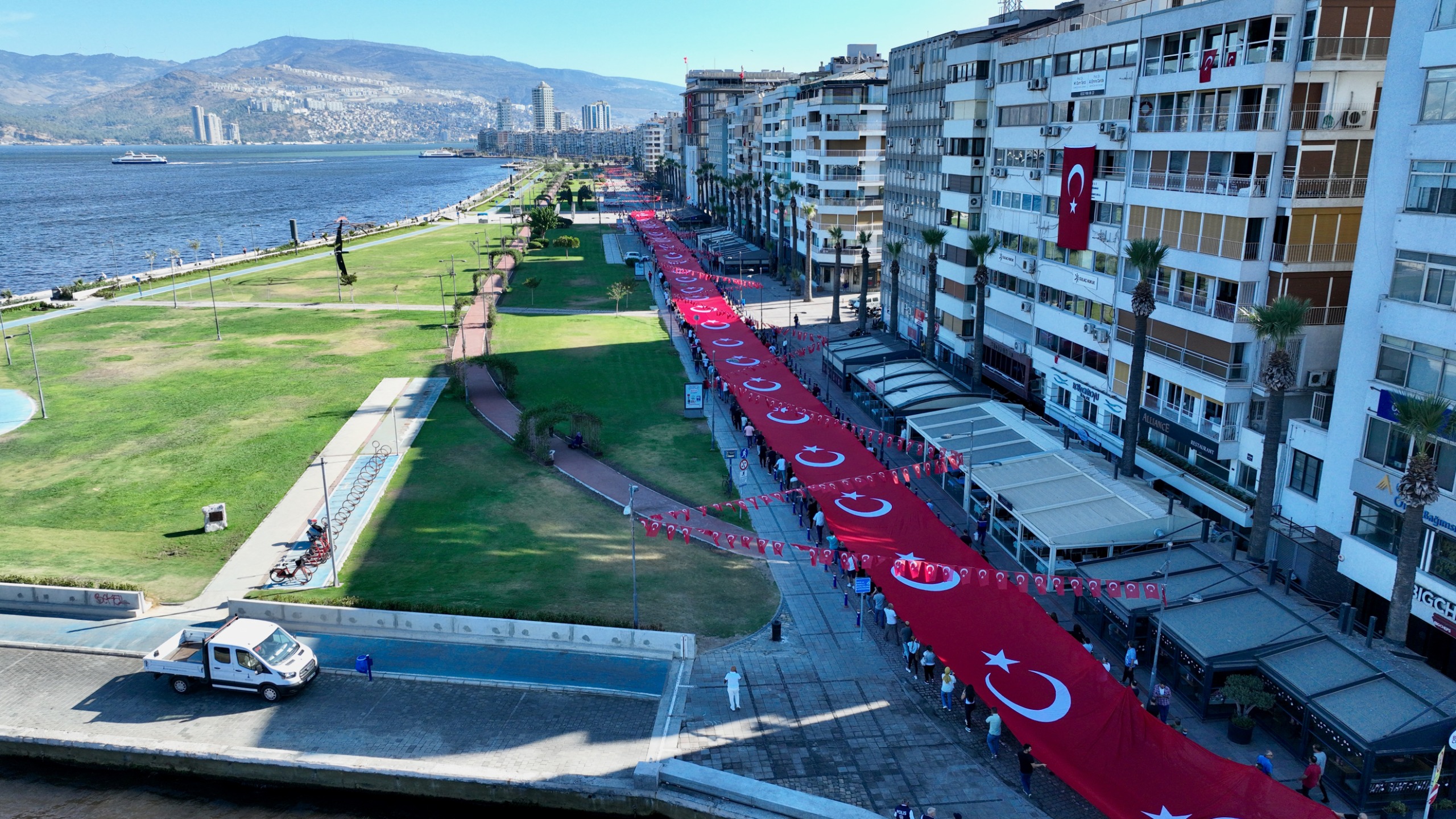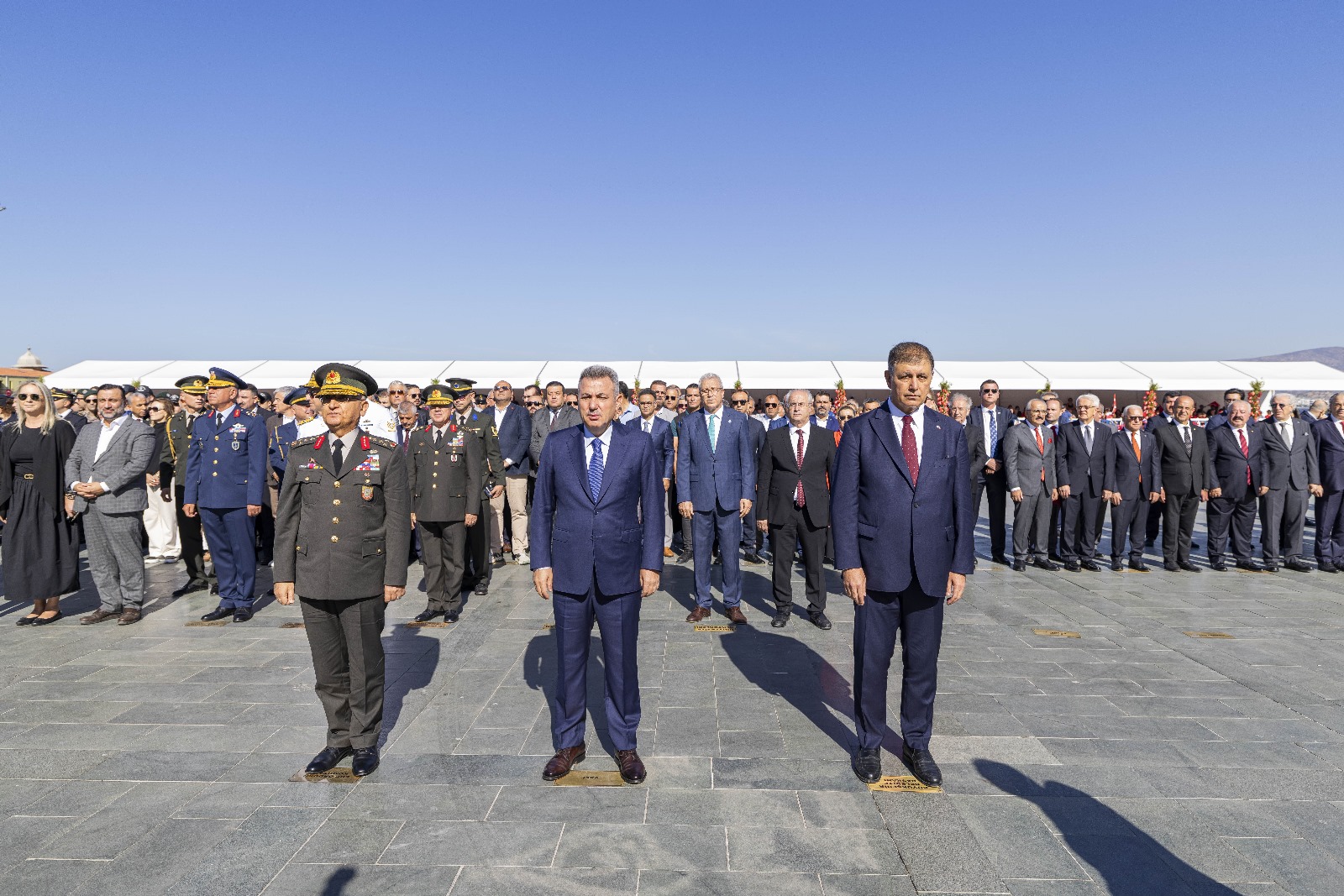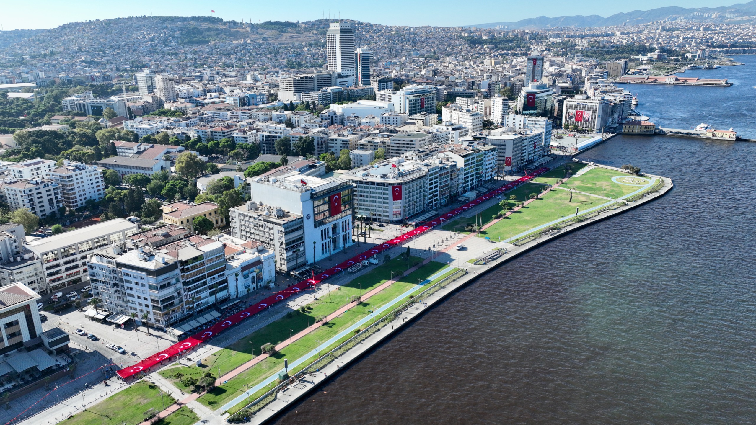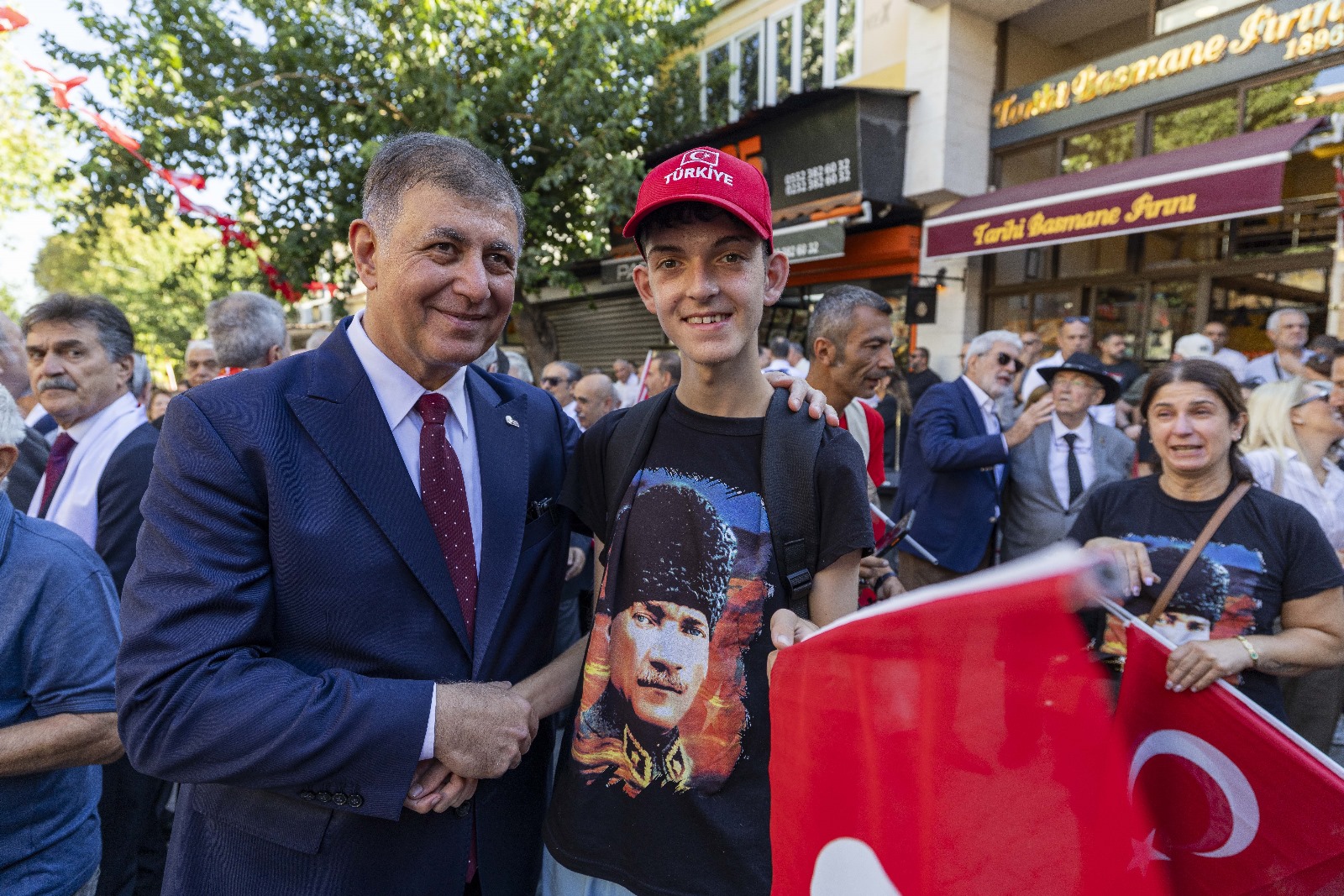 EGEMENLİK - İzmir’de kurtuluşun 103’üncü yıl dönümü kutlamaları kapsamında Türk ordusunun 9 Eylül 1922'de kente girerken kullandığı güzergâh üzerinde 9 Eylül Zafer Yürüyüşü düzenlendi. İzmir Büyükşehir Belediye Başkanı Dr. Cemil Tugay’ın katıldığı yürüyüş, Basmane Karakolu önünden Cumhuriyet Meydanı’na kadar devam etti. Kortejde milletvekilleri, siyasi parti temsilcileri, ilçe belediye başkanları, meclis üyeleri, bürokratlar, iş dünyası, sivil toplum örgütlerinin temsilcileri ve binlerce İzmirli yer aldı. Yürüyüşte 350 metre uzunluğundaki dev Türk Bayrağı taşındı. İzmirliler marşlar eşliğinde yürüyenlere alkışladı. Zafer Yürüyüşü Cumhuriyet Meydanı’nda noktalandı. Program kapsamında İzmir Valisi Dr. Süleyman Elban, Ege Ordusu ve Garnizon Komutanı Orgeneral İrfan Özsert ve İzmir Büyükşehir Belediye Başkanı Dr. Cemil Tugay, Cumhuriyet Meydanı’nda bulunan Atatürk Anıtı’na çelenk sundu. Tören, saygı duruşunda bulunulması ve İstiklal Marşı’nın okunmasının ardından son buldu.Bando takımı eşlik etmedi Dün Balçova’daki polis merkezine yapılan saldırıda birinci sınıf emniyet müdürü polis başmüfettişi Muhsin Aydemir ve polis memuru Hasan Akın’ın şehit olması nedeniyle yürüyüşe bando takımı eşlik etmedi. İzmir Büyükşehir Belediyesi 8-9 Eylül tarihlerinde İEF kapsamında yapılacak konser ve eğlence etkinliklerini de iptal etmişti.