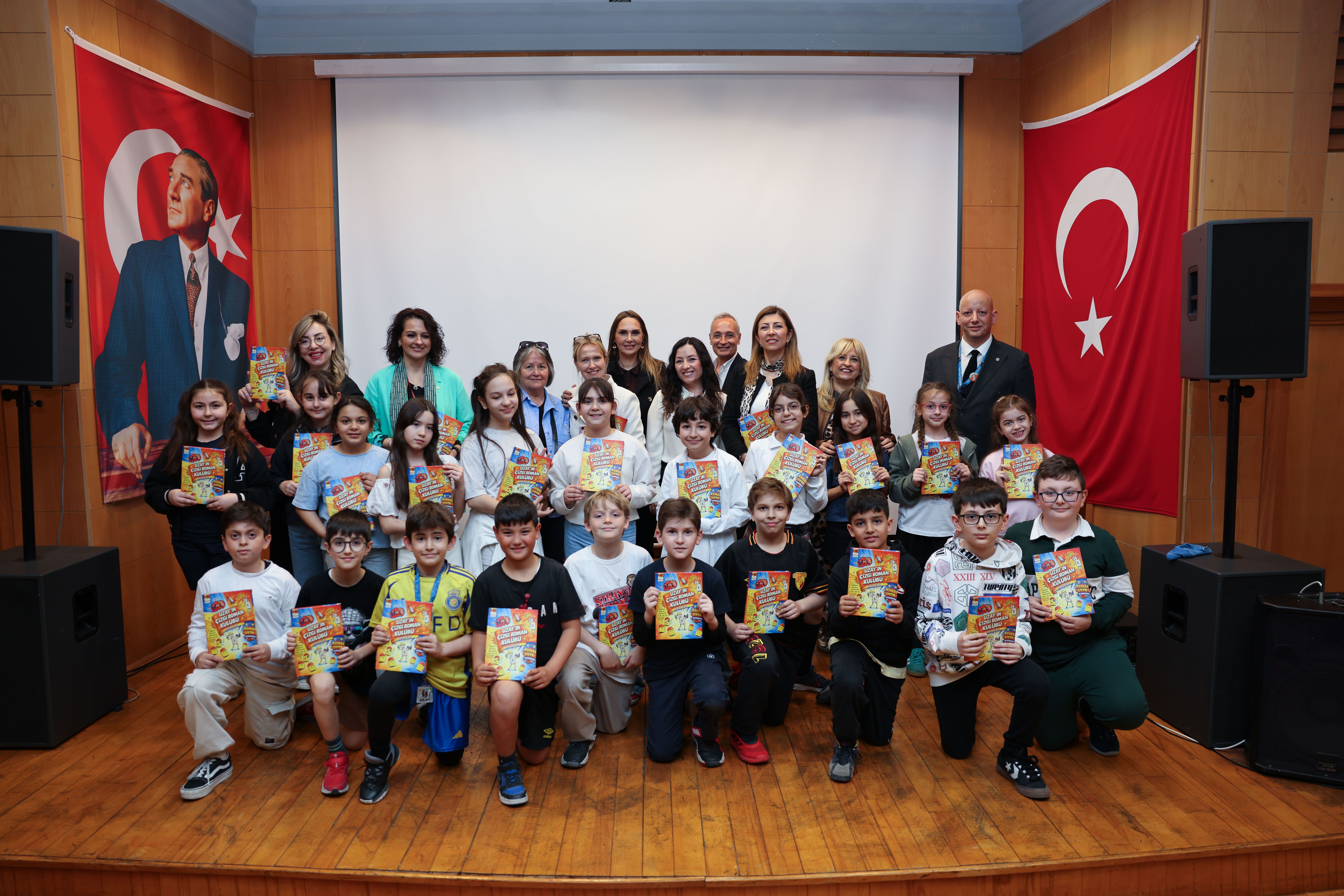 EGEMENLİK - İzmir Özel Türk Koleji (İTK) Çocuk Bienali, yalnızca öğrencilerin sanatsal üretimlerine değil, dikkat çeken bir başarı hikâyesine sahne oldu. 23 Nisan Ulusal Egemenlik ve Çocuk Bayramı kapsamındaki bienalde, İTK Bahattin Tatış Kampüsü 4F sınıfı öğrencisi 9 yaşındaki Uzay Kaan İnce, yazıları ve çizimleri kendisine ait “Uzay’ın Çizgi Roman Kulübü” adlı ilk kitabını imzaladı.Latife Hanım Köşkü’nde yer alan Gazi Mustafa Kemalpaşa Sanat Galerisi’nde gerçekleşen imza gününe İnce’nin sınıf arkadaşları ve öğretmenleri yoğun ilgi gösterdi. Küçük yaşına rağmen kendi hikâyesini kurgulayan ve görselleştiren İnce, kitabında hayal gücünü merkeze alan bir anlatım dili kurdu.İlk imza Oğuz Tatış’aUzay Kaan İnce, kitabını ilk olarak İTK Yönetim Kurulu Başkanı Oğuz Tatış için imzaladı. İTK Bahattin Tatış Kampüsü İlkokul Müdür Yardımcısı Hasan Fatih Öztürk, 4F Sınıf Öğretmeni Zeynep Duru Toraman ile anne babası Nihan Yarkent İnce ve Şafak İnce’nin de yer aldığı ziyarette Tatış, Uzay’ı özgüveni ve üretkenliği nedeniyle tebrik etti. Tatış, “Hayallerini gerçekleştirmekten vazgeçme, yazmaya ve üretmeye devam et. Senin gibi çocuklar geleceğin en güçlü hikâyelerini yazacak” dedi. Ziyaret sırasında Tatış da kendi yaşam öyküsünü kaleme aldığı kitabı Uzay Kaan İnce için imzaladı.Bienalin açılışı birlikte yapıldıİmza gününün ardından İTK Yönetim Kurulu Başkanı Oğuz Tatış, Akademik Direktörü Bahar Ergin Faat, Kampüs ve İlkokul Müdürü Evrim Bayar, Görsel Sanatlar Bölüm Başkanı Melek Gizem Uz, Anadolu Lisesi Müdürü Ersoy Filiz ve İTK Mezunlar Derneği Başkanı Ülkü Toker ile Kızılay Kadın İzmir Başkanı Gonca Aslan ve öğrencilerin katılımıyla 6. İTK Çocuk Bienali’nin açılışı gerçekleştirildi.Bu yıl “Metamorfoz (Dönüşüm)” temasıyla düzenlenen bienalde öğrenciler; değişim, dönüşüm ve yeniden var olma kavramlarını kendi bakış açılarıyla yorumlayarak özgün eserler ortaya koydu. Süreç boyunca öğrenciler, sanatsal ifade becerilerini geliştirirken düşünsel üretimlerini de paylaşma imkânı buldu.“Hayal kurarken kurallar yok”Uzay Kaan İnce’nin kitabında yer alan önsözde ise küçük yazarın bakış açısı öne çıktı. Kendi dünyasını çizdiğini ve hayal ettiklerini bir araya getirdiğini belirten Uzay, kahraman olmanın “en güçlü olmak değil, tekrar denemek” anlamına geldiğini vurguladı. 5 yaşından beri çizdiğini ve çizerken de eğlendiğini, hikâyelerinin süreç içinde değiştiğini söyleyen Uzay, kitabını okuyan herkesi kendi hikâyesini kurmaya davet etti.