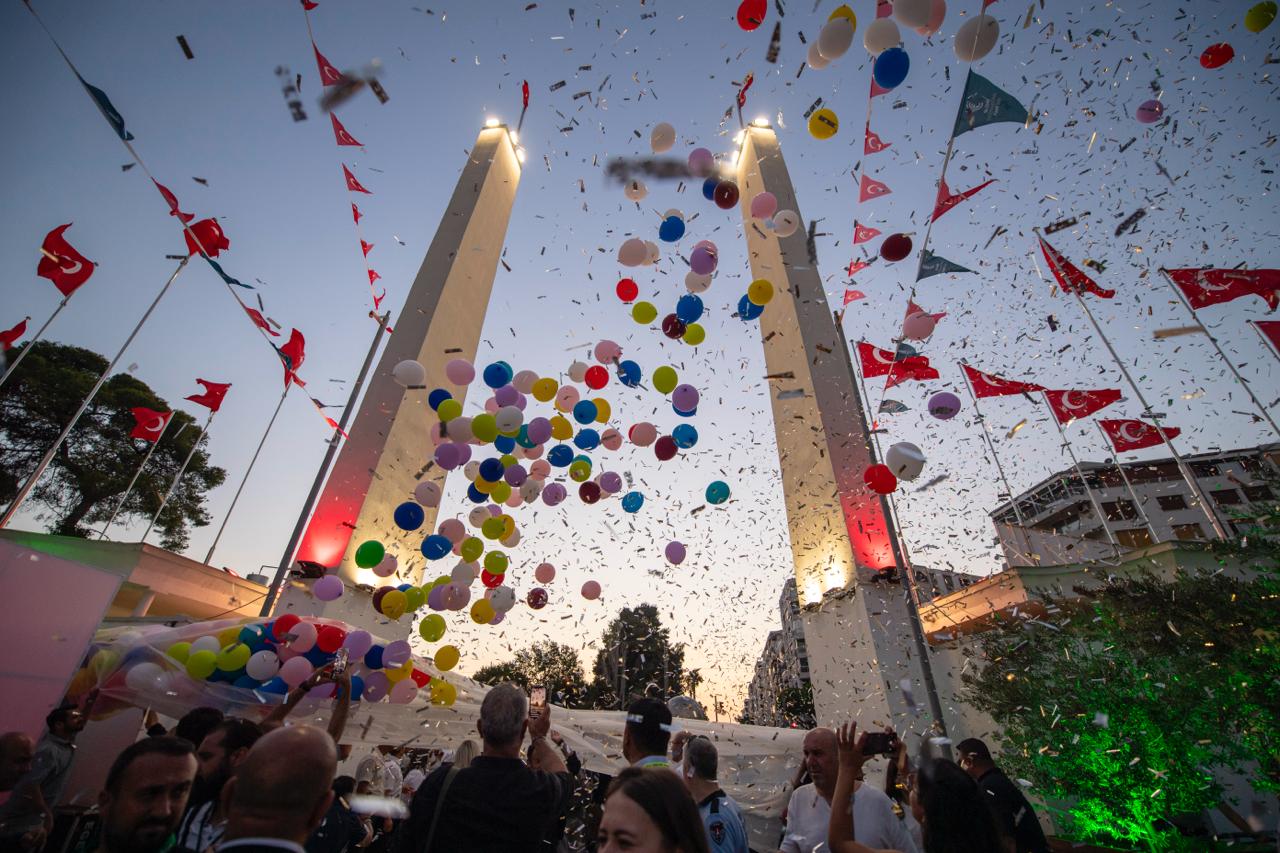 İEF coşkusu balkonlara taştı Kortej İzmir Büyükşehir Belediyesi Bandosu ve dans ekiplerinin gösterileri eşliğinde Gündoğdu Meydanı’ndan başladı. Marşlar ve şarkılar eşliğinde ilerleyen kortej, Plevne Bulvarı üzerinde coşkuyla devam etti. Korteje katılamayan İzmirliler, evlerinin camlarından ve balkonlarından alkışlarla, marşlarla coşkuya ortak oldu. Başkan Dr. Cemil Tugay, kortej boyunca İzmirlileri selamladı. Plevne Bulvarı’nın ardından Lozan Meydanı’ndan Kültürpark’a girildi. Kortej, Lozan Meydanı’nda konfeti şovlarıyla karşılandı. 94. İEF şerefine balonlar gökyüzüne yükseldi.