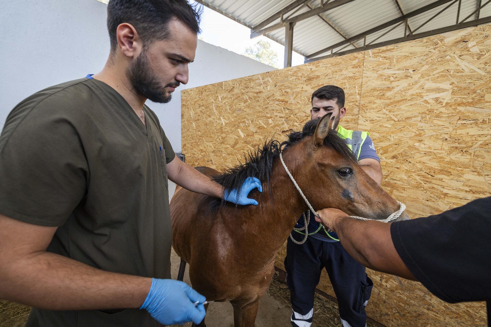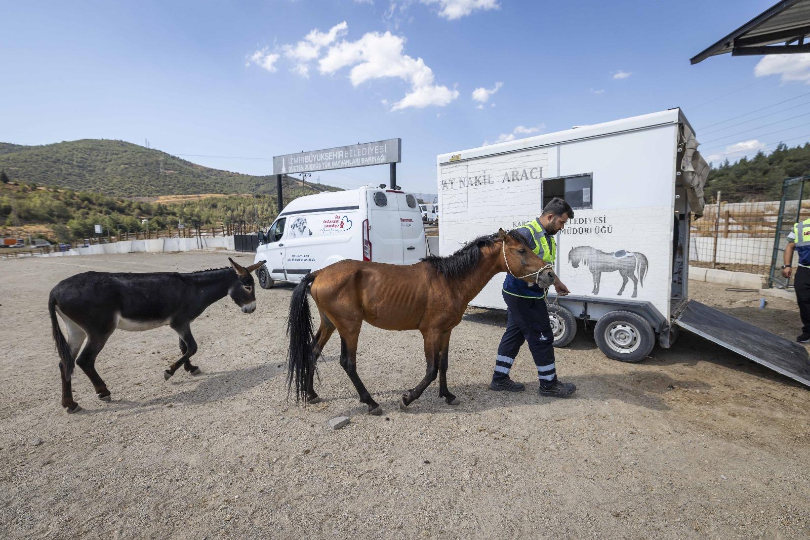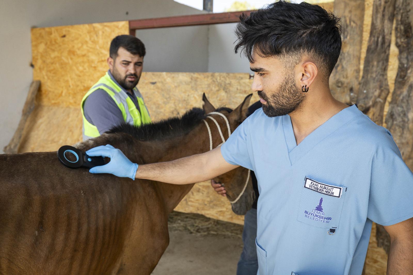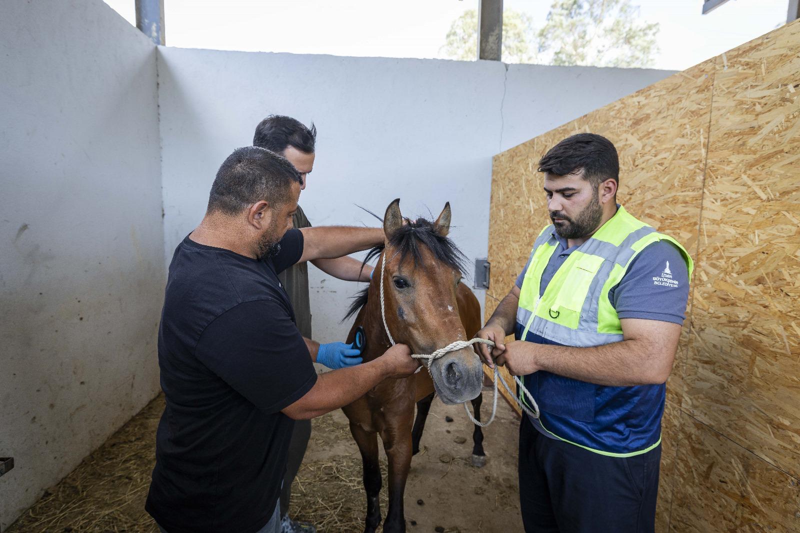 EGEMENLİK - İzmir Büyükşehir Belediyesi Veteriner İşleri Dairesi Başkanlığı ile Zabıta Dairesi Başkanlığı ekipleri, bir ihbar üzerine Buca'da bulunan bakımsız haraları denetledi. İzmir İl Tarım Müdürlüğü ile İlçe Tarım Müdürlüğü, Buca Belediyesi ve HAYDİ (Hayvan Durum İzleme) polis ekiplerin de katıldığı denetimde üç bakımsız at tespit edildi. Yapılan incelemede atların çipsiz ve sahipsiz olduğu belirlendi. Sahipsiz atlar, canlı hayvan nakil araçları ile İzmir Büyükşehir Belediyesi Pako Sokak Hayvanları Sosyal Yaşam Kampüsü'nde bulunan Yükten Düşmüş Binek Hayvanları Rehabilitasyon Merkezi'ne nakledildi. Çip takılan atların bakım ve tedavisine başlandı.