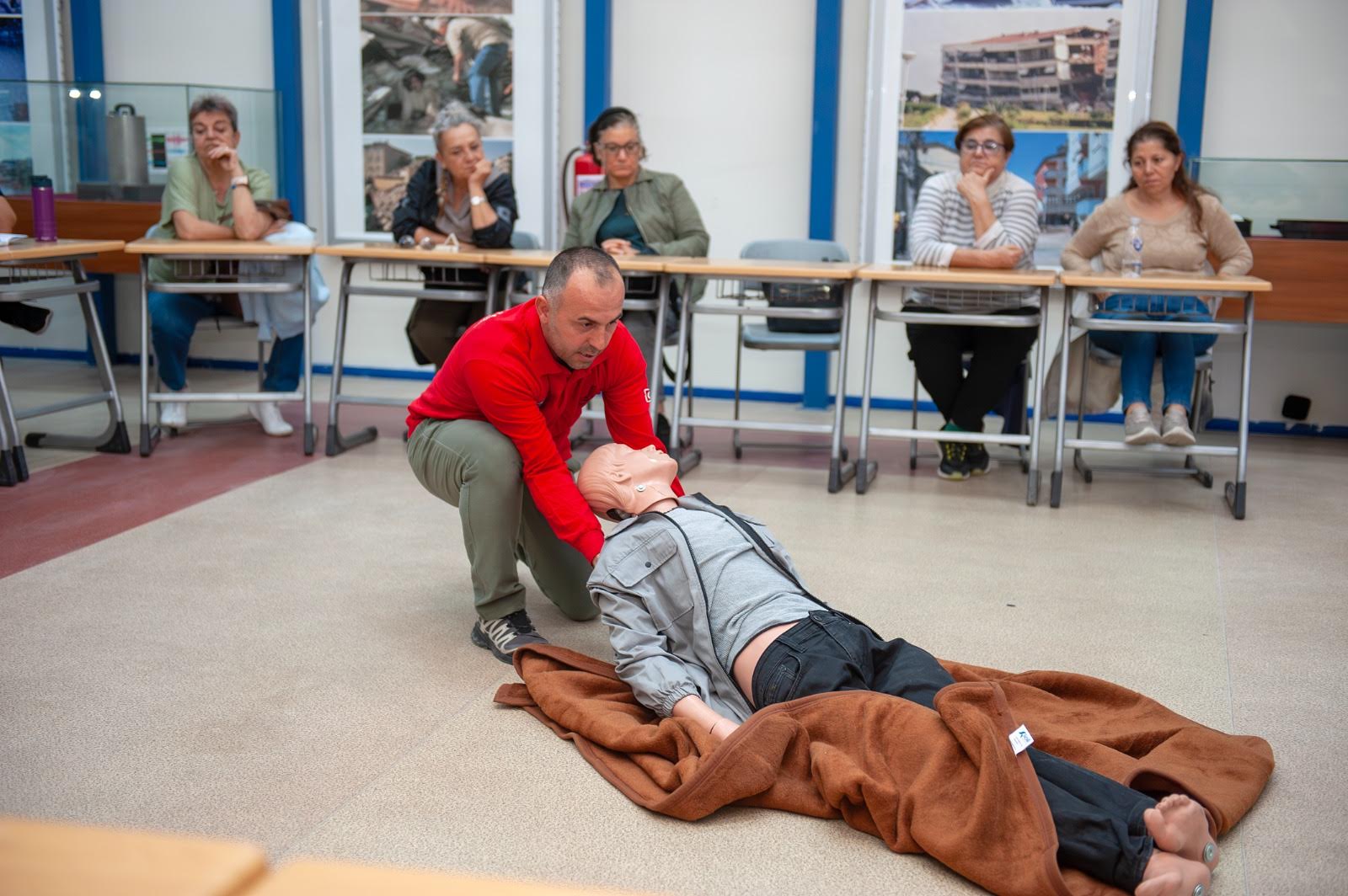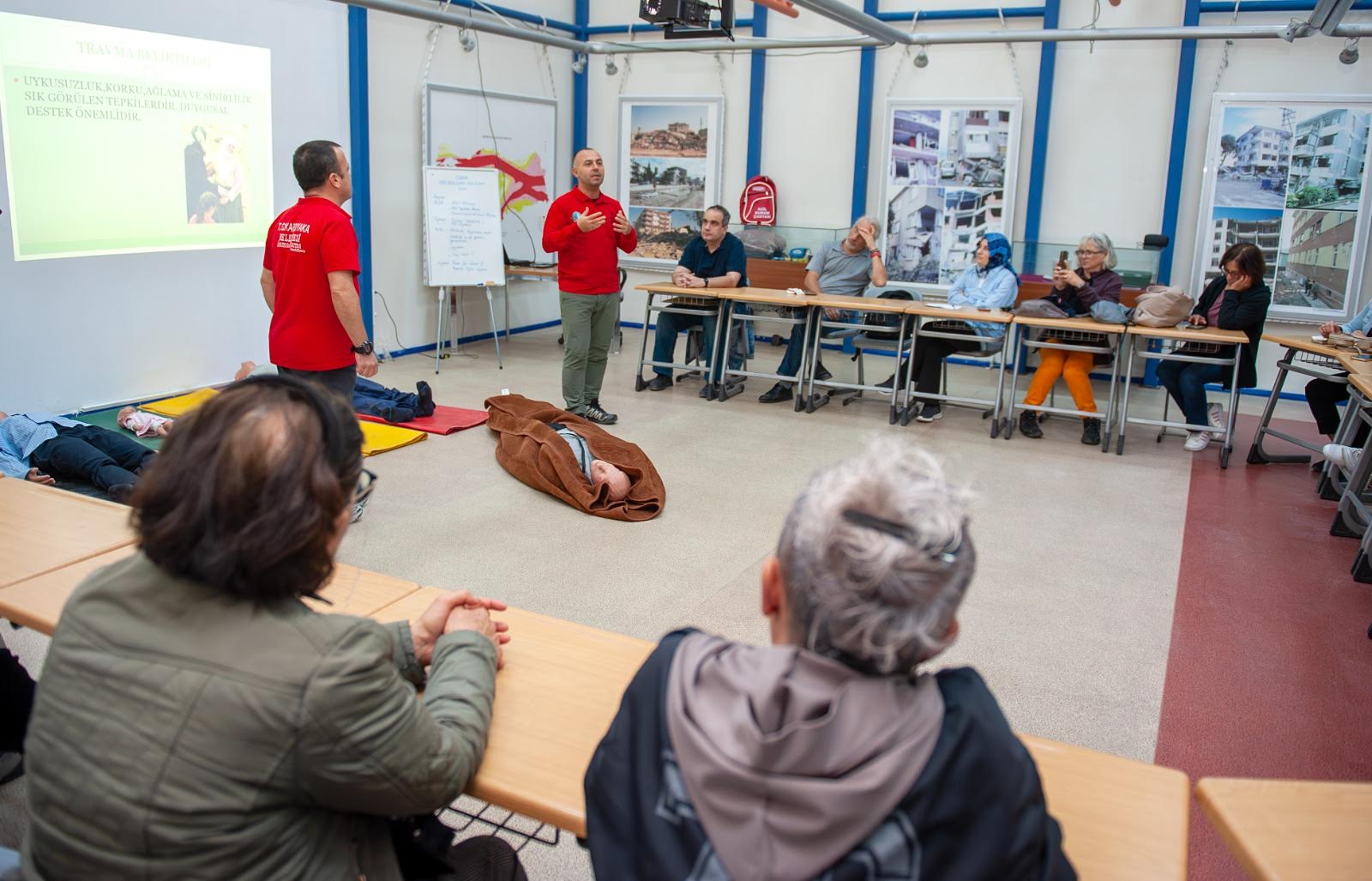 TEORİK VE UYGULAMALI EĞİTİMLERVatandaşları olası afetlere karşı daha donanımlı ve bilgi sahibi bireyler haline getirmek amacıyla çeşitli eğitimlerin verildiği projenin ilk dönemini yaklaşık 70 kişi tamamlayarak katılım belgesi aldı. Proje kapsamında katılımcılar; deprem, yangın ve sel gibi afet türlerinde doğru müdahale yöntemlerini öğreniyor. Afet Eğitim Merkezi’nde gerçekleştirilen teorik ve uygulamalı eğitimlerle afet anında profesyonel ekipler gelene kadar mahallelerinde ilk desteği sağlayabilecek bilgi, beceri ve farkındalığa kavuşuyor.