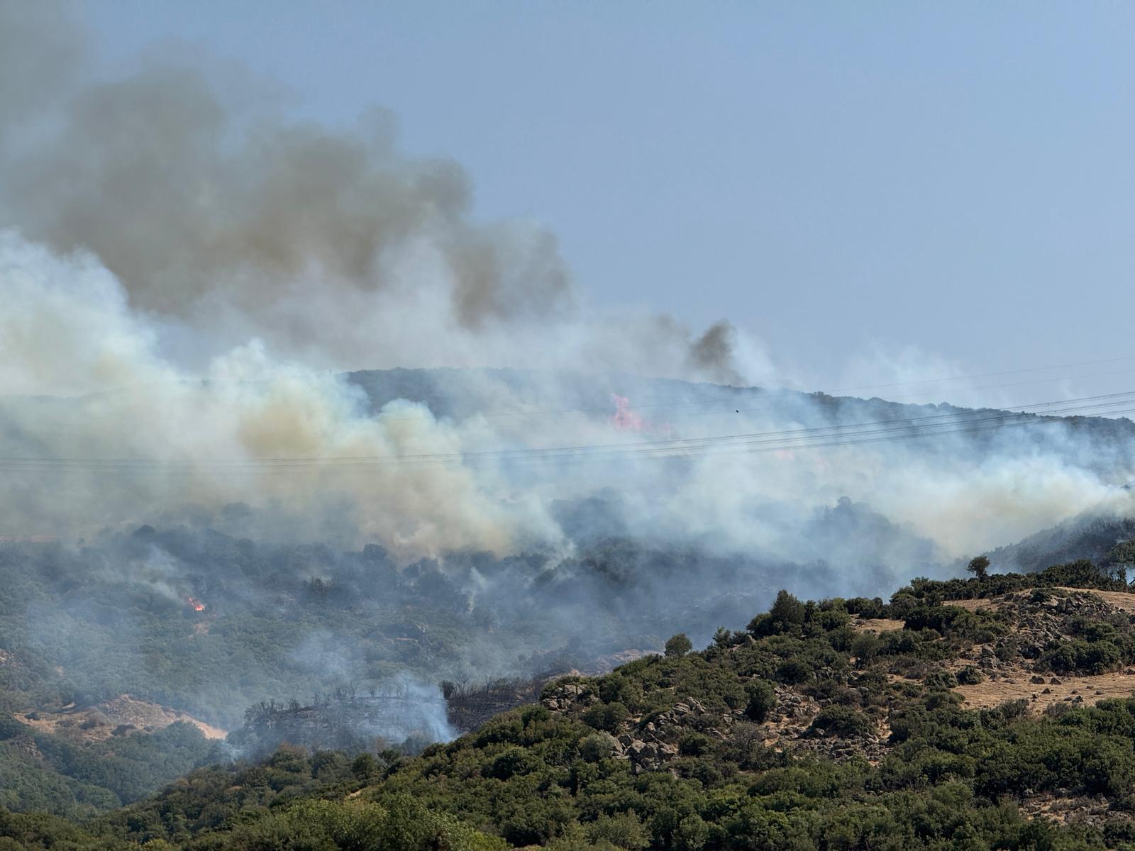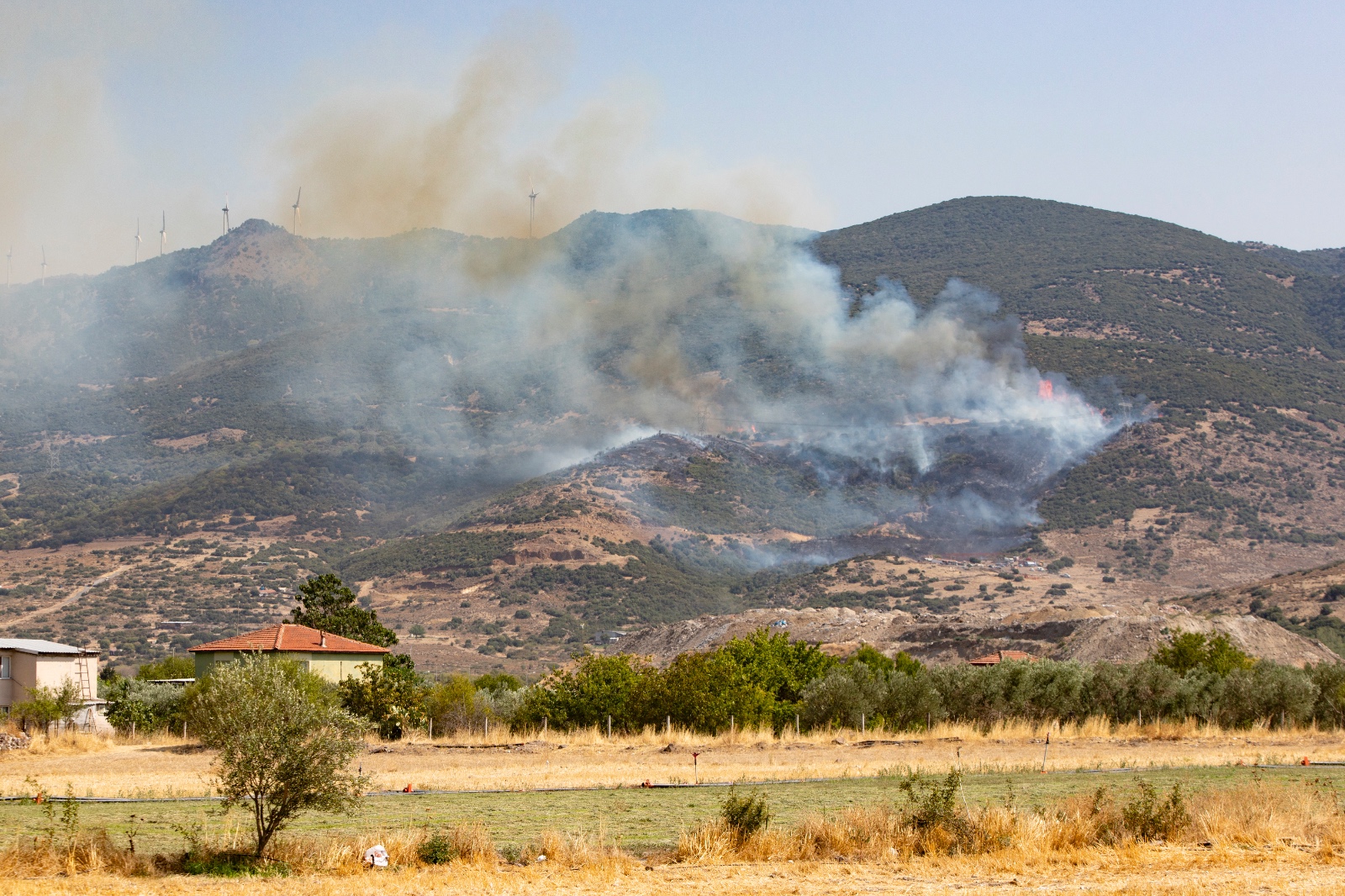 İzmir Aliağa’da çıkan orman yangını, İzmir Büyükşehir Belediyesi İtfaiye Dairesi Başkanlığı ve İzmir Orman Bölge Müdürlüğü ekiplerince havadan ve karadan yoğun müdahale ile kontrol altına alınmaya çalışılıyor. Ekipler, yangının yerleşim alanlarına sıçramaması için alevlerle mücadele ediyor.