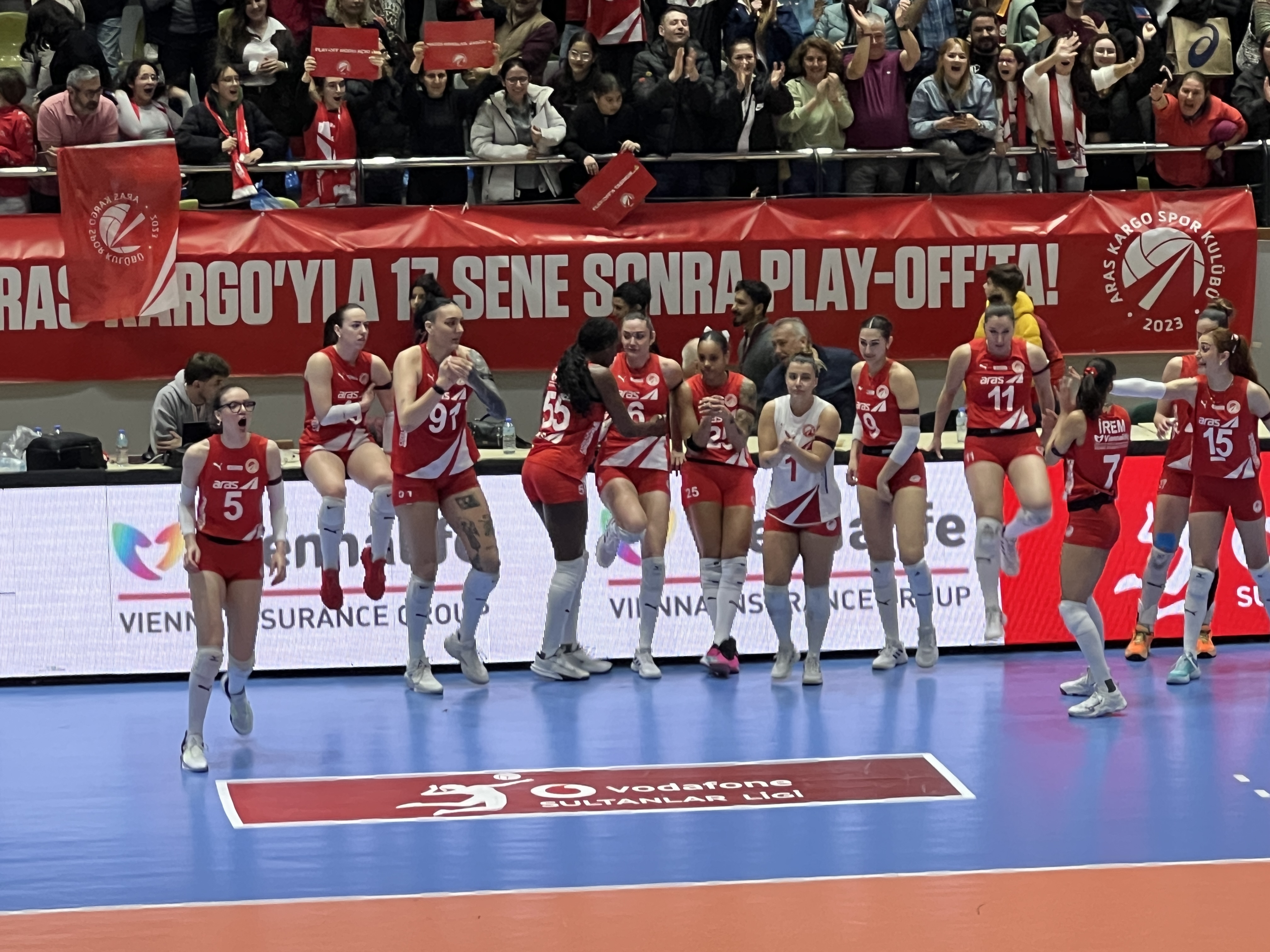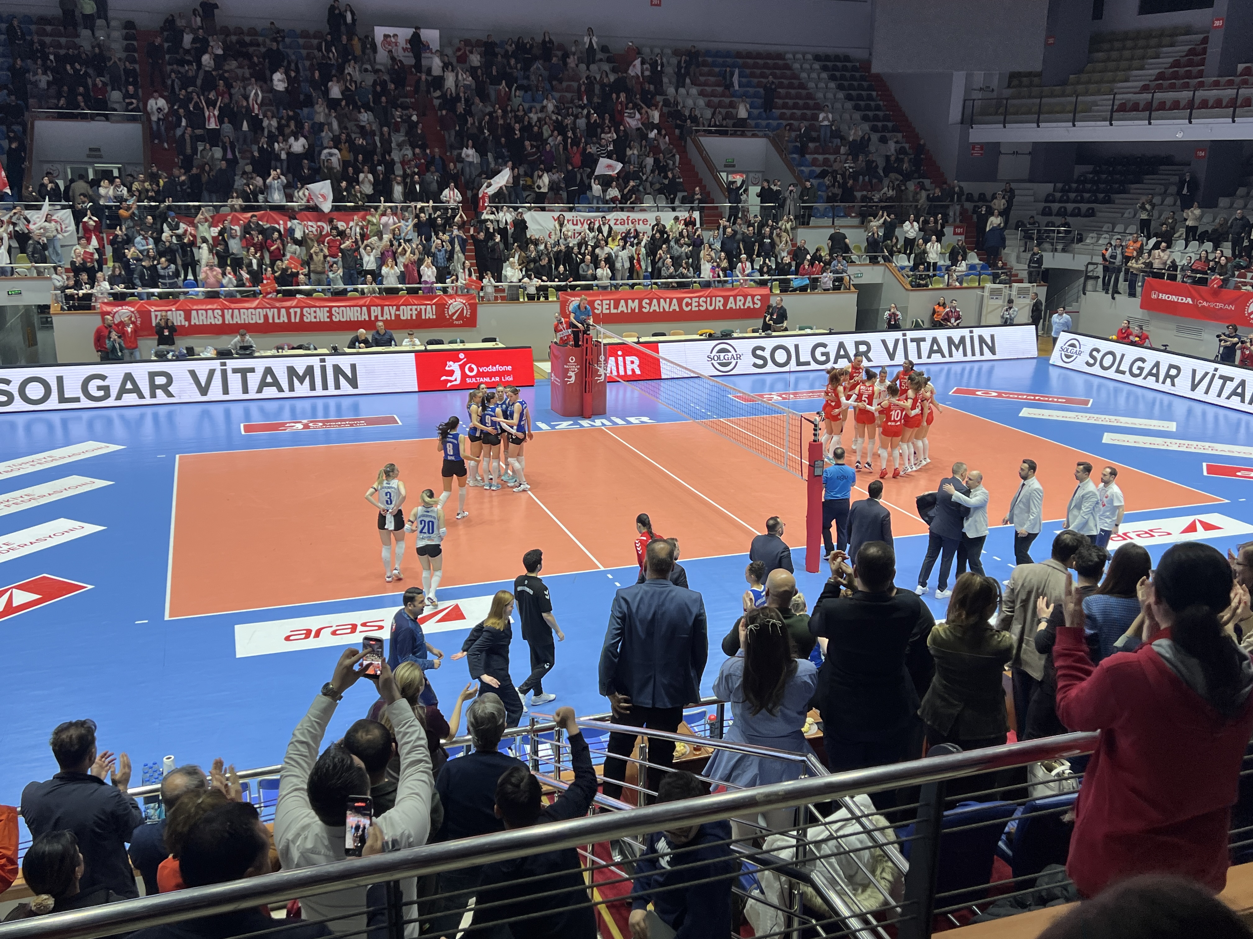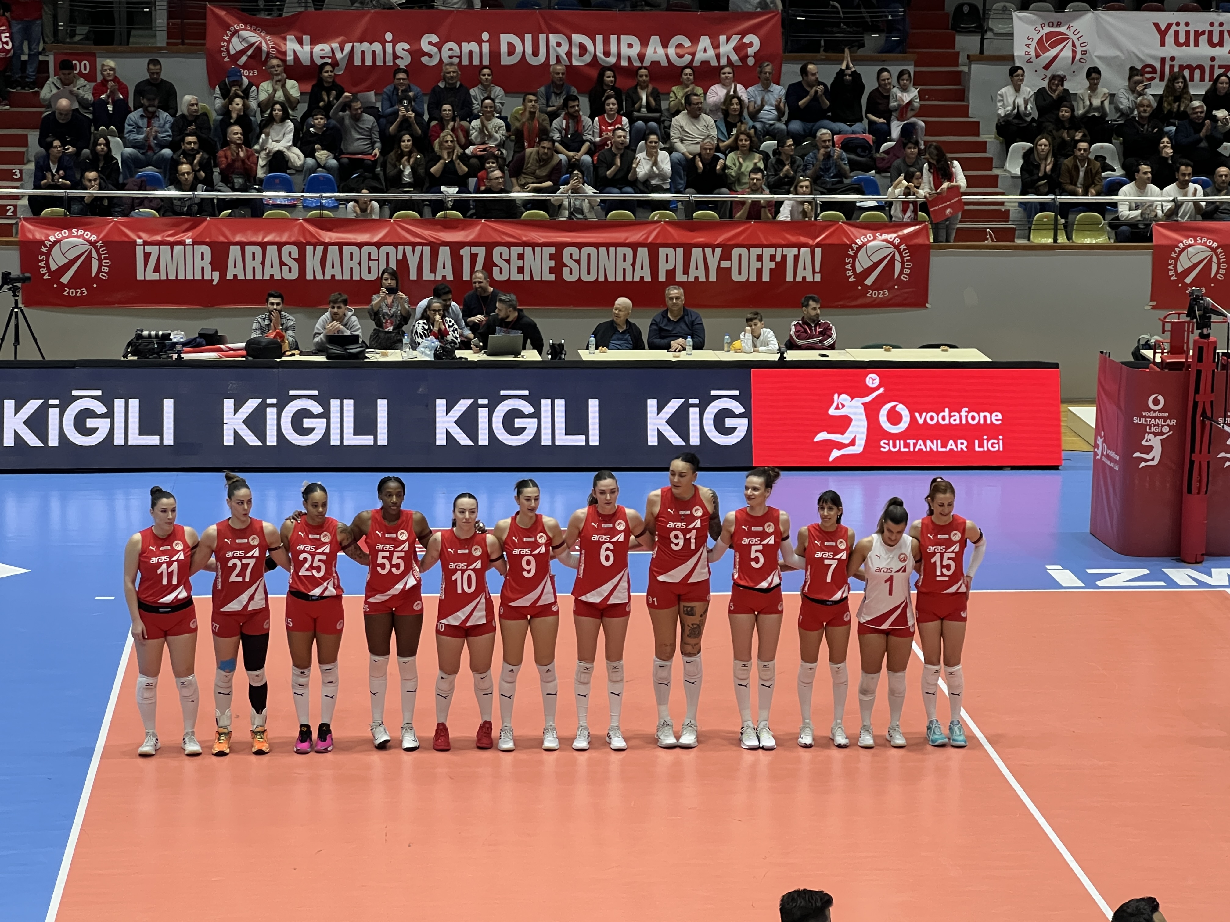HABER: LEVENT HAMURCUOĞLUEGEMENLİK - Aras Kargo Spor Kulübü Kadın Voleybol Takımı ile Nilüfer Belediyespor Eker Kadın Voleybol Takımı 29 Mart 2026 Pazar günü Vodafone Sultanlar Ligi 2025–2026 sezonu play-off karşılaşmasında İzmir Atatürk Voleybol Salonu Vestel Spor Kompleksi’nde karşı karşıya geldi.Aras Kargo, Nilüfer Belediyespor Eker’i 3-1 skorla mağlup ederek önemli bir galibiyete imza attı.Zorlu geçen mücadelede, her iki takımın da büyük bir enerji ve istekle sahaya çıkmasıyla başladı. İlk iki set, Aras Kargo'nun etkili hücumlarıyla geçti. Setteki üstün performansları sayesinde Aras Kargo, ilk seti 25-20 kazanarak maça hızlı bir başlangıç yaptı.İkinci sette Nilüfer Belediyespor Eker, durumu dengelemek için yoğun bir çaba sarf etti. Ancak Aras Kargo, blok ve savunma başarısıyla rakibine fırsat tanımadı ve 25-23'lük skorla ikinci seti de kazanarak maçta 2-0 öne geçti.Üçüncü sette Nilüfer Belediyespor, seti 25-19 alarak maçta durumu 2-1'e getirdi. Fakat Aras Kargo, saha avantajını kullanarak moral buldu ve son seti 25-19 kazanarak maçı 3-1'lik skorla tamamladı.KARŞILAŞMANIN SETLERİ1. Set Aras Kargo: 25, Nilüfer Belediyespor Eker: 202. Set Aras Kargo: 25, Nilüfer Belediyespor Eker: 233. Set Aras Kargo: 19, Nilüfer Belediyespor Eker: 254. Set Aras Kargo: 25, Nilüfer Belediyespor Eker: 19Maç sonrası değerlendirmelerde bulunan Aras Kargo Kadın Voleybol Takımı Başantrenörü Suphi Doğancı takımın ortaya koyduğu mücadeleden memnun olduklarını ve galibiyetin, gelecek maçlar için moral kaynağı olacağını vurguladı.Bu sonuçla birlikte Aras Kargo Kadın Voleybol Takımı, ligdeki iddiasını sürdürmeye devam ediyor.Bu seride ikinci maç 12 Nisan 2026 Pazar günü Bursa'da oynanacak. Bu maçı Aras Kargo kazanırsa beşincilik maçında THY- Galatasaray Daikin eşleşmesinin galibi ile karşılaşacak. 2. maçı kazanan Nilüfer Belediyespor Eker olursa 3. maç 14 Nisan 2026 Salı günü yine Bursa'da oynanacak ve maçı kazanan takım 5.’lik maçı oynama hakkı kazanacak.