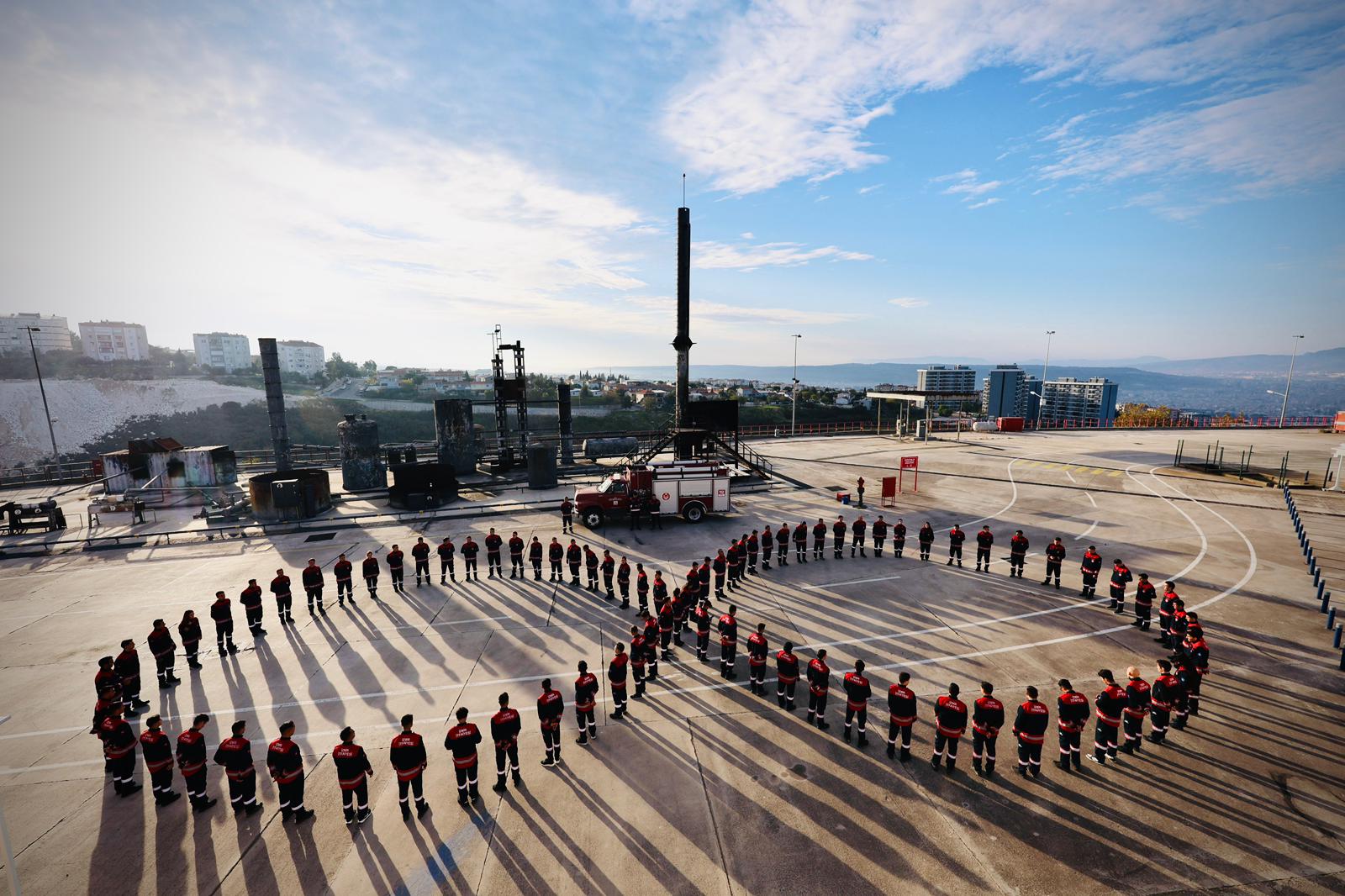 “Türkiye Cumhuriyeti’nin kurucusu Mustafa Kemal Atatürk, ebediyete intikal edişinin 87. yıl dönümünde İzmir Büyükşehir Belediyesi İtfaiyesi tarafından özel bir törenle anıldı. 84 itfaiyeci oluşturdukları sonsuzluk simgesiyle Atatürk’e saygı ve minnetlerini sundu.