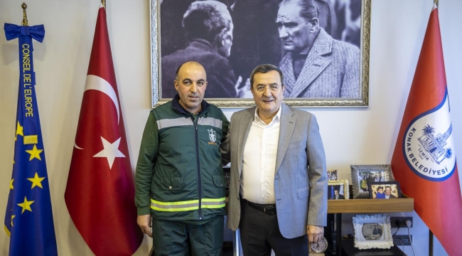 Konak Belediye Başkanı Abdül Batur, 304 Sokak’ta görev yaparken bulduğu cüzdanı sahibine ulaştıran Temizlik İşleri Müdürlüğü personeli Mehmet Hüseyin Söğüt’le bir araya gelerek örnek davranışı nedeniyle tebrik etti. Başkan Batur, 304 Sokak üzerinde temizlik çalışması esnasında içinde Türk Lirası, döviz ve banka kartlarının bulunduğu bir cüzdan bularak, sahibine ulaştırmak için amirlerini ve emniyeti bilgilendiren, daha sonra da cüzdanı sahibine teslim eden Söğüt’le gurur duyduklarını belirtti. Konak Belediyesi emekçilerinin her zaman duyarlı olduğuna ve Konak’a hizmet üretirken iş ahlakıyla dürüstlüğü ön planda tutarak çalıştığına vurgu yapan Başkan Batur Söğüt’ü altınla ödüllendirdi. Örnek davranışından dolayı teşekkür etti ve şunları söyledi: