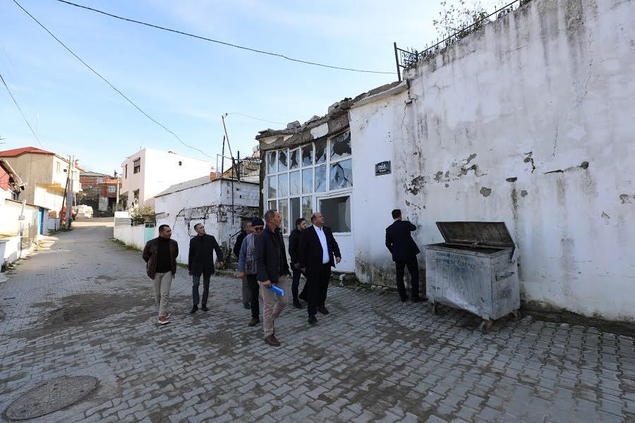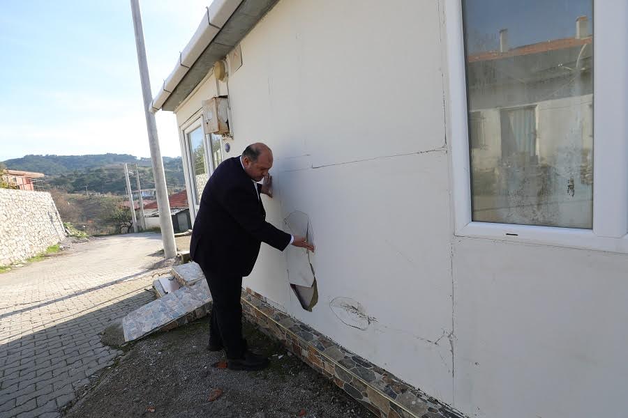 EGEMENLİK - Menderes Belediye Başkanı İlkay Çiçek, yakın zamanda gerçekleşen afetten etkilenen Efemçukuru Mahallesi’ne ziyarette bulundu. Başkan Çiçek, Mahalle Muhtarı Mustafa Özdemir ile görüşerek alınan hasarla ilgili bilgi aldı. Birim müdürlerini de yanına alarak incelemeler yapan Çiçek, minaresi yıkılan ve büyük hasar gören cami ve cami yerleşkesinde tespitler yaparak gerekli talimatları verdi. Görüşmelerin bir an önce yapılıp izinlerin alınacağını ve izin verilmesi halinde çalışmaların bir an önce başlatılacağını belirtti.