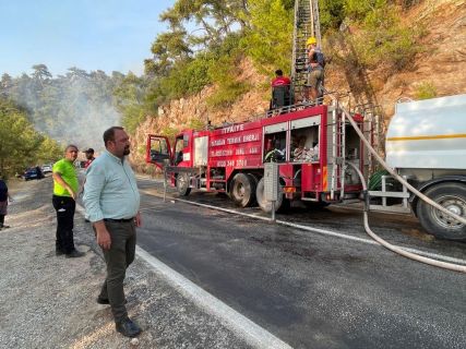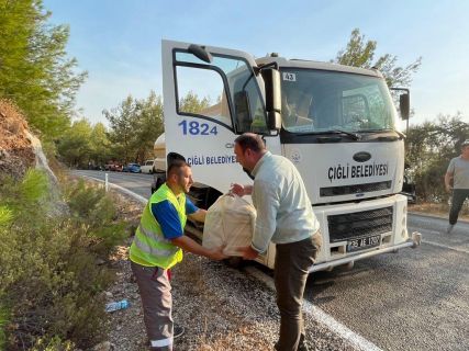 Son bir haftada farklı şehirlerde meydana gelen orman yangınlarıyla mücadele devam ederken, Çiğli Belediyesi de yangın söndürme ve yangıdan etkilenen bölgelerde yapılan çalışmalara desteklerini sürdürüyor. Çiğli Belediye Arama Kurtarma Ekibini (ÇAK), söndürme, soğutma ve lojistik destek çalışmalarında bulunmaları amacıyla Manavgat’a, Arazöz ekibini ise Marmaris’e gönderen Çiğli Belediye Başkanı Utku Gümrükçü, Marmaris’e giderek çalışmaları yerinde inceledi. Arazöz ekibiyle birlikte soğutma ve söndürme çalışmalarına katıldı.