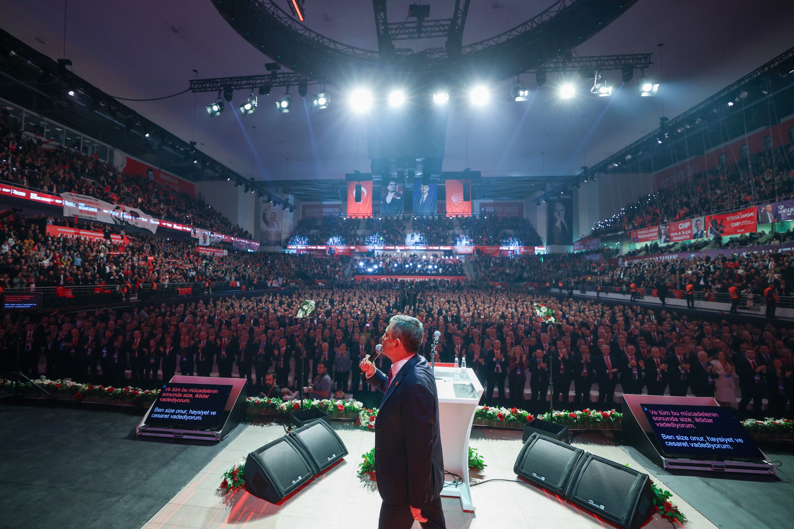 “Tarihi kurultay”Genel Başkan Özel’i yürekten kutladığını dile getiren Başkan Tugay, “Ben onun liderliğine inanarak değişim kurultayında onun yanında yer almış kişilerden biriyim. O günden bugüne bütün zorluklara rağmen cesaretinden, kararlılığından ödün vermeden devamlı doğruyu ve daha iyiyi arayarak bu noktaya geldi. Bugünkü kurultayda yaptığı konuşma, bence zirve noktalarından birisi. Konuşmasının her bir bölümünü tekrar tekrar dinlemek lazım. Çok önemli mesajlar vardı. Bütün topluma verdiği mesajlar vardı. Bunun üzerine bence herkes düşünmeli, tartışmalı. Hangi mücadelede ne zaman ayağa kalkacaklar, ne zaman o mücadelenin bir parçası olacaklar, ülkemiz ve halkımız bir karar vermeli. Biz belediye başkanları olarak elimizden gelenin en iyisini yapacağız ama bu sadece belediye hizmetleri ile başarılacak bir süreç değil. Bilinçli bir halk, kararlı bir siyasi irade istiyor. Genel Başkanımızın bugün gösterdiği gibi kararlı bir liderlik istiyor. O nedenle tarihi bir kurultay olduğunu düşünüyorum” sözlerine yer verdi. “Cumhuriyet Halk Partisi, eşitliği vaat ediyor”Çözüm sürecine ilişkin de değerlendirmede bulunan Başkan Tugay, sözlerini şöyle tamamladı: “Genel Başkanımız, ‘Eğer gerçekten böyle bir çözüm yürütecekseniz samimiyet ister’ dedi. Samimiyetsiz bir şey olduğunu görüyoruz aslında. Bazı kişilerin muhatap alınıp bazı kişilerin hapiste ısrarla tutulmaya devam edilmesi, bir taraftan haktan, hukuktan, özgürlükten bahsederken diğer taraftan görevden almalar, kayyumlar, siyasi yasakların devam etmesi, işin geçmişine baktığınız zaman o günlerde yapılan anormal haksızlıklar, ister istemez bu sürecin samimiyetsiz götürüldüğünü düşündürüyor. Bizim bu ülkede tüm vatandaşlara eşit bakan, herkesin hakkının hukukun gözetildiği, bir demokratik hukuk düzenine ihtiyacımız var. Bu, etnik kökeni ne olursa olsun tüm yurttaşlarımız için böyle. İnançlar, din, mezhep üzerinden de bir ayrım yapılamaz. Cumhuriyet Halk Partisi bu eşitliği vaat ediyor. Genel Başkanımız da Cumhuriyet Halk Partisi’nin başından beri bu çizgide olduğunu, çizgisini değiştirmeden sürdürdüğünü, bu sürece de doğru katkı vermeye hazır olduğunu, çözüm yerinin belki Meclis olduğunu, doğru kişilerle diyalog olduğunu, eğer samimi olunursa sürecin içinde yer alacağımızı söyledi. Hepimiz de aynı fikirdeyiz.”“Yersiz ve haksız buluyorum”CHP’nin bir önceki Genel Başkanı Kemal Kılıçdaroğlu’nun “arınma” çağrısına da değinen Tugay, “Gerçekten çok yanlış ve haksız bir değerlendirme olarak düşünüyorum. CHP’yi sanki içindeki yanlışları barındırmaya çalışıyormuş gibi, onları önemsemiyormuş gibi göstermek çok büyük haksızlık. Biz böyle bir parti değiliz. Mansur Yavaş da dahil birçok belediye başkanının çalışma şartlarını ve içinde bulunduğu durumu yakından bilen bir arkadaşları olarak bunu söyleyebilirim. Bizim böyle 'arınmanız lazım' gibi bir söyleme ihtiyacımız yok. Ülkemizi ve belediyelerimizi bu duruma düşüren iktidarı eleştirmeye ihtiyacımız var. Bu ülkeye gerçek bir demokrasi rejimini, adaleti, eşitlikçi anlayışa sahip bir yönetimi getirmemiz lazım. Asıl mücadele alanı budur. Herkesin ne konuşacaksa CHP’yi zayıflatmak değil de güçlendirmek için konuşması lazım. Ben çok yersiz ve haksız buluyorum” dedi.“Çok çalışacağız”Türkiye’nin içinde bulunduğu durumun kabul edilemez olduğunu ifade eden Başkan Tugay, “Demokrasi, hukuk, adalet mücadelesi. Ülkemizi layık olduğu refah düzeyine getirme mücadelesi. CHP kadrolarının tamamı çok çalışacak” şeklinde konuştu.