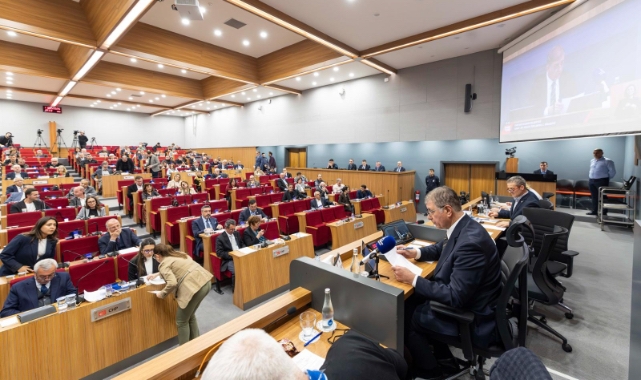 EGEMENLİK - İzmir Büyükşehir Belediyesi Meclisi’nin şubat ayı olağan toplantılarının ikinci birleşimi, İzmir Büyükşehir Belediye Başkanı Dr. Cemil Tugay başkanlığında yapıldı. Kentte yaşanan sel felaketi nedeniyle vatandaşların ev, iş yeri, arazi, ahır, zeytinlik, bahçe ve benzeri taşınmazları ile taşınır mallarında meydana gelen zararlar üzerine Afet Yardım Komisyonu kurulması önergesi gündeme alındı. Önerge, doğrudan oylanarak oy birliğiyle kabul edildi. Karar kapsamında, selden etkilenen tüm vatandaşlara gerekli desteğin sağlanması amacıyla bir komisyon oluşturulacak. Başkan Cemil Tugay’ın başkanlığını yürüteceği komisyon, maddi, ayni, lojistik ve beşerî yardımların sağlanması konusunda tam yetkili olacak. Komisyonun görev süresi, 29 Ocak itibarıyla başlayan ve 2026 yılı boyunca meydana gelebilecek doğal afetleri kapsayacak şekilde belirlenecek.Basmane arazisine 84 metre sınırıMeclis gündeminde yer alan, kamuoyunda Basmane Çukuru olarak bilinen 1039 ada 8 parsele ilişkin 1/1000 ölçekli Uygulama İmar Planı Değişikliği ve Plan Notu Değişikliği maddesi oy birliğiyle kabul edildi. Kararla birlikte, alanda daha önce “serbest” olan yapı yüksekliği 84 metre ile sınırlandırıldı.