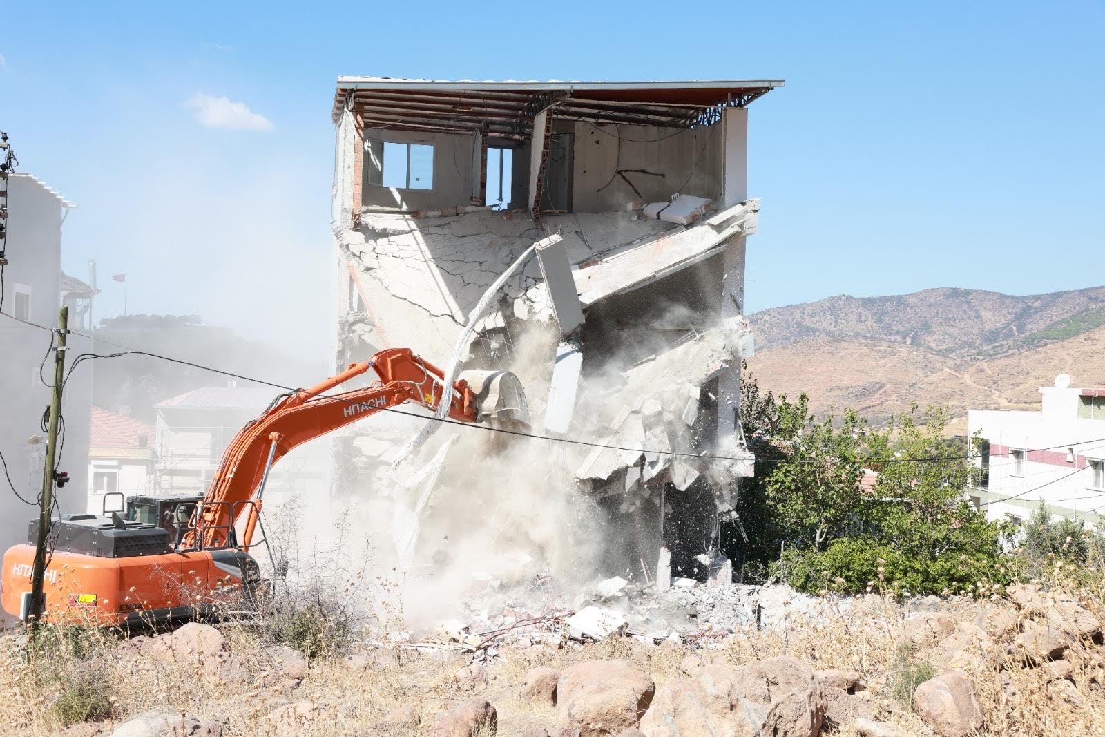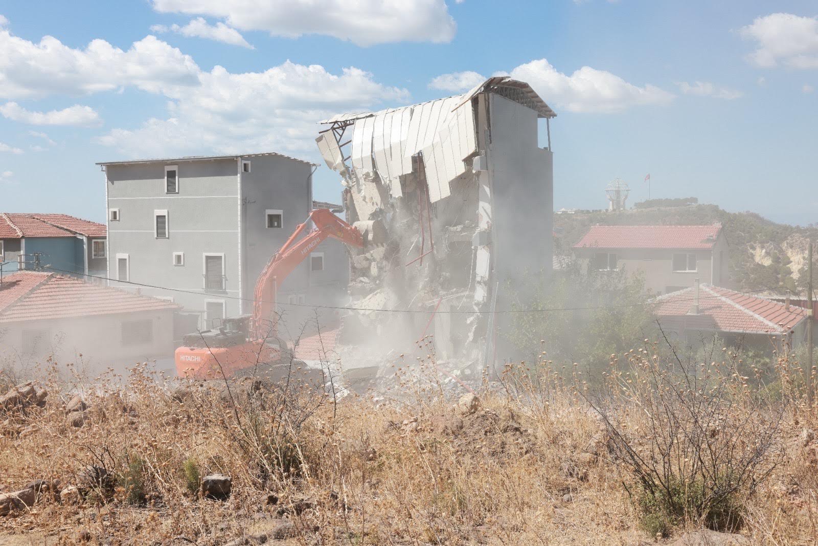 EGEMENLİK - Bayraklı Doğançay Mahallesi'nde imar mevzuatına aykırı olarak inşa edilen 5 katlı kaçak bina, Bayraklı Belediyesi Yapı Kontrol Müdürlüğü ekipleri tarafından yıkıldı. Yıkım, yasal süreçlerin tamamlanmasının ve güvenlik önlemlerinin alınmasının ardından gerçekleştirildi. Bayraklı Belediye Başkanı İrfan Önal, “İlçemizde imar kanunlarına aykırılıkları tespit ettiğimiz kaçak yapıları belirliyor; önce uyarılarda bulunuyor, ardından ceza yazıyor ve daha sonra yıkımlarını gerçekleştiriyoruz” dedi.
