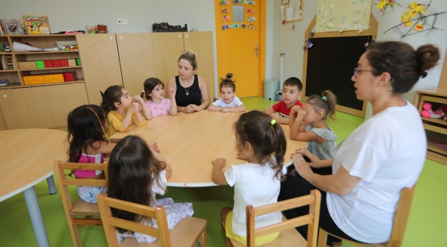 Okul öncesi eğitim çalışmalarında örnek adımlar atan Bayraklı Belediyesinin Ayda Bebek ve Elif Bebek anaokullarında yeni sezon başladı. İlk eğitim günü, öğrenciler ve velileri ağırlayan anaokullarında çocukların heyecanı ve mutluluğu görülmeye değerdi. İzmir'in en büyük ve en donanımlı anaokulu Ayda Bebek ve ikinci eğitim yuvası Elif Bebek anaokullarına kayıt olan toplam 263 öğrenci, ilk günden kreşin sosyal ve kültürel aktivitelerinden faydalandı, arkadaşlarıyla keyifli vakit geçirdi. İlk haftayı yarım gün tanıma ve tanışma dersleriyle tamamlayacak öğrenciler, önümüzdeki haftadan itibaren demokratik, katılımcı ve ekolojik ilhamlı eğitim almaya devam edecek.