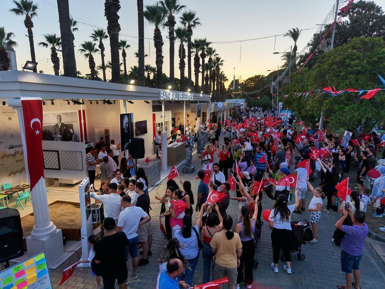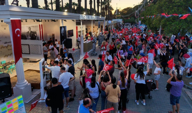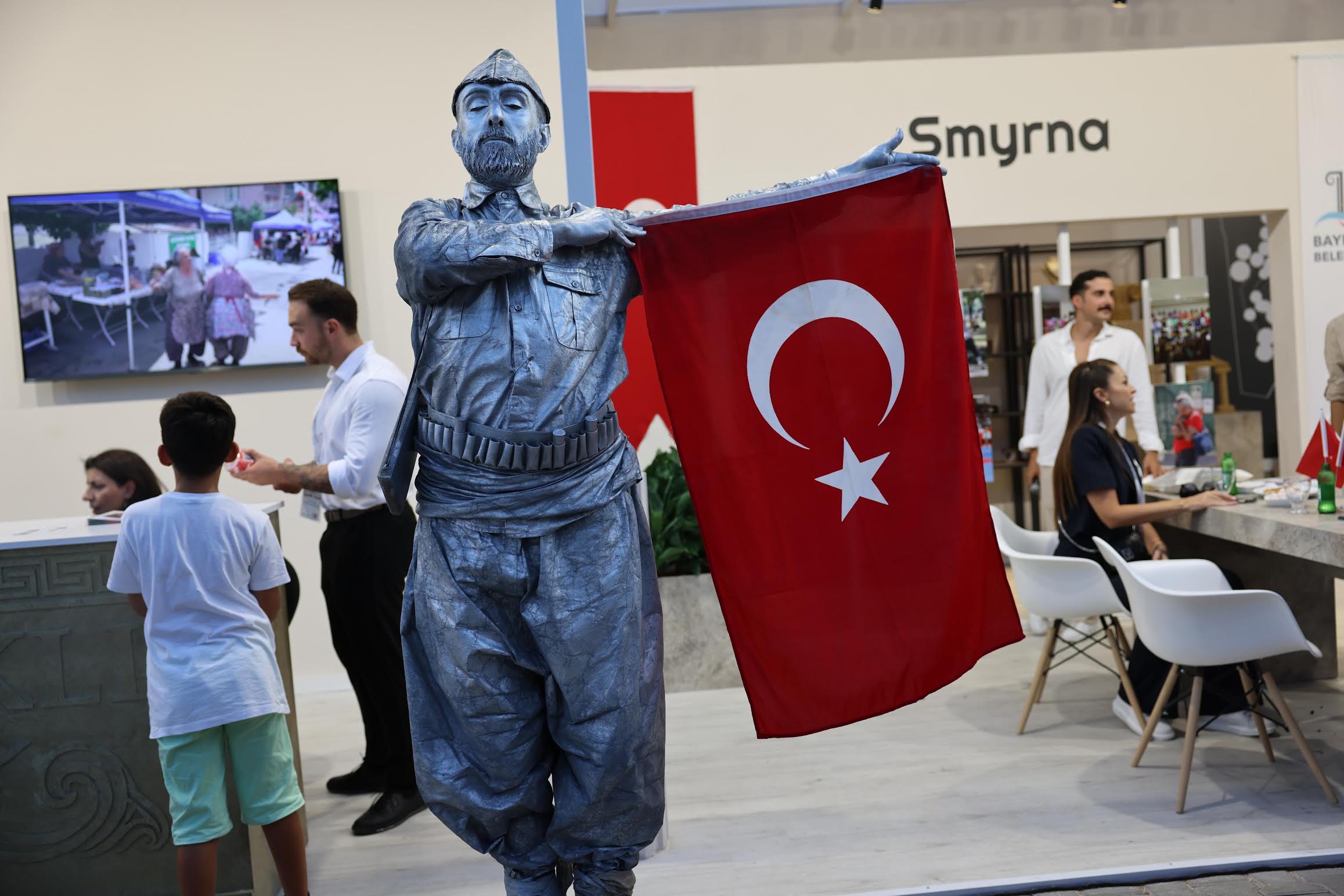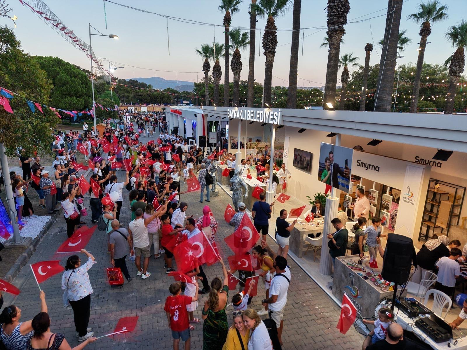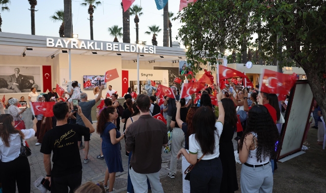 FUARDA BAYRAKLI FARKIÖte yandan, Zafer bayramı, Bayraklı Belediyesinin İzmir Enternasyonal Fuarı’ndaki standında da büyük coşkuyla kutlandı. Soğuk heykellerin performansı, müzik dinletisi, yapay zeka destekli 30 Ağustos fotoğraf çalışması, müzik dinletisi ve halk oyunları gösterileri vatandaşlara unutulmaz anlar yaşattı. Vatandaşlar, stantta dağıtılan Türk bayraklarıyla hep bir ağızdan marşlar okuyarak renkli görüntüler oluşturdu.
