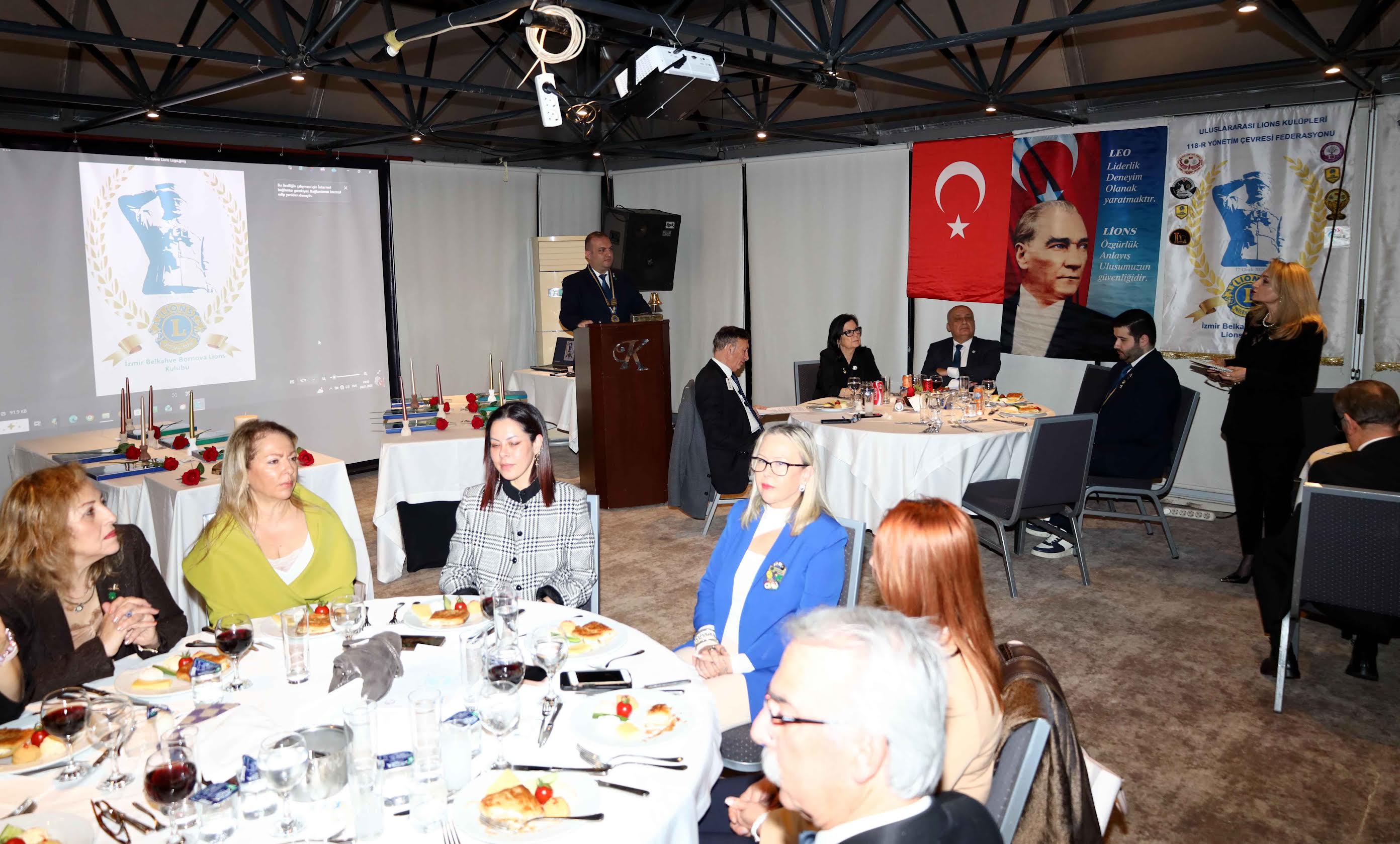 Programın devamında Lions Tören Yönetmenliğini Geçen Dönem Konsey Başkanı Erdal Eminoğlu yaptı. Eminoğlu idaresinde gerçekleşen seremonide, Lion ailesine katılan üyeler, topluma karşılıksız hizmet sözü vererek Lion rozetlerini taktı. Gecenin ikinci yarısında ise Leo Tören Yönetmeni Genel Yönetmen 1. Yardımcısı Tülay Tosun, yeni Leo üyelerin giriş törenini yönetmek üzere sahne aldı. Leo Efecan Cesur’un Atatürk Bilgi konuşması da yaptığı törende, yeni Lion ve Leo üyelerin giriş seremonisi, Lions ritüellerine uygun olarak gerçekleştirildi. Üyelerin takdimi ve yemin töreninin ardından, hizmet bayrağını devralan yeni isimlere rozetleri takıldı. Gecede ayrıca, kulübün geçmiş dönemlerdeki başarılarında emeği geçen üyelere ve dönem sözcülerine teşekkür plaketleri sunuldu.