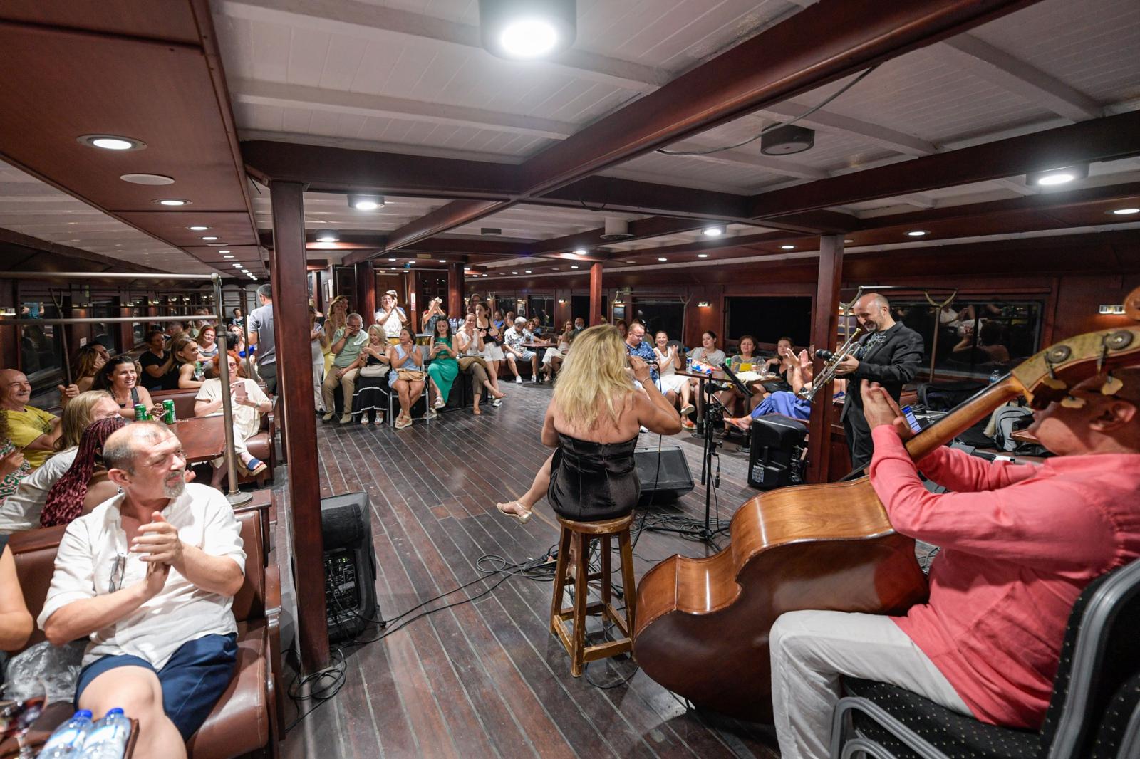“Teşekkür ediyoruz”Etkinlikte keyifli vakit geçirdiğini belirten Filiz Dündar ise, “İzmir Büyükşehir Belediyesi’ne çok teşekkür ediyoruz. Çünkü bu etkinlikler, özlediğimiz etkinlikler. Müziğin hep içindeyim ve İzmir’de caz müzik dinlemeyi çok özlüyordum. Caz, doğaçlama ve kişinin kendini ifade etmesi, kendimiz gibi olmak demek. Caz, bitmeyen bir sanat” ifadelerini kullandı. Biletler kısa sürede tükendiSanatseverler, konser biletlerini kısa sürede tüketti. Organizasyon süresince gemi içinde büfe hizmeti de yer aldı. Şehit Yakınları ve Gazi Kartı sahipleri, Engelli İzmirim Kart sahibi engelli yurttaşlar ve Refakatçi İzmirim Kartı bulunan bir refakatçisi de Caz Gecesi’ne rezervasyon yaptırmak şartıyla ücretsiz katılabildi.