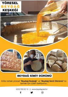 Belediye Başkanı Feridun Yılmazlar ise, katılım sağladıkları bir çok fuarda ve zirvede simit dürümün yoğun ilgi gördüğünü belirterek, bu leziz tattaki “Simit Dürüm”ü tatmak için tüm misafir ve doğaseverleri, tarihin gizli noktalarından beri varlığını koruyan Beydağ’a tarihsel bir geçmişi bulunan bu kadim lezzet simit dürümünü yemeye davet ediyorum dedi.![]()