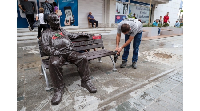 KSK taraftarlarının, Karşıyakalıların ve Karşıyaka’yı ziyaret edenlerin, çarşı yenileme çalışmaları süresince akıbetini merak ettiği Bir Baba Hindi heykeli yerine döndü. Mustafa Baykara’nın heykeli Karşıyaka Çarşıya gelenleri karşılamaya kaldığı yerden devam edecek.
