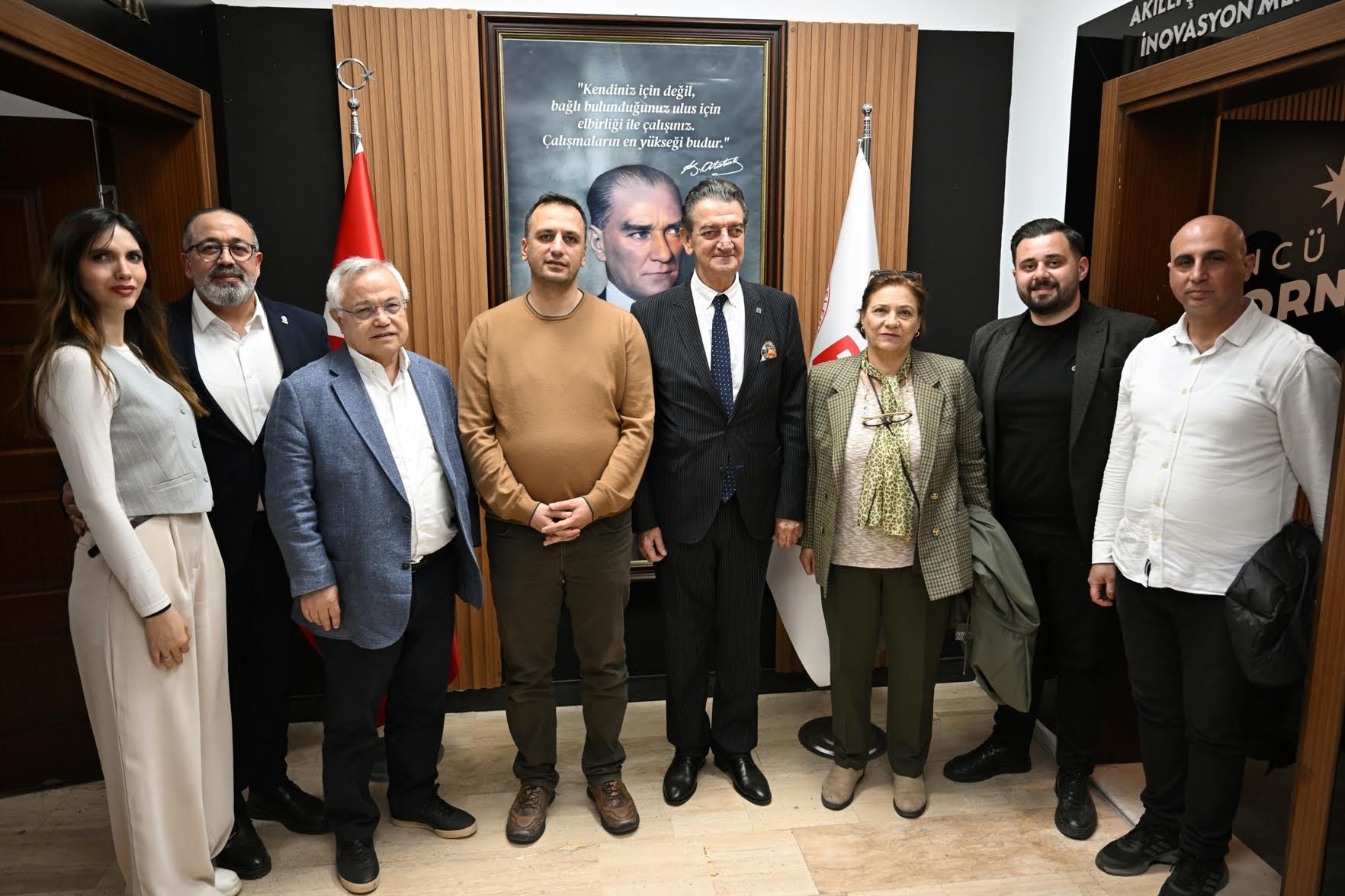 EGEMENLİK - Atatürkçü Düşünce Derneği Başkanı Mustafa Hüsnü Bozkurt ve beraberindeki heyet, Bornova Belediye Başkanı Ömer Eşki’yi ziyaret etti. İş birlikleri ve ortak projelerin değerlendirildiği toplantıda, Cumhuriyet değerlerinin korunması yolunda ortak kararlılık mesajı verdi.