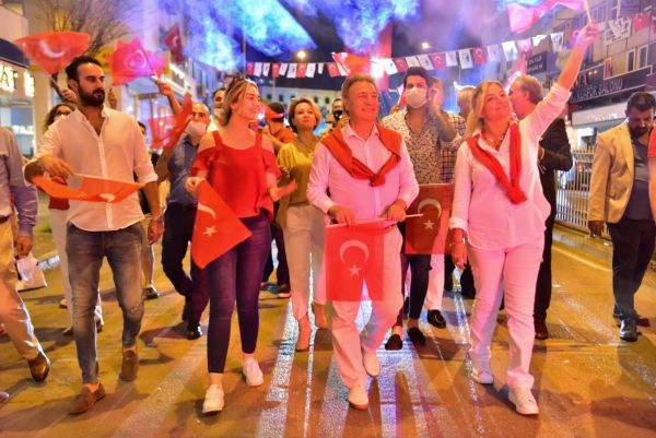 bornova Belediye Başkanı Dr. Mustafa İduğ, Eşi ufuk İduğ ve meclis üyeleri ile birlikte üzeri açık otobüs ve klasik otomobillerden oluşan konvoyla vatandaşları selamladı, bayramlarını kutladı. 19 Mayıs’ın 101. yıl coşkusu Atatürk Mahallesi’nden Çamdibi’ne, Pınarbaşı’ndan Işıkkent’ten, Doğanlar’dan Evka-3 tüm ilçeye yayıldı. Saatler 19.19’u gösterdiğinde araçlardan inilerek, Atatürk ve silah arkadaşları anısına bir dakikalık saygı duruşunda bulunuldu ve İstiklal Marşı okundu. Bornovalıların marşlara ellerindeki Ayyıldızlı bayraklar ve Atatürk posterleri ile balkonlarından eşlik ettiği kent turu, Belediye Bandosu eşliğinde Mustafa Kemal Caddesi’nde devam etti. Bornova’daki sevgi seline CHP İzmir Milletvekili Atilla Sertel de balkonundan katıldı. Bornova Cumhuriyet Meydanı’nda başlayıp, Çevre Yolu Bornova Viyadükleri’nde son bulan yürüyüşte meşaleler yakıldı, marşlar yine hep bir ağızdan söylendi.