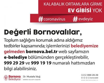 Sağlığın herşeyden önce geldiğini belirten Bornova Belediye Başkanı Dr. Mustafa İduğ, pandeminin başından bu yana pek çok hizmet ve eğitimi internet üzerinden verdiklerini hatırlatarak, “Resmi Gazete’de yayınlanan yasaya göre emlak vergisi, çevre temizlik vergisi, ilan ve reklam vergisi, eğlence ile katı atık vergisi gibi belediye alacakları yapılandırma kapsamına alındı. Bu alarlarda vergi borcu olan vatandaşlarımız yapılandırma işlemlerini belediyeye gelmeden online yapabildikleri gibi yeni sistem ile canlı destek hattı üzerinden de gerçekleştirebilecek. Dijitalleşme ve uzaktan erişim hem çağımızın gereği hem de pandemiden doğan bir ihtiyaç. Bornova Belediyesi de bu alanda gerekeni yaparak dijitalleşiyor” dedi.