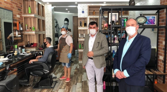 Buca Esnaf ve Sanatkarlar Odası Başkanı turan yazgan ile oda yöneticileri, ilçedeki berber-kuaför ve güzellik salonu işletmecilerini ziyaret ederek hijyen kitlerini dağıttılar.