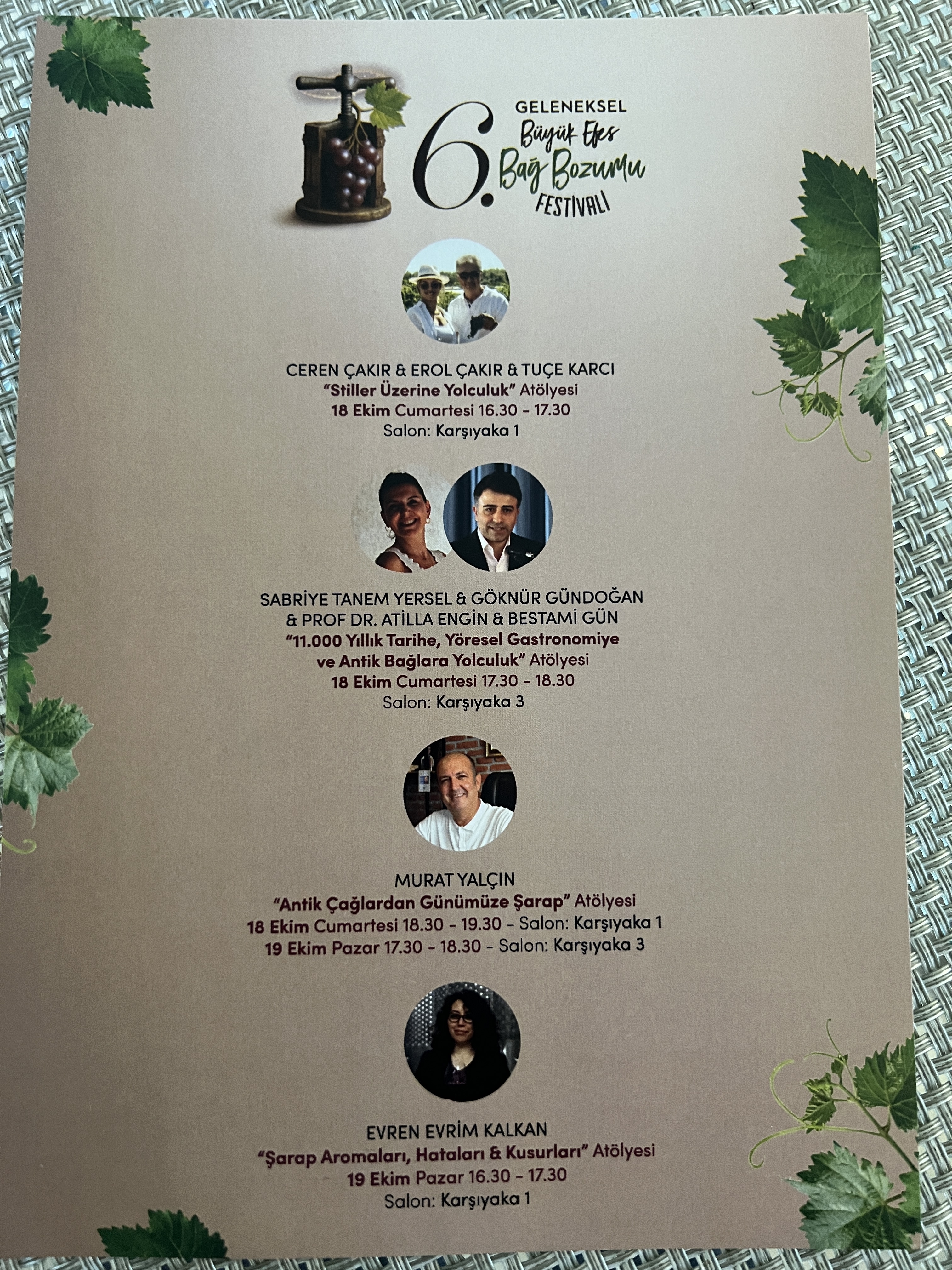 Sabriya Tanem Yersel, Göknur Gündoğan, Prof. Dr. Atilla Engin ve Bestami Gün "11 bin yıllık tarihe, yöresel gastronomiye ve antik bağlara yolculuk" atölyesinde anlattı.