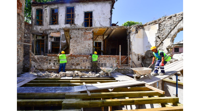 İzmir Büyükşehir Belediyesi’nin Konak-Kadifekale aksındaki düzenleme çalışmaları devam ediyor. Kentin kültürel ve tarihi zenginliğini oluşturan eski yapıların korunması, gelecek kuşaklara aktarılması ve turizme kazandırılması için harekete geçen Büyükşehir Belediyesi, Basmane Pazaryeri Mahallesi’nde aralarında Tevfik Paşa Konağı ve ünlü yazar Tarık Dursun K’nın bir süre yaşadığı ev olmak üzere tarihi 6 yapının restorasyonunun yüzde 35’ini tamamladı. Yapı İşleri Dairesi Başkanlığı’nın 2024 yılında tamamlayacağı Oteller Projesi kapsamındaki restorasyon çalışmaları 31 milyon 880 bin liraya mal oluyor.Konaklamaya ve günübirlik geziye açılacakBasmane bölgesindeki Pazaryeri Mahallesi’nde 19’uncu yüzyıl geleneksel İzmir evlerinin birbirinden farklı örneklerinin karşılıklı konumlandığı tarihi sokağı canlandırdıklarını dile getiren Yapı İşleri Dairesi Başkanı Murat Yenigül “Gevrekçi Kız Sokağı olarak da anılan 945 sokakta yer alan Osmanlı dönemi sivil mimari örneklerinden 6 tarihi yapı, restorasyon ve rekonstrüksiyon uygulamaları sonunda yeniden ayağa kalkacak. Basmane bölgesinin en büyük tarihi sivil mimari örneklerinden olan Tevfik Paşa Konağı’nın da bu proje kapsamında restorasyonu yapılacak ve günümüz ihtiyaçlarına göre işlevlendirilen bu eserler konaklama, kafe ve restoran olarak halka hizmet edecek” dedi.Tarih gün yüzüne çıkıyorTarihi Yapılar Şube Müdürlüğü’nde görevli mimar Dilara Yöndem Kayan ise “Yapıların statik taşıyıcılığını yitirmiş kısımlarını söküp özgün dokuyu esas alarak onaylı projesine göre imalatını yapıyoruz. Temel güçlendirmelerimizi yaptık. Ahşap karkasları da yenileyerek binaları ayağa kaldıracağız. Proje tamamlandığında kafe, restoran, otel ve meydan olarak İzmirlilerin kullanımına sunulacak” şekline konuştu.