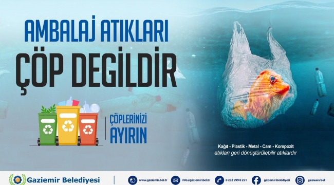 Gaziemir Belediyesi, Dünya Çevre Günü ve Çevre Koruma Haftası’nda dünyada yaşanan çevre sorunlarına dikkat çekmek amacıyla özel bir çalışmaya imza attı. Belediye, Dünya Çevre Günü ve Çevre Koruma Haftası’nda hazırladığı görselleri ilan panolarına asarak çevre konusunda vatandaşları duyarlı olmaya davet etti. “Gelecek için sıfır atık” sloganının yer aldığı görsellerde doğaya bırakılan atıkların çevreye verdiği zarara ve bu atıkların doğada uzun yıllar boyunca yok olmadığına vurgu yapıldı. Afişlerde 1 litre atık yağın 1 milyon litre suyu kirlettiği, 1 plastik şişenin doğada bin yılda çözündüğü, 5 floresan lambanın bir ailenin bir ayda tükettiği kadar suyu kirlettiği, doğaya atılan camların orman yangınlarına yol açtığı ve ambalaj atıklarının çöp olmadığı bilgisi paylaşıldı. Kâğıt, kompozit, plastik, cam ve metal atıkların geri dönüştürülebileceğine vurgu yapılan görsellerle vatandaşlara “çöplerinizi ayrıştırın” mesajı verildi.