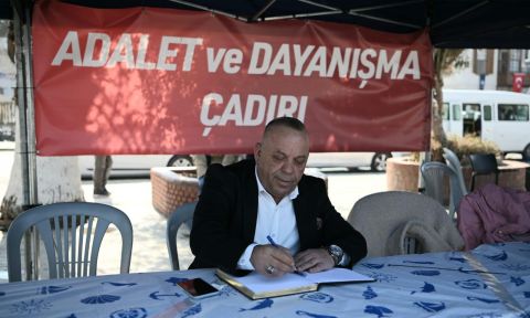 EGEMENLİK - Kuşadası Belediye Başkanı Ömer Günel, dün sabah saatlerinde İstanbul’da düzenlenen bir ‘kumpas’ operasyonuyla gözaltına alındı. Başkan Ömer Günel’in gözaltına alınması Aydın ve Kuşadası’nda büyük tepki topladı. Bu kapsamda CHP’li Milletvekilleri, belediye başkanları ve Kuşadalılar, Başkan Ömer Günel’in uğradığı hukuksuzluğa karşı kenetlendi. CHP Kuşadası İlçe Örgütü de İsmail Cem Dostluk ve Barış Meydanı’na ‘Adalet ve Dayanışma’ çadırı kurup, ‘demokrasi nöbeti’ tutmaya başladı. Tutulan ilk demokrasi nöbetine CHP Aydın İl Örgütü Başkanı Hikmet Saatçı, CHP Kuşadası İlçe Örgütü Başkanı Mehmet Gürbilek ve parti yöneticileri, CHP Aydın Milletvekilleri Evrim Karakoz ve Süleyman Bülbül, CHP Didim İlçe Örgütü üyeleri, Kuşadası Belediye Başkan Vekili Nihal Güler, belediye meclis üyeleri ve Bozdoğan Belediye Başkanı Galip Özer katıldı.