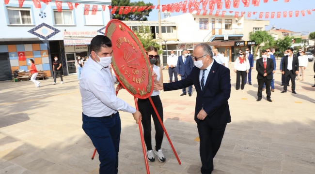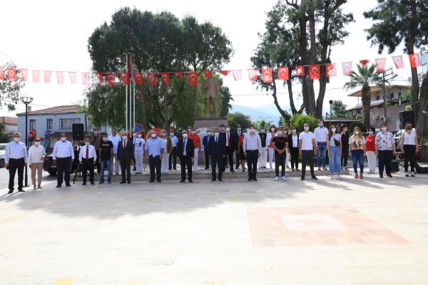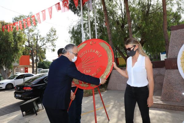 Cumhuriyet Halk Partisi Güzelbahçe İlçe Başkanı Çağlayan Bilgen, ilçe yöneticileri, belediye Başkanı Mustafa İnce ve bir grup meclis üyesiyle birlikte “Sosyal mesafe kuralları” na uyarak resmi törenin ardından parti çelengini Atatürk Anıtı’na sundu.