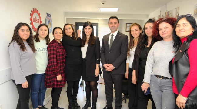 CHP Bayraklı Belediye Başkan adayı İrfan Önal, sivil toplum kuruluşları ve sendikalarla buluşmalarını sürdürüyor. Bayraklı Belediyesi’nde örgütlü olan Devrimci İşçi Sendikaları Konfederasyonu (DİSK) 6 No’lu Şubesi’ni ziyaret etti. Ziyarette İrfan Önal’a DİSK Ege Bölge Temsilcisi Memiş Sarı, DİSK 6 No’lu Şube Başkanı Değer Yıldız da eşlik etti.