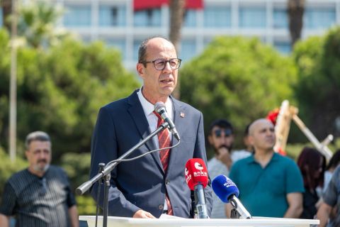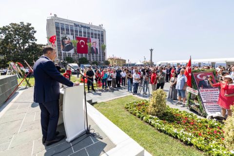 “Bu bir seçim kazanma değil, bir ülkeye sahip çıkma mücadelesidir” Gazi Mustafa Kemal Atatürk’ün Türkiye Cumhuriyeti’ni kurarken devletin “kimsesizlerin kimsesi” olduğu mesajını hatırlatan Başkan Tugay, “Bugünden tezi yok, her ne yapacaksak bu millet için yapacağız. O mavi gözlü güzel insan, bizim yaşamımız boyunca önderimiz olmuş, bundan sonra da her zaman liderimiz olacak. Lafla söylenmiş değil, iliklerimize kadar, son hücremize kadar, hissederek bu görevi yerine getireceğiz. O mücadelenin devamını getireceğiz. Bu bir seçim kazanma değil, bir ülkeye sahip çıkma mücadelesidir. Bundan asla erinmeyeceğiz. Asla geri adım atmayacağız. Bizi bölmek isteyen, aramıza nifak sokmak isteyenlere inat daha fazla birlikte olacağız” dedi.