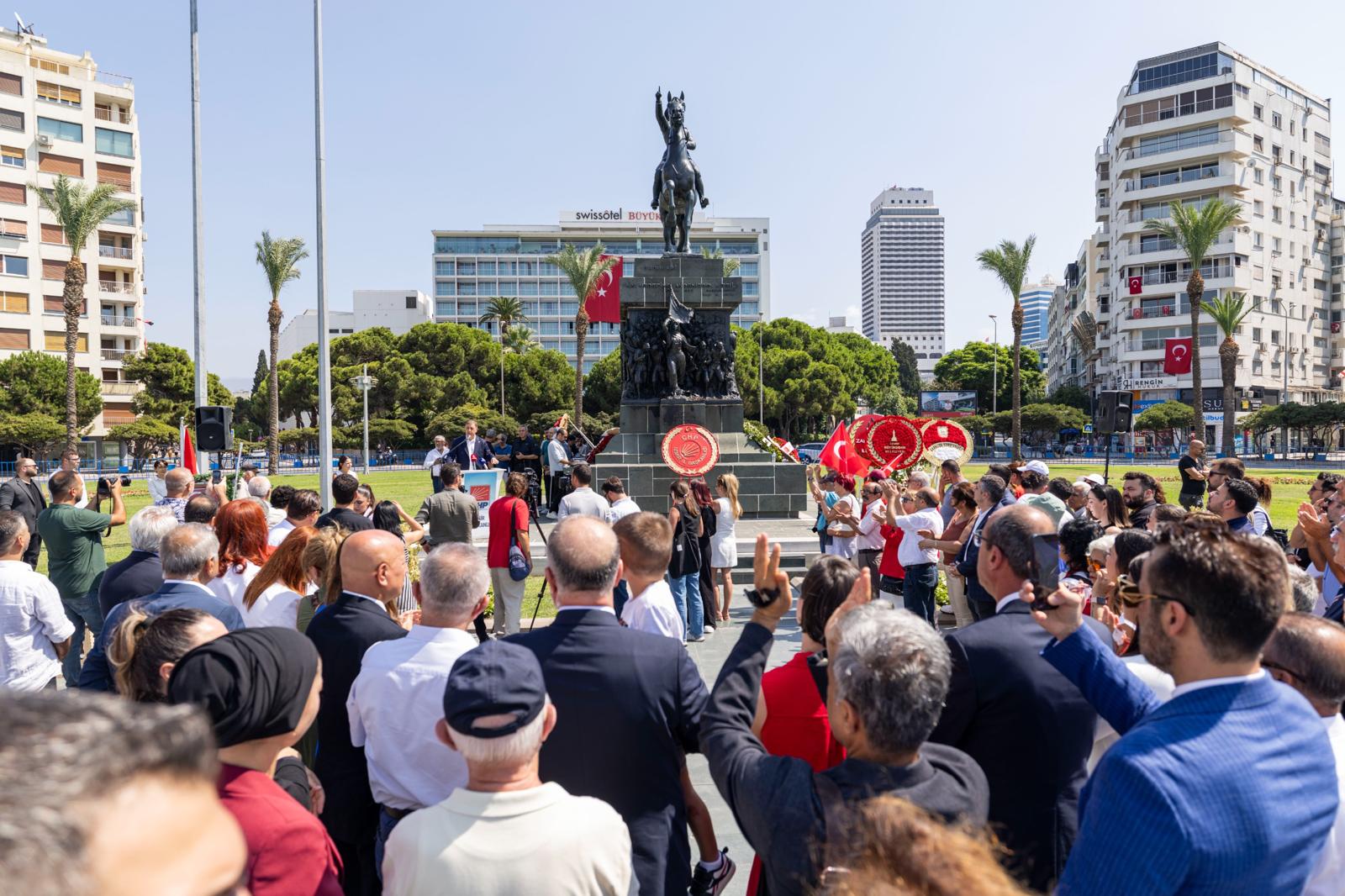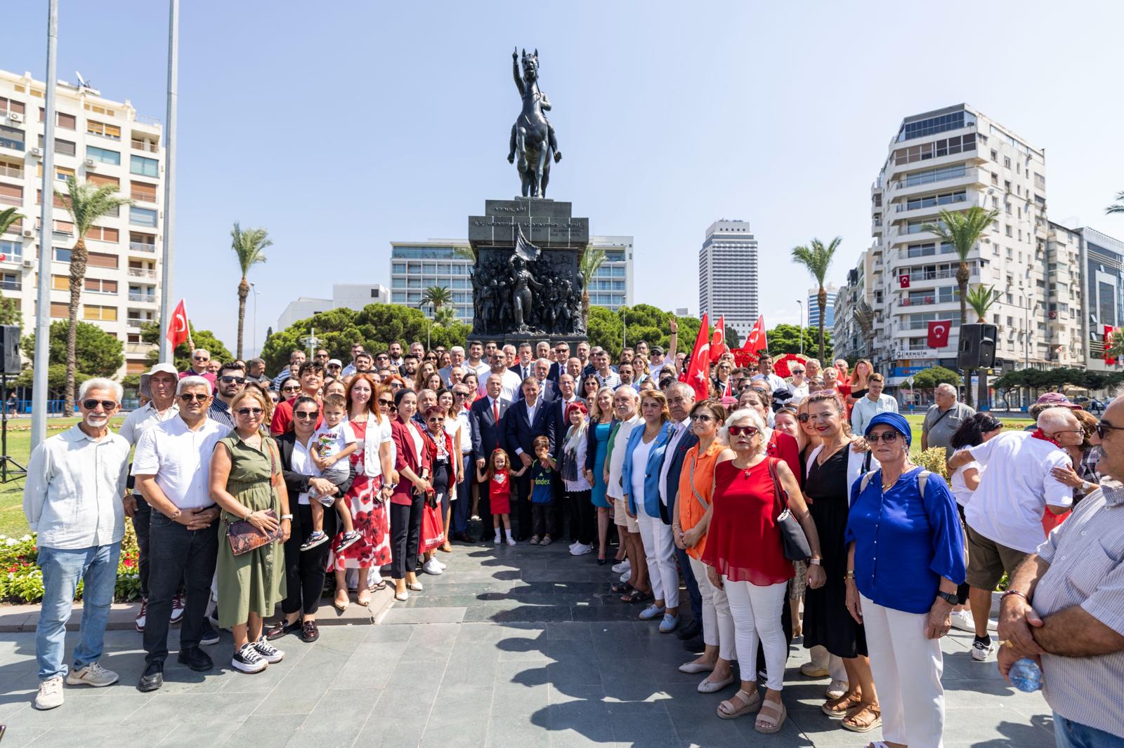 EGEMENLİK - 30 Ağustos Zafer Bayramı kutlamaları tüm coşkusuyla İzmir’de kutlanmaya devam ediyor. İzmir Büyükşehir Belediye Başkanı Dr. Cemil Tugay, Cumhuriyet Halk Partisi İzmir İl Başkanlığı tarafından Cumhuriyet Meydanı’nda düzenlenen çelenk törenine katıldı. Törene Başkan Dr. Cemil Tugay’ın yanı sıra CHP İzmir İl Sekreteri Tevfik Türk, geçmiş dönem CHP İzmir milletvekilleri Musa Çam ve Mustafa Moroğlu, ilçe belediye başkanları, il ve ilçe yöneticileri, meclis üyeleri ve çok sayıda partili katıldı. Törende CHP İl Sekreteri Tevfik Türk, CHP İzmir İl Kadın Kolları Başkanı Zahide Kurun, CHP İzmir İl Gençlik Kolları Başkanı Ruhsar Selis Çelik Kınacı, meydandaki Atatürk Anıtı’na çelenk bıraktı.
