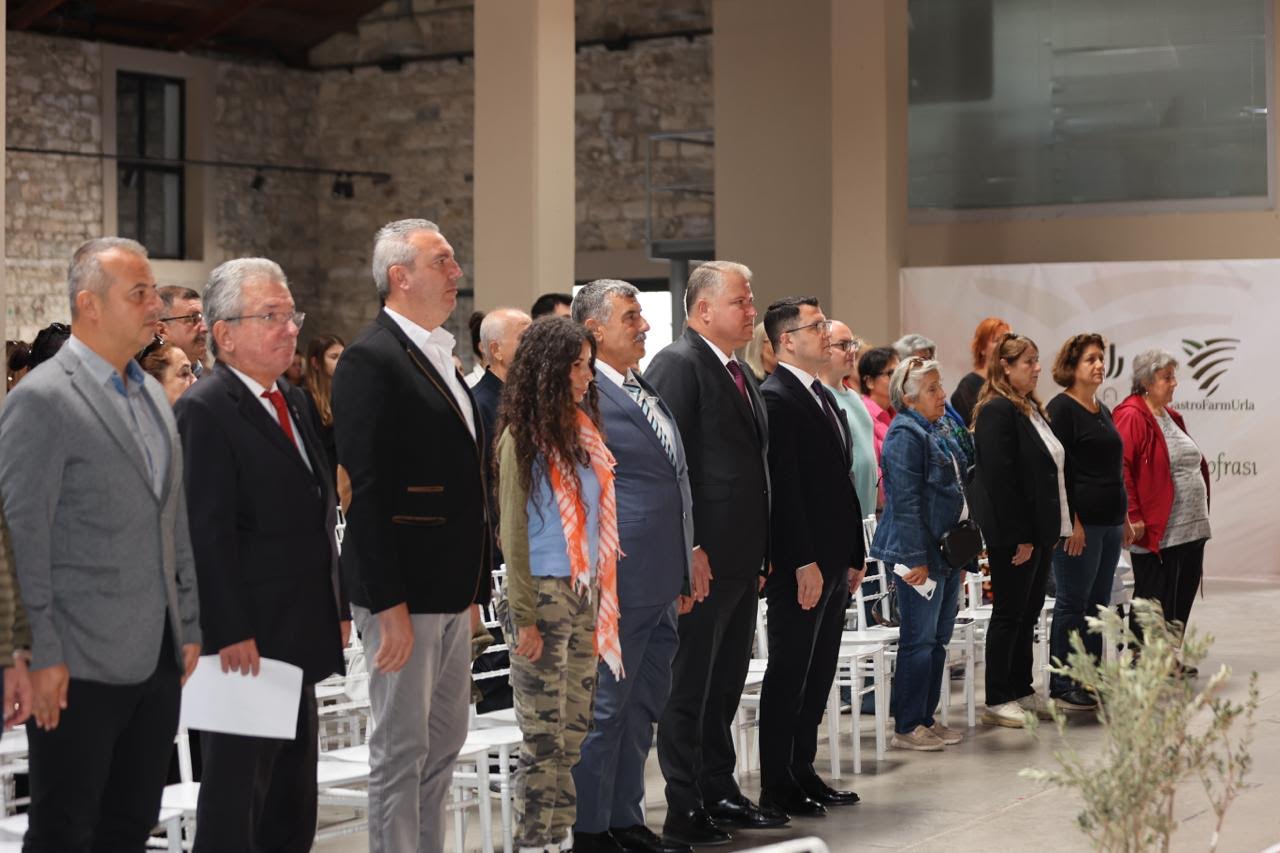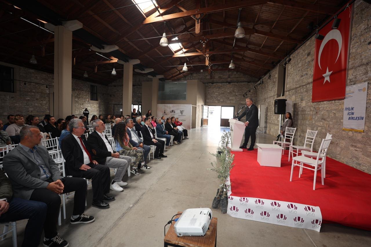 Urla Eski Tamirhane Binası’nda gerçekleşen etkinliğe, Urla Belediye Başkanı Yüksek Mimar Selçuk Balkan, Urla Cumhuriyet Başsavcısı Fatih Yaşar Yücel, siyasi partilerin ve sivil toplum kuruluşlarının temsilcileriyle kadın çiftçiler katıldı.