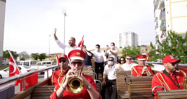 19 Mayıs bayram kutlamaları üstü açık otobüs turuyla başladı. Başkan Utku Gümrükçü, Çiğli’nin mahallelerini bandonun çaldığı birbirinden anlamlı ve coşkulu marşlar eşliğinde gezdi. Çiğli’nin cadde ve sokaklarında coşku seliyle karşılanan Başkan Gümrükçü, balkonlarından salladıkları bayraklarla bayram coşkusuna ortak olan Çiğlililerin bayramını kutladı.