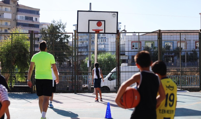 EGEMENLİK - Karabağlar Belediyesi, çocukların yaz tatilini verimli geçirmesi ve spor alışkanlığı kazanmaları amacıyla “Yaz Spor Okulları Mahallede Spor” etkinliğini başlattı. İlçenin farklı mahallelerinde yer alan parklarda düzenlenen basketbol kursları, çocuklardan yoğun ilgi görüyor.
