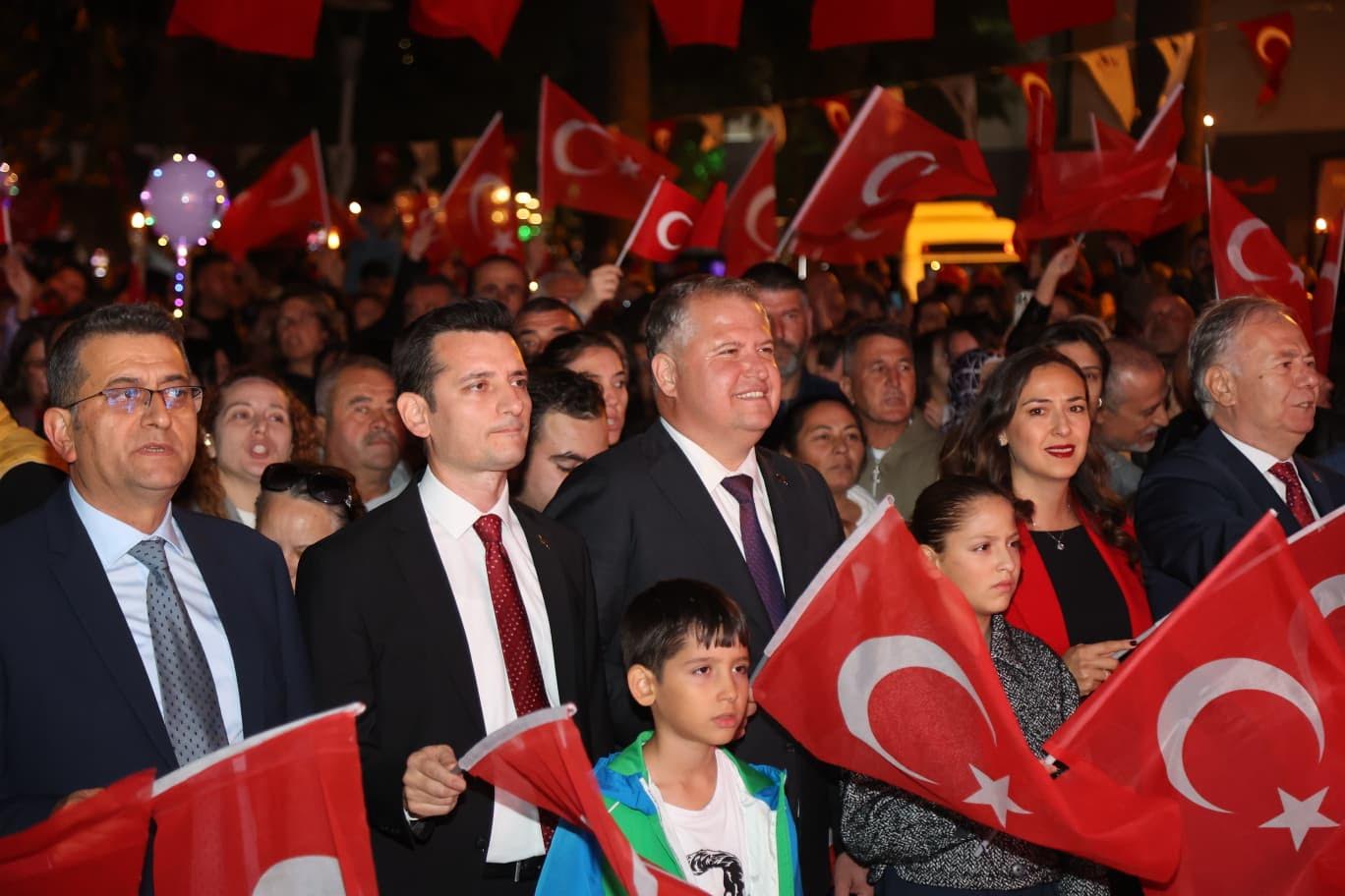 EGEMENLİK - Cumhuriyet'in ilanının 102. yılı Urla’da düzenlenen çeşitli etkinliklerle kutlandı. 28 Ekim’de çelenk sunma töreni ile başlayan etkinlikler, çocuk bandosu, resepsiyon, statta kutlama programı, fener alayı ve konser ile devam etti.