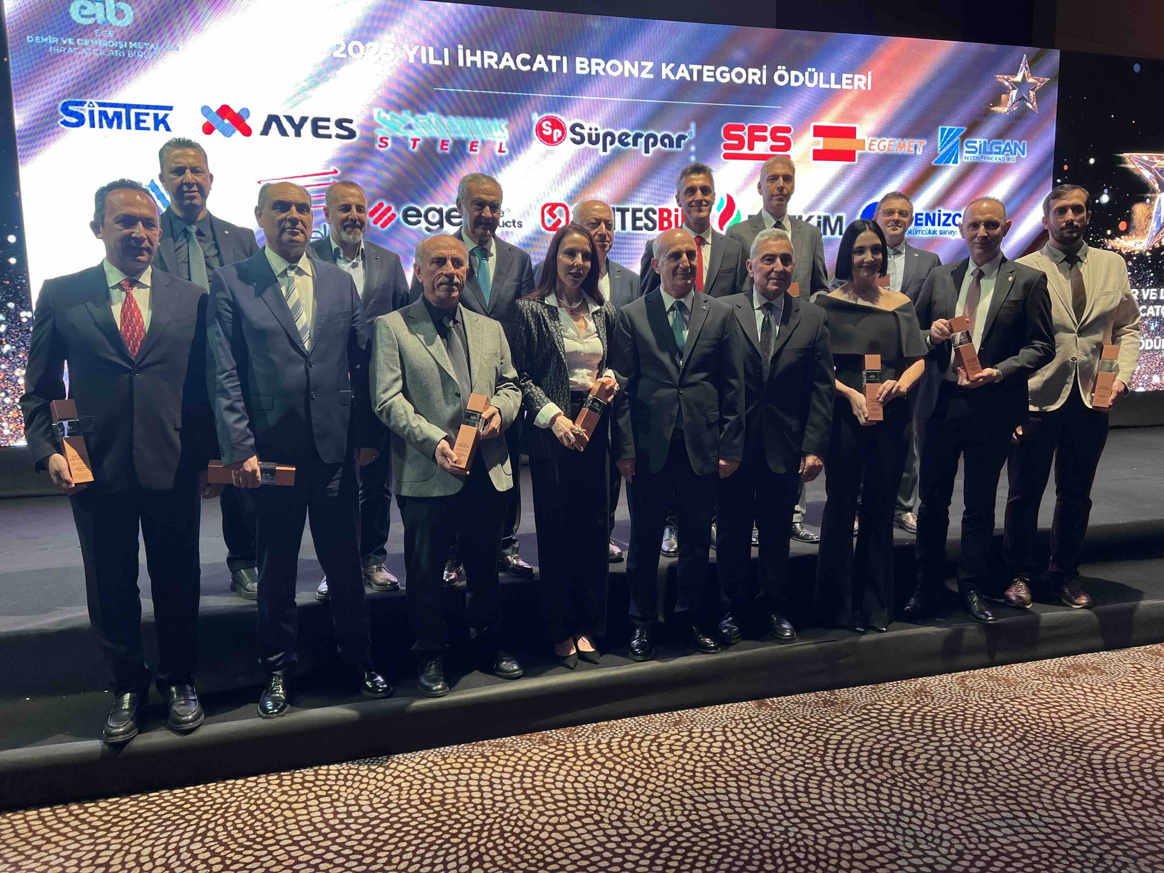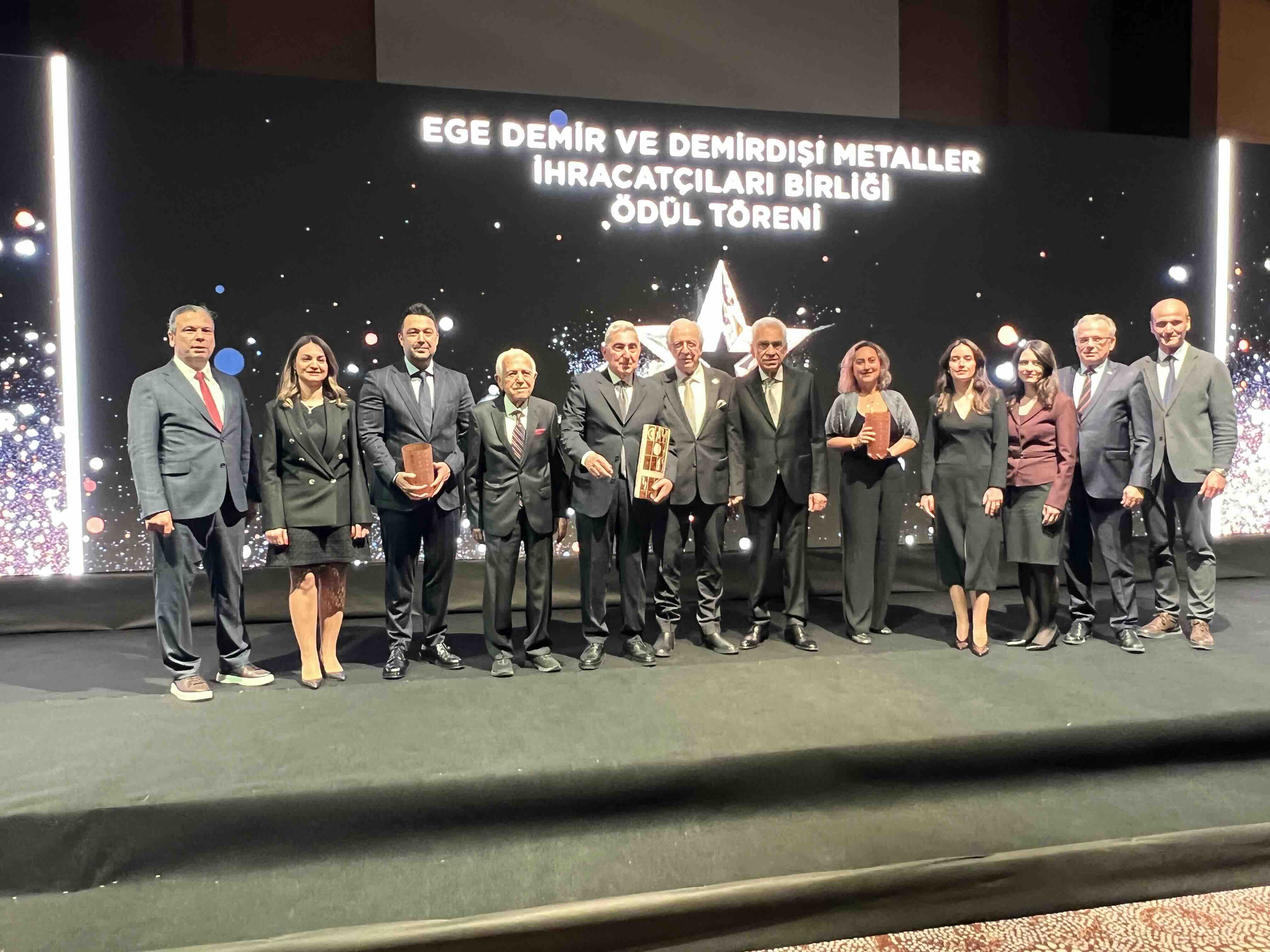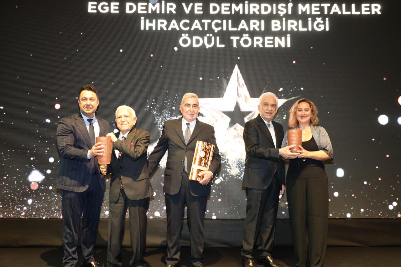Ege Bölgesi’nde ihracat şampiyonluğunu 8 yıldır sürdüren, 2025 yılında Türkiye’ye 2,6 milyar dolar döviz kazandırarak 39 yıllık tarihinin en yüksek ihracat rakamına ulaşan Ege Demir ve Demirdışı Metaller İhracatçıları Birliği, ihracat rekoruna en büyük katkıyı sağlayan ve 2025 yılında 2 milyar doların üzerinde ihracata imza atan 29 firmaya 5 kategoride 36 ödül verdi.