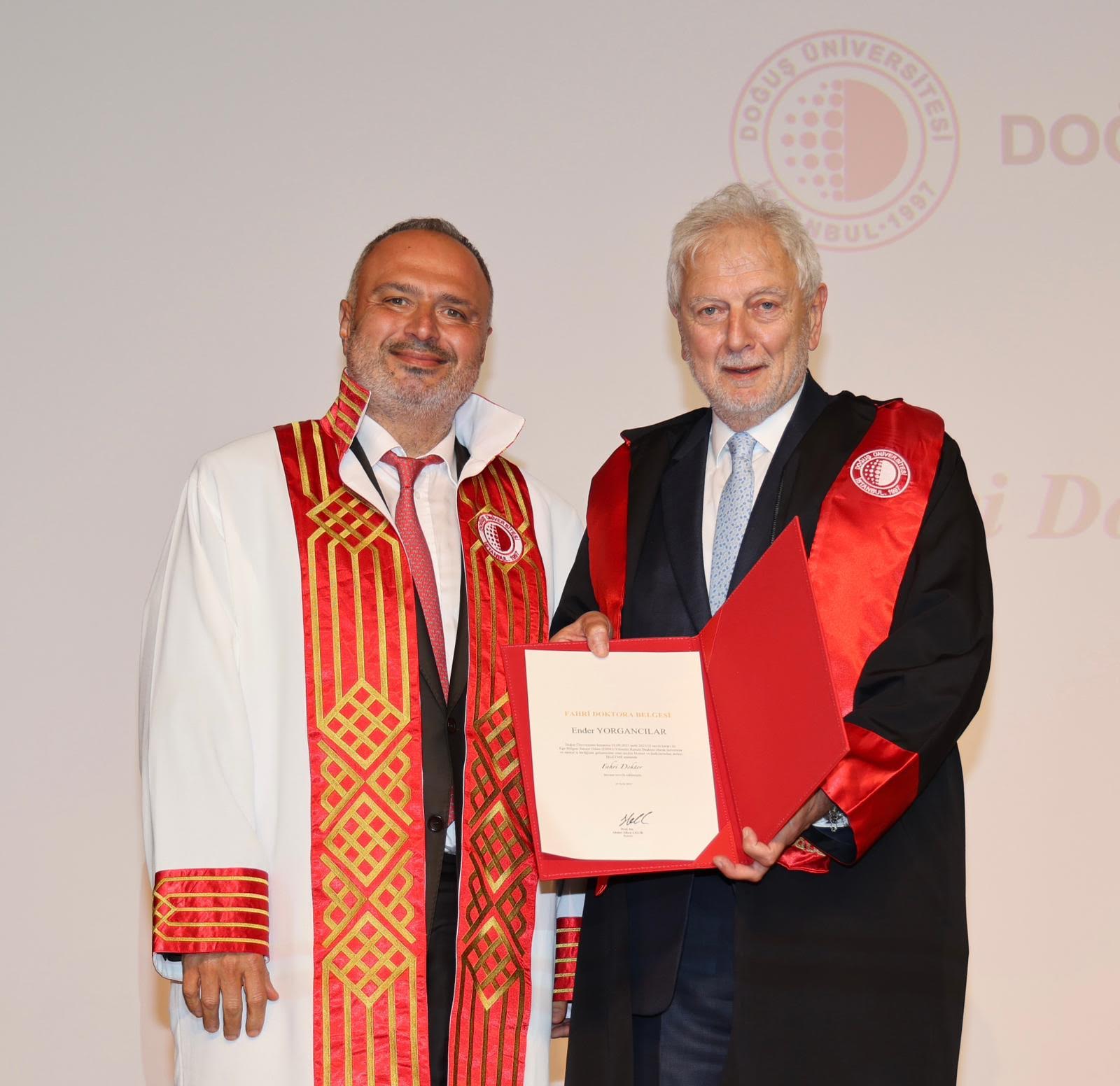 EBSO Başkan Ender Yorgancılar'a Doğuş Üniversitesi tarafından üniversite – sanayi iş birliğinin gelişimine yönelik çalışma ve katkıları nedeniyle Fahri Doktor unvanı verildi.
