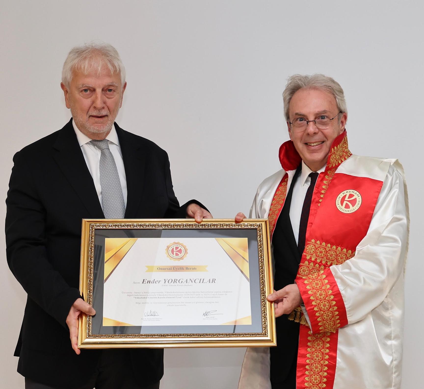 Başkan Ender Yorgancılar, kendisine tevcih edilen bu onurlu unvanı Yönetim Kurulu ve çalışma arkadaşlarının destekleriyle aldığını belirterek ekibine teşekkür ederken, “Gençlerimizin aldığı nitelikli eğitim, ülkemizin geleceğine yapılmış en değerli yatırımdır. Üniversite–sanayi iş birliğinin gelişmesi, daha güçlü bir Türkiye için vazgeçilmezdir. Bu unvanları, sorumluluklarımızı daha da artıran bir emanet olarak görüyorum. Ödülümüz de gençlerimizin başarıları olacaktır” diye konuştu.