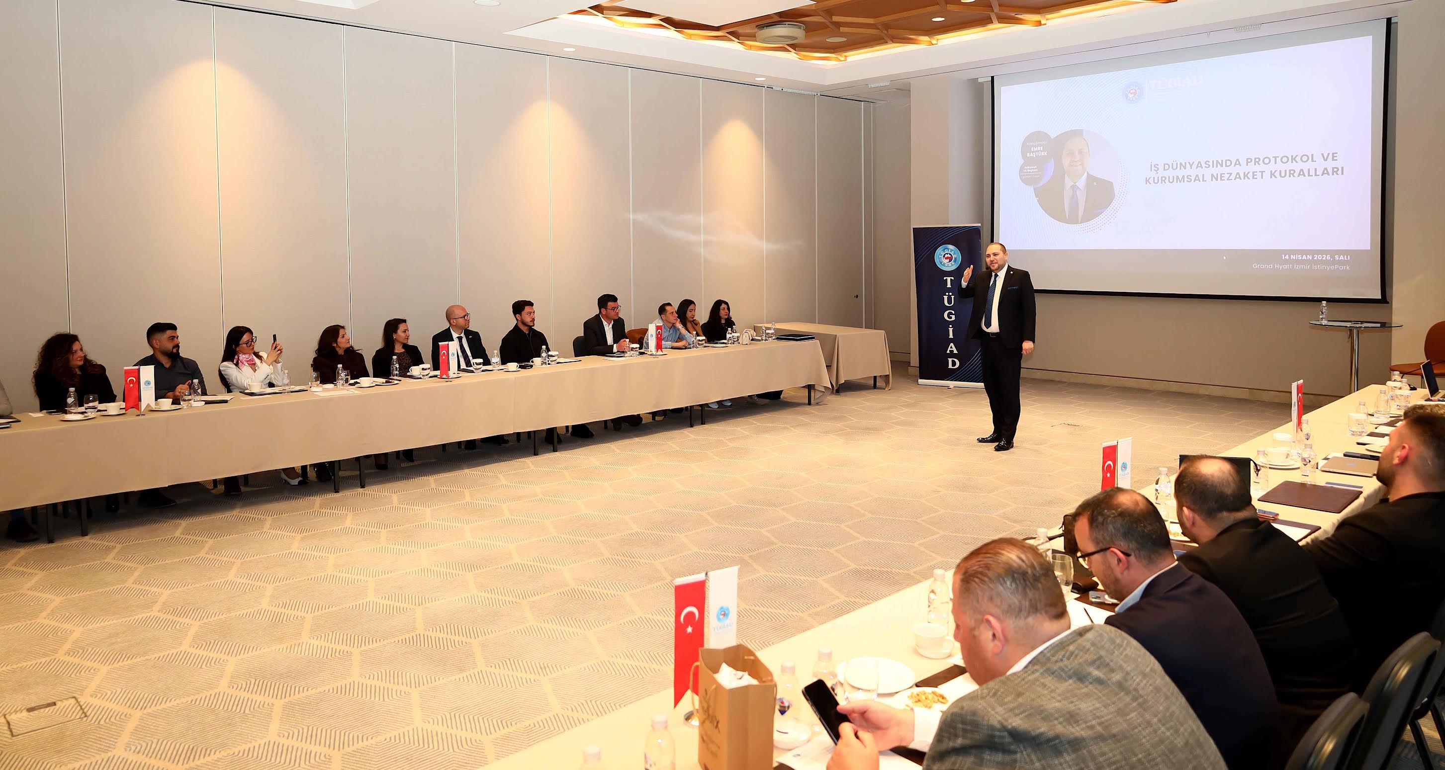 Eğitimi veren Emre Baştürk, iş dünyasında doğru protokol uygulamalarının ve güçlü iletişim becerilerinin kurumsal itibara doğrudan katkı sağladığını vurgulayarak şu ifadeleri kullandı: