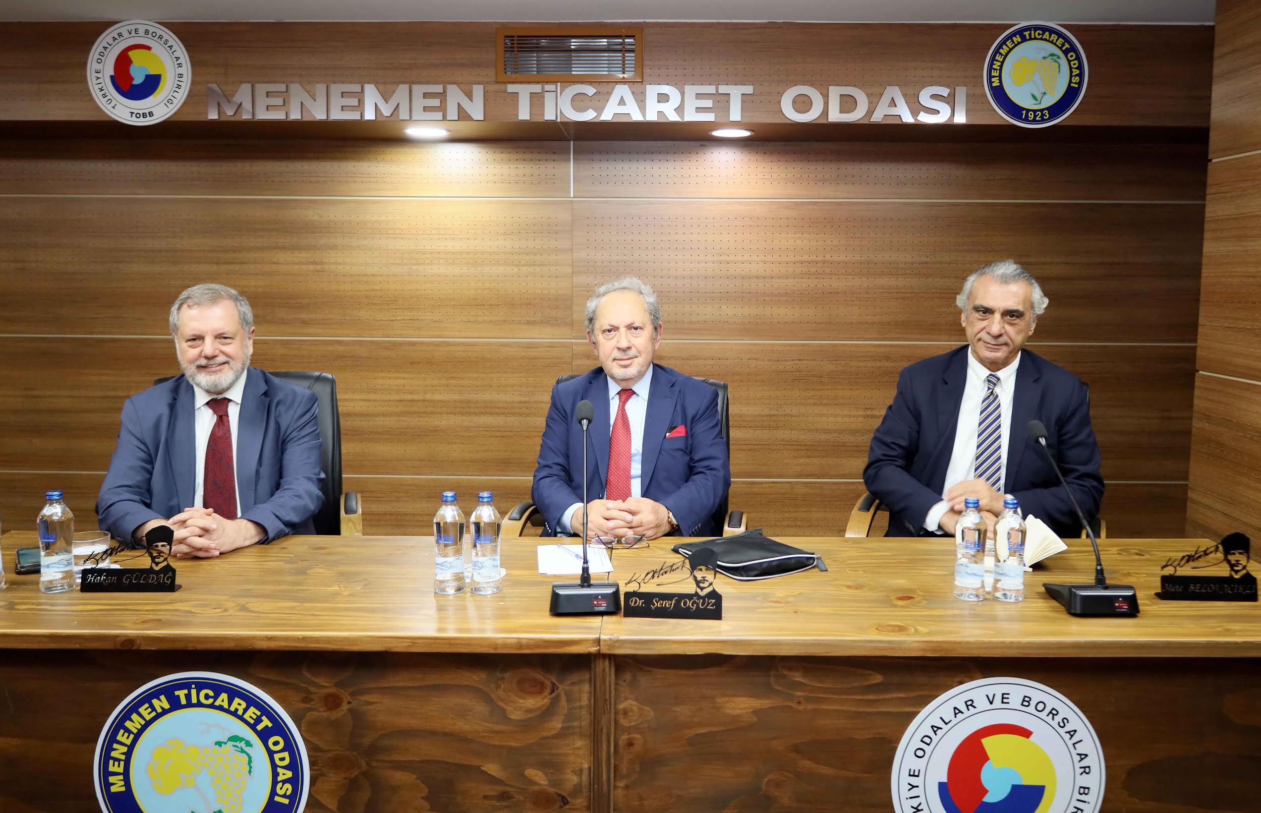 Menemen Ticaret Odası Mustafa Kemal Atatürk Salonu’nda gerçekleştirilen toplantıya; Menemen Ticaret Odası Meclis Başkanı Erdinç Cengiz, İzmir Serbest Bölge Başkanı Eyüp Sevimli, Ulukent Sanayicileri Derneği (USAD) Başkanı Ömer Telcioğlu, Menemen Plastik İhtisas Organize Sanayi Bölgesi Yönetim Kurulu Başkanı Salih Esen ile çok sayıda Menemenli sanayici ve iş insanı katılım sağladı.