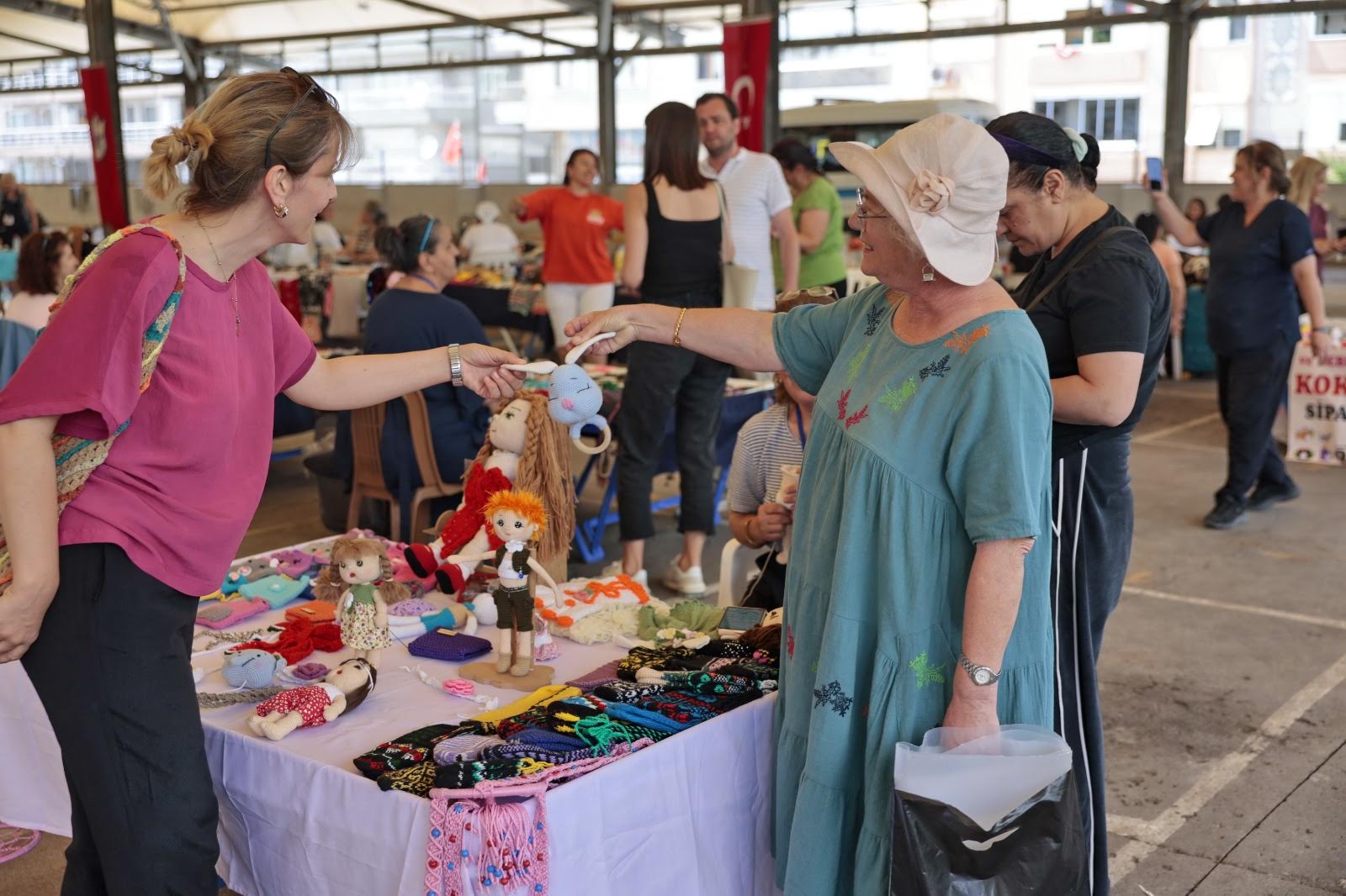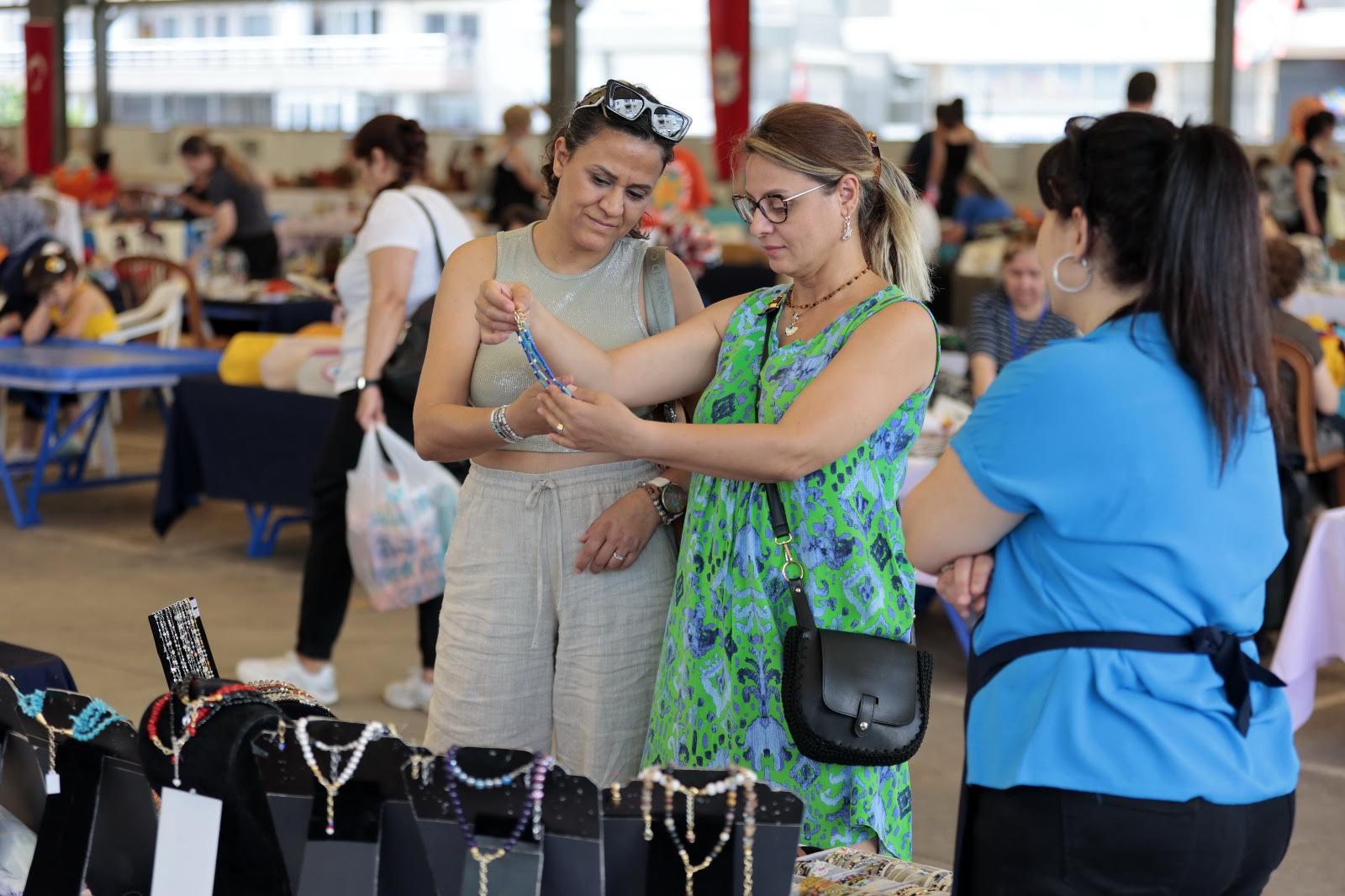Pazarda ürünlerini sergileyen kadınlardan iki çocuk annesi Kudret Çetinkaya, “Konak Belediyesi’nin semt merkezlerinde açtığı kurslara uzun yıllar katılarak takı yapmayı, örgü örmeyi, dikiş dikmeyi öğrendim. Yaptığım ürünleri satarak iki çocuğumu okuttum. Belediye Başkanımız Nilüfer Çınarlı Mutlu’nun bize sağladığı bu imkan sayesinde artık bir tezgahımız var. Tüm komşularımızı ve arkadaşlarımızı buraya davet ediyoruz” dedi.