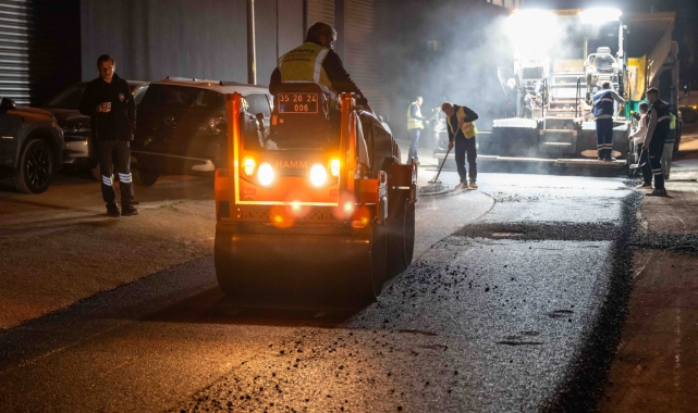 Devam eden ve kısa vadede planlanan çalışmalar hakkında Başkan Eşki’den yerinde bilgi alan Büyükşehir Belediye Başkanı Cemil Tugay, daha sonra asfalt serim makinesi (finişer) üzerine çıkarak çalışmalara bizzat katıldı. Desteği için Tugay’a teşekkür eden Başkan Eşki, “Bu akşam Cemil Başkan’ımızla birlikte sahadayız. Hem çalışan arkadaşlarımıza küçük bir moral vermek hem de yürütülen çalışmaları birlikte görmek istedik. Çok yoğun bir emek var, hepsine teşekkür ediyorum” dedi.
