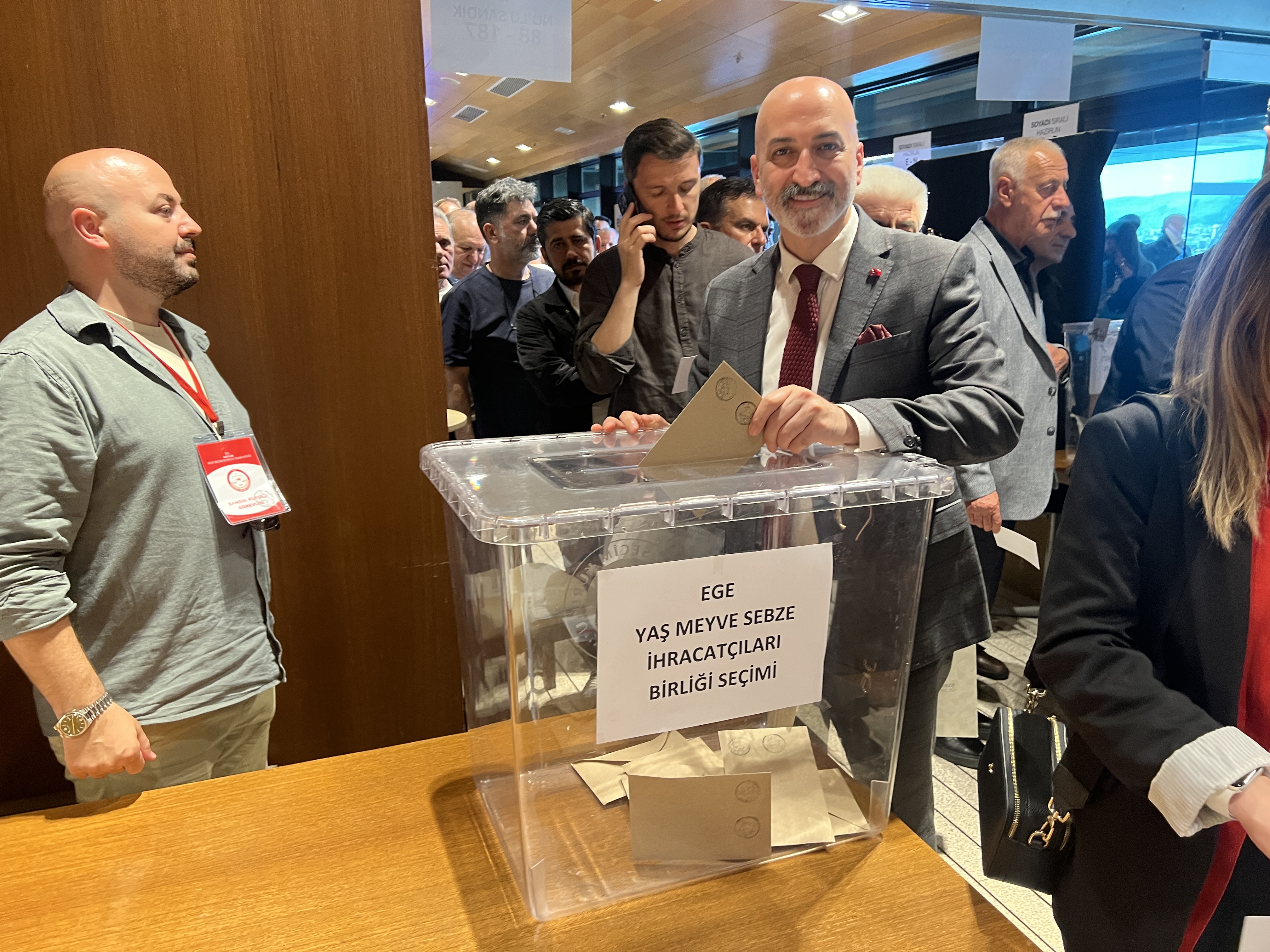 EGEMENLİK - Ege İhracatçı Birlikleri’nde genel kurul maratonu, Ege Yaş Meyve Sebze İhracatçıları Birliği (EYMSİB)’nin seçimli olağan genel kuruluyla tamamlandı. EYMSİB’in genel kuruluna yoğun katılım dikkat çekti.